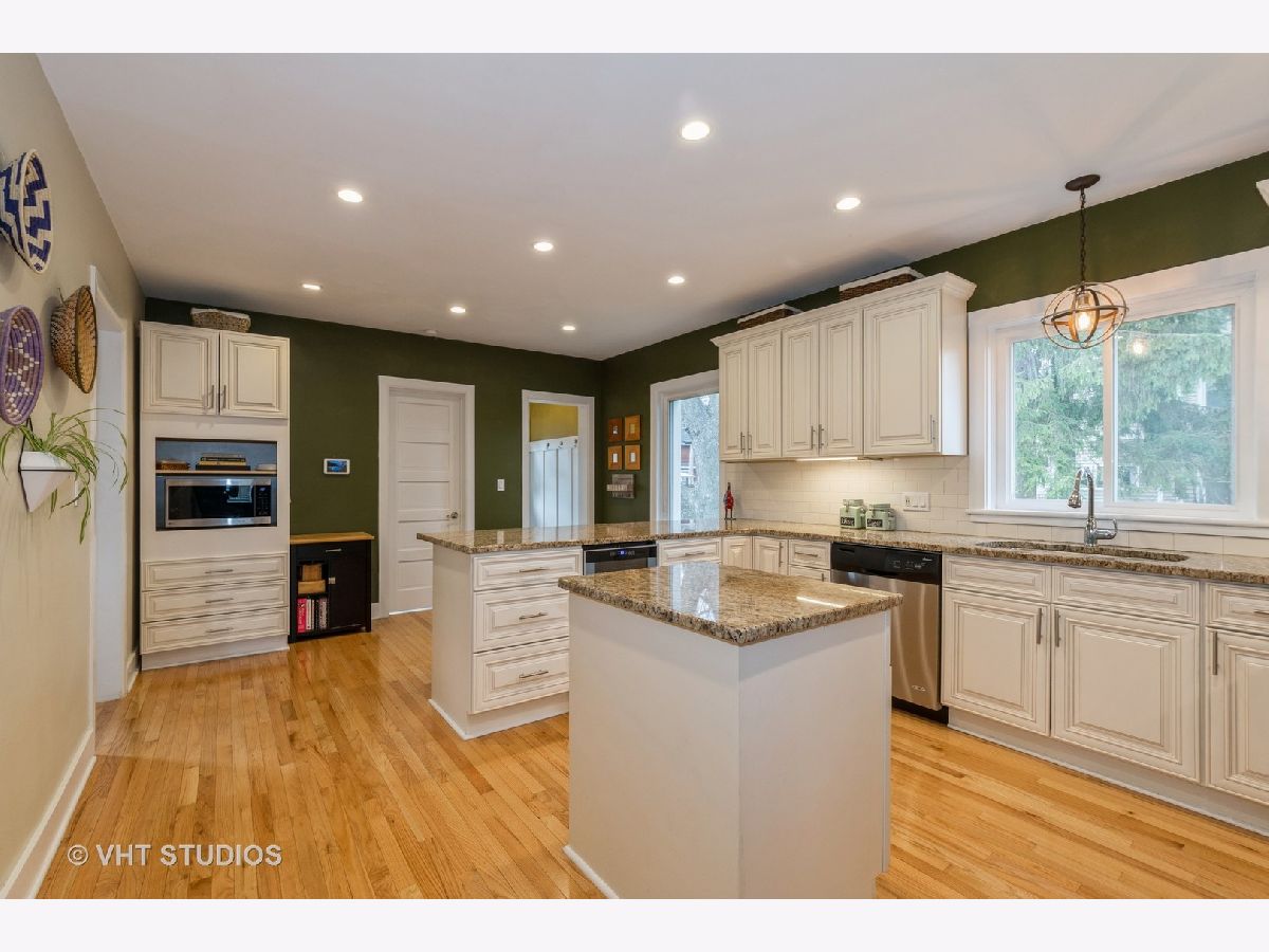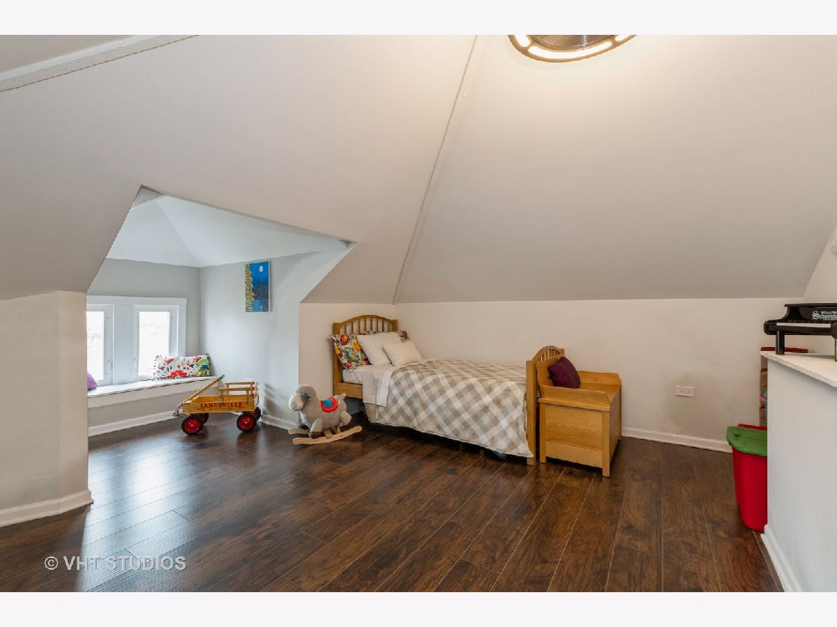 Recently renovated 3 bedroom (+ 4th bedroom on 3rd floor), 2.2 bath home in very desirable Highland Park location. Enter the house through the enclosed, heated front porch with large coat closet. Foyer opens to Kitchen, living room, dining room and private office area. Completely remodeled cook's kitchen featuring professional stainless-steel appliances, white cabinetry, granite counters, prep-Island & counter seating. Second floor features primary bedroom with half bath and 2 closets. 2 additional bedrooms share updated large hall bath. The finished third floor includes bonus room that can be used as additional bedroom, playroom or office. Lower level includes recreation room, full bath, storage and large laundry room. House includes many eco-friendly features (low-flow toilets, rain barrels, electric car plug-in, Nest thermostats, compost bin, energy efficient windows and fireplace). Over $100,000 in improvements over the last 3 years, including new electric on 2nd/3rd floor with new drywall, insulation and all new lighting fixtures, new exterior electrical, 4" white oak flooring throughout 2nd floor, waterproofing in basement and sealed foundation. 2017 renovations included new roof, new custom double pane windows, new siding, (2) 95% Efficiency Furnaces & (2) A/C units & hardwood flooring throughout. Professionally landscaped fenced corner lot that includes new brick paver patio. Over-sized 2 car garage with loft for additional storage. Great location that is within walking distance to downtown Highland Park and Highwood, train and lake. Amazing value!