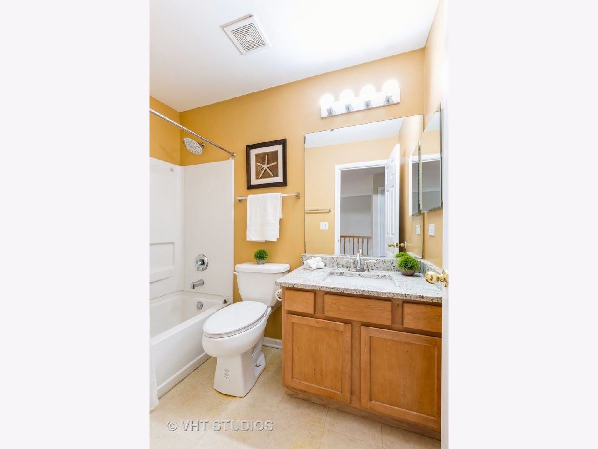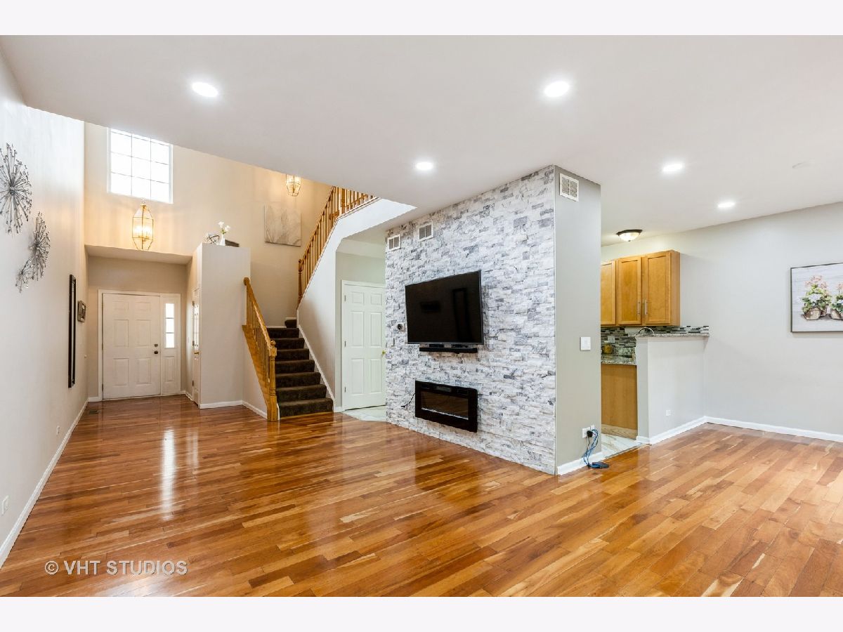 Be prepared to fall in love with the contemporary townhome located in desirable Abington Trace. You are greeted by volume ceilings, gleaming hardwood floors and a light filled interior. The stone clad accent wall has an eye catching electric fireplace. The kitchen has an abundance of 42" maple cabinets, two pantry's, granite countertops stylish backsplash and sleek stainless steel appliances. Oversized porcelain tiles cover the floors. The spacious dining room opens to the balcony which overlooks a tranquil pond. It's the perfect place to watch the seasons change. Upstairs, the loft space is large enough for an office space. Newer laminate floors have been installed throughout the second floor. The master suite has a walk in closet and a private master bath. The shower has been newly updated. The plumbing fixtures and toilet have been upgraded. There is also a large soaker tub and vanity with loads of storage. The other bedrooms are nicely sized and overlook the pond. The laundry room is conveniently located upstairs. The basement is completely finished and can be used as an office or theatre room. The seller is willing to negotiate the sale of the screen and audiovisual equipment. There is plenty of storage in the basement to store rarely used items. The seller has spared no expense updating and maintaining this beautiful home. 2016-washer/dryer 2017-granite in bathrooms and kitchen 2019-dishwasher 2021-new pantry in kitchen, new fireplace with stone wall 2022-master bath updated with new shower, oversized shower head, shower door, powder room updated, main living areas were repainted a neutral color, new recess lighting in living and dining room, new kitchen flooring, gas range and refrigerator. Fantastic location with close proximity to shopping and transportation. Metea Valley High School and Granger Middle School boundaries. This home sits on a private dead end street- no shared driveway! Move in ready from day one!