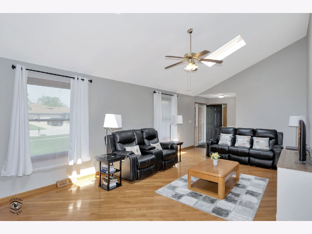 This beautiful brick and stone ranch is now available in Ridgefield Estates & Award Winning Lincoln-Way and Manhattan School District. The home is set up for related living. The main level has a beautiful great room with a cathedral ceiling, brick fireplace and skylights, main level also has dining room, eat-in kitchen with vaulted ceiling and exposed beams, 3 bedrooms, 2 bathrooms and the laundry room. The full finished basement was just renovated and has a large eat-in kitchen, a great room with a stone fireplace, a full bathroom and a bedroom with walk-in closet. The kitchen in the basement has beautiful shaker cabinets and granite countertops. The entire home has beautiful flooring with the upstairs being mostly gleaming hardwood and the basement being LVP flooring. The roof was replaced in 2011 and the home has gotten many items replaced over the past 10 years. The backyard has a new shed, charming landscaping and a private patio with gazebo that has electricity run to it and already has a ceiling fan in it. There is plenty of room for a pool in the yard. This home has been well maintained and is spotless! Make an appointment to see it right away!