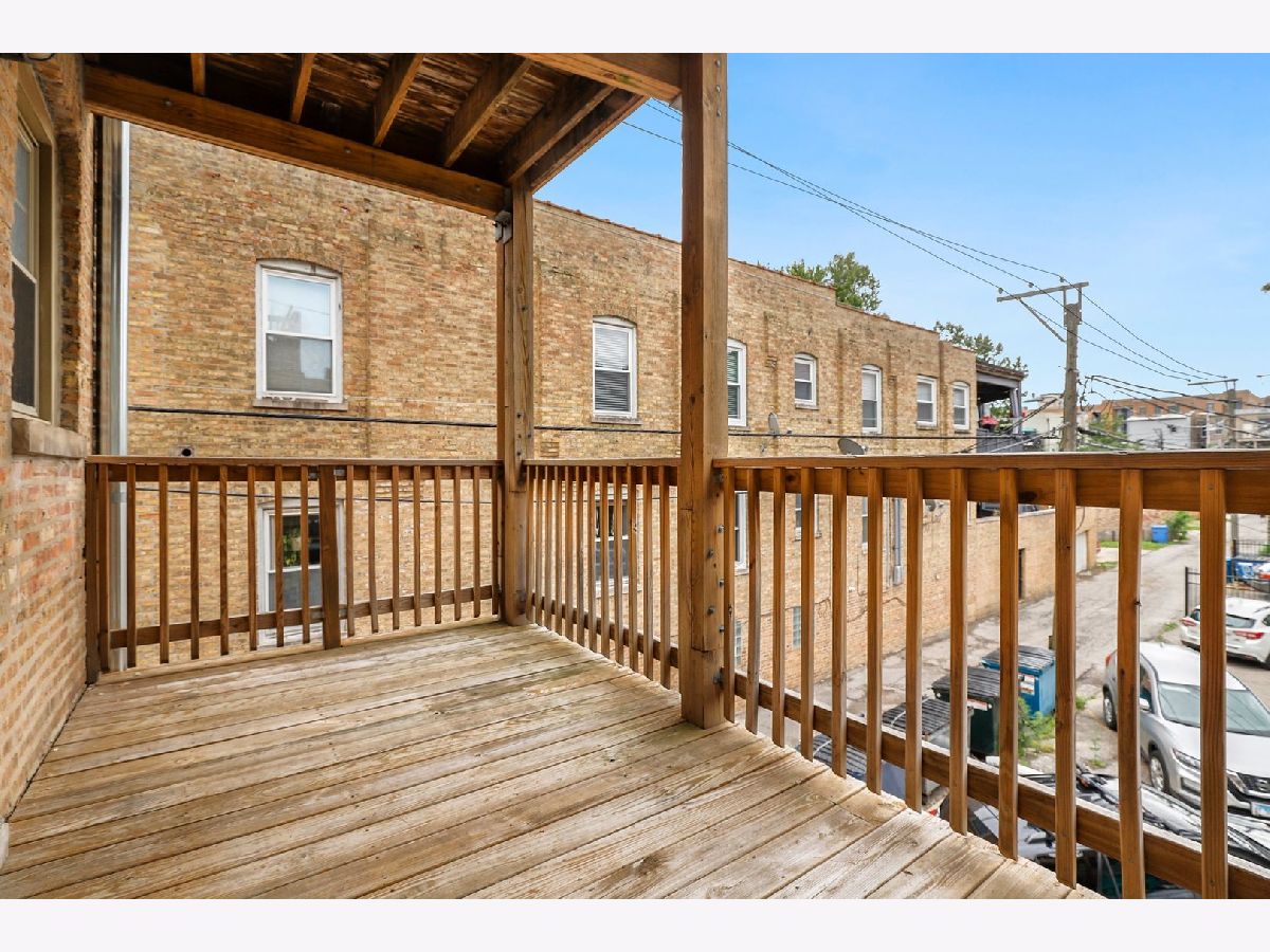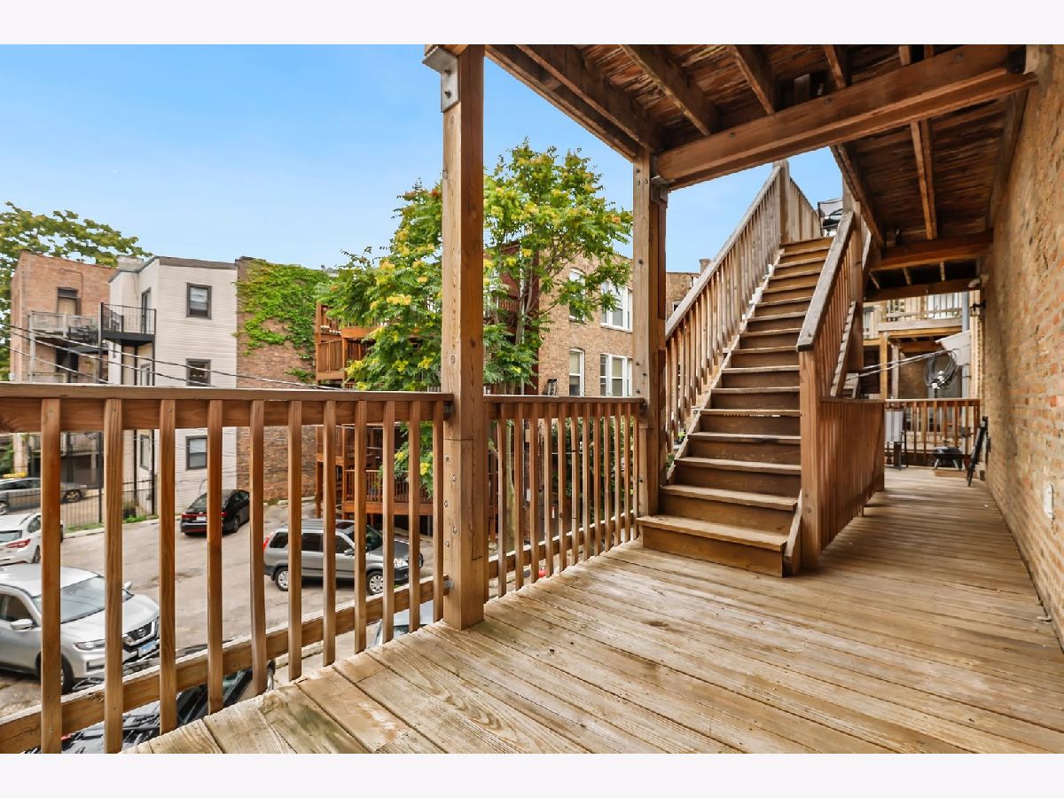 Perfectly situated in a quiet brick building on a beautiful tree-lined street just two blocks from famous Logan Square, this sun-filled 2-bedroom 1-bathroom home offers an amazing location and an incredible value! The living room boasts an exposed brick wall and an oversized picture window overlooking picturesque Albany Ave. that floods the entire space in natural light. The kitchen with stainless steel appliances leads to your large private, covered rear deck - perfect for grilling out & entertaining or relaxing at the end of the day! Both bedrooms offer ample closet space, ceiling fans, and plush carpeting. Bathroom features a large vanity with tons of storage, upgraded lighting, and a soaking tub/shower combo. Beautiful hardwood floors and custom window treatments throughout. In-unit laundry, central air, and newer tankless water heater. Additional storage in basement and easy street parking. Absolutely unbeatable location only 2 blocks from the Logan Square blue line, historic Logan Boulevard, the famous Logan Square Farmers Market, and all of the amazing dining, shopping, cafes, nightlife, and entertainment this vibrant neighborhood has come to be known for!