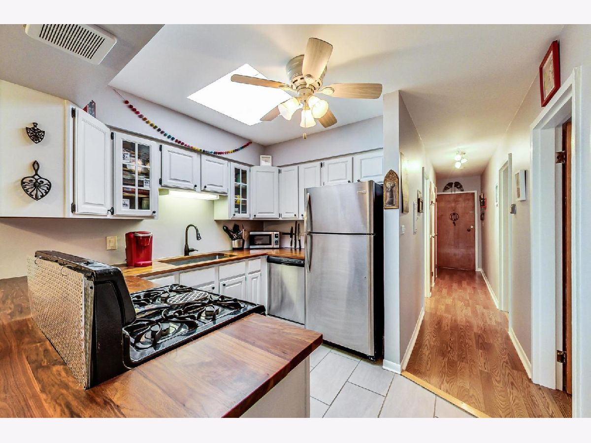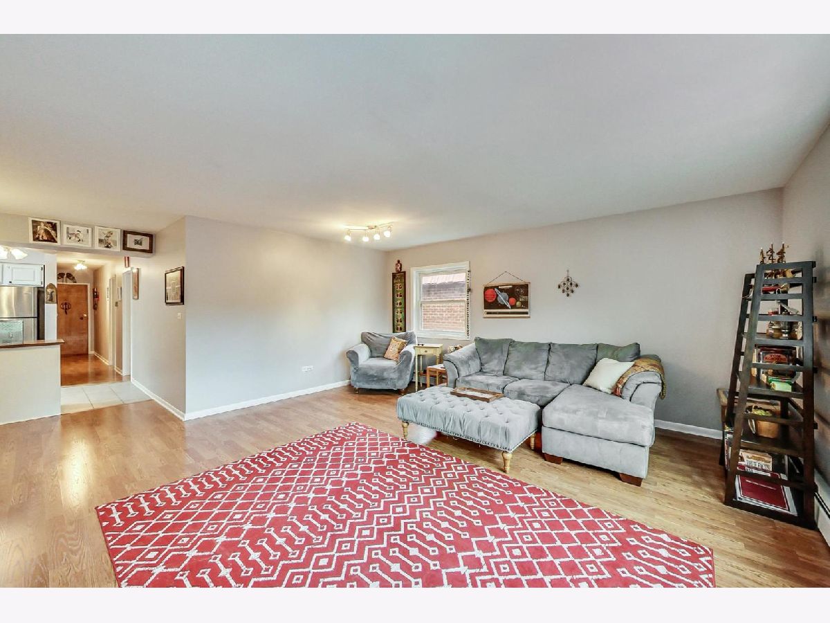 Mid-century building with modern updates in this bright and spacious 2-bedroom, condo just blocks from downtown Oak Park. Gigantic living room, dining area, with kitchen updated in 2019, painted in 2019, and both bedrooms are generously-sized. Clean and cheery communal laundry area, storage, and bike room are all on the first floor. Includes coveted assigned parking space in the building's lot. Metra and CTA Green line both .2 mile away, plus multitudes of restaurants, shopping, schools, and parks with .5 mile.
