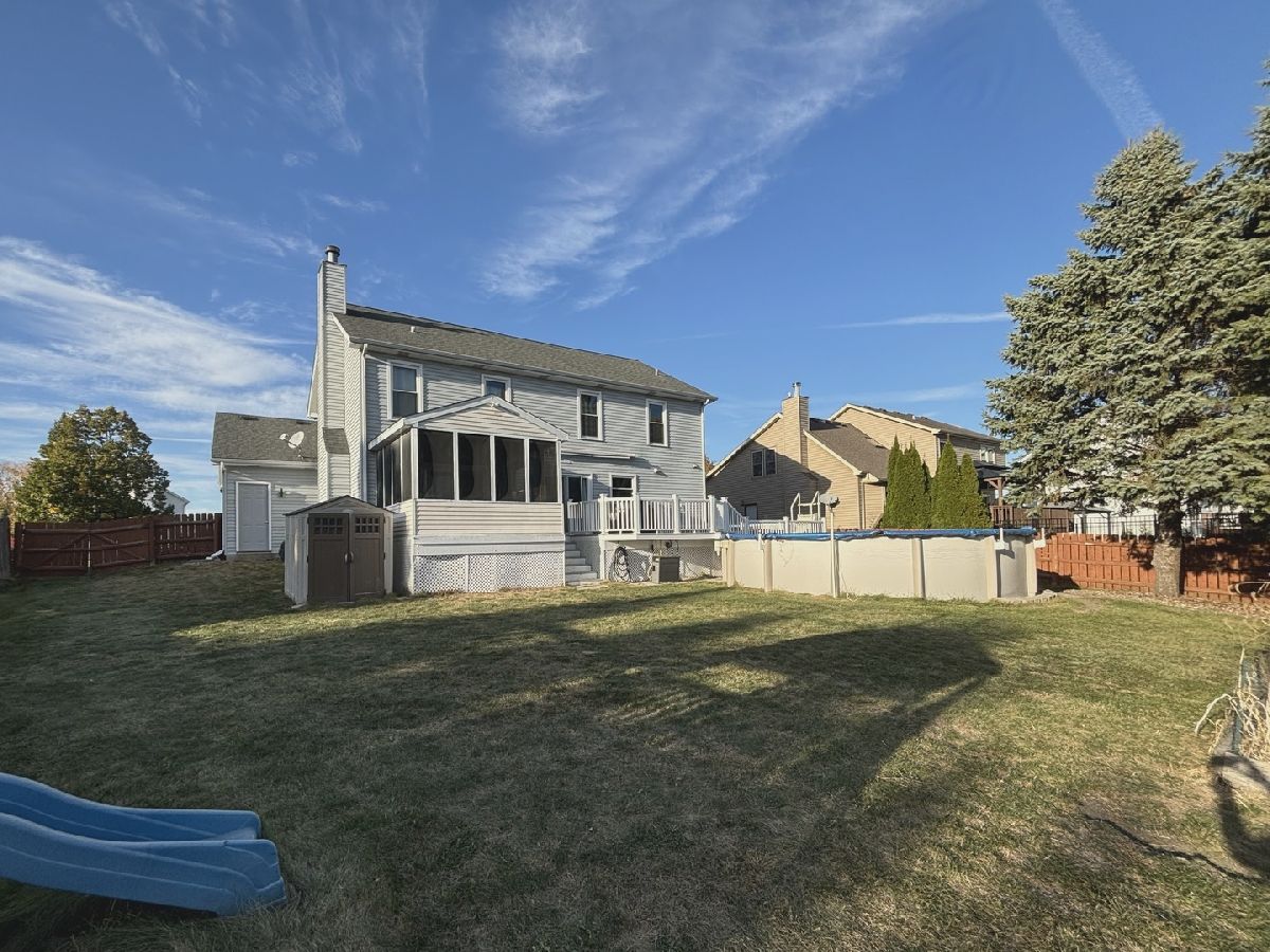Beautiful Home in the Heart of North Plainfield and in the Popular WALKERS GROVE SUBDIVISION!!! Over 3000 SF OF LIVING SPACE in this 4 Bedroom 2.5 Bath home with Full Finished BRIGHT & OPEN English Basement. Enter your home into a Stunning 2 Story Foyer with Hardwood Floors and Classic Curved Spindle Staircase!! Large Open Kitchen with New Island and Breakfast Bar Seating, Corian Counter Tops and Stainless Steel Appliances Spacious Kitchen with Corian counters!! Kitchen opens to a spacious Family Room with a Gas and Wood Burning Fireplace. Plus that opens to an awesome ** Sun/Florida 3 Seasons Room with Electric ** Elegant Dining Room and Living Room with Hardwood Floors... UPDATED LIGHTING in the home plus Permanent Multi Color RGB LED Holiday Lights... Newer HVAC and Tankless Hot Water Heater. Grand Master Suite and New Master Bathroom Large double Bowled Sink & Relax in a Whirlpool Soaking Tub, Plus a Private Shower. Large Walk in Closet with Custom Organizer... Three VERY SPACIOUS Secondary Bedrooms on 2nd Floor with A NEWLY UPDATED 2nd Bathroom. *Solid Wood Doors Throughout the Home* A Fantastic Finished Basement with lots of windows and a Large Recreation Room, Plus an additional Music Room which could be used as a WORK OUT Room or could be turned into a 5th Bedroom very easy!!! Lots of storage space in Basement also & outdoor Shed!! Completely Relax in the Outdoors with your own Heated Pool, Hot Tub, Three Season Room and Trex style Composite Maintenance Free Deck & Direct Connect Gas Line for OUTDOOR GRILLING.... Plus a Fenced in Yard that backs up to a large Green Open space of Walkers Grove Elementary School!! Incredible Location with tons of Dining and Shopping Options Available in DOWNTOWN PLAINFIELD... Great Fishing and Kayaking in the Dupage River!! EASY ACCESS TO I55 and HIGHLY ACCLAIMED PLAINFIELD HORTH HIGH SCHOOL JUST MINUTES AWAY!!