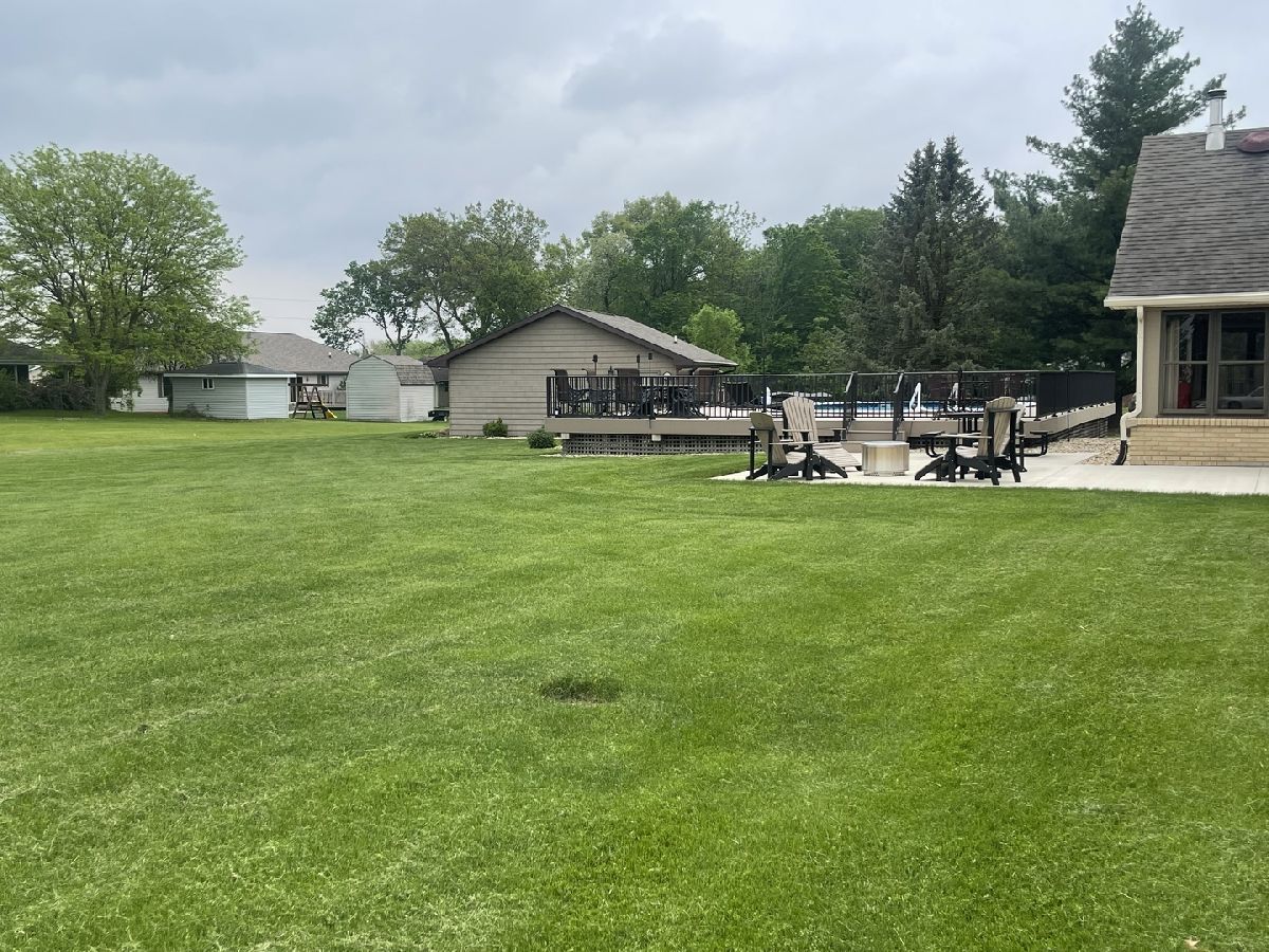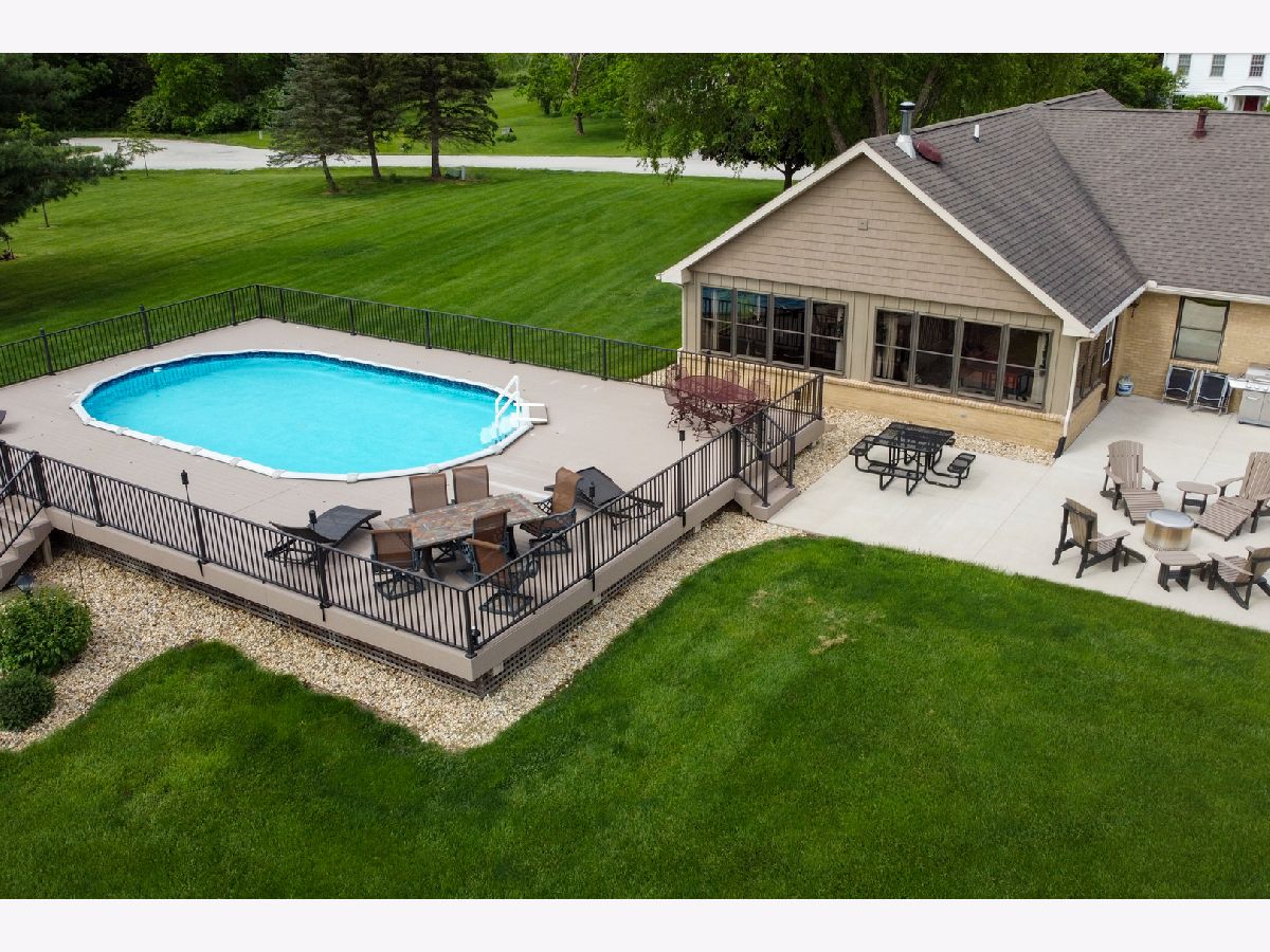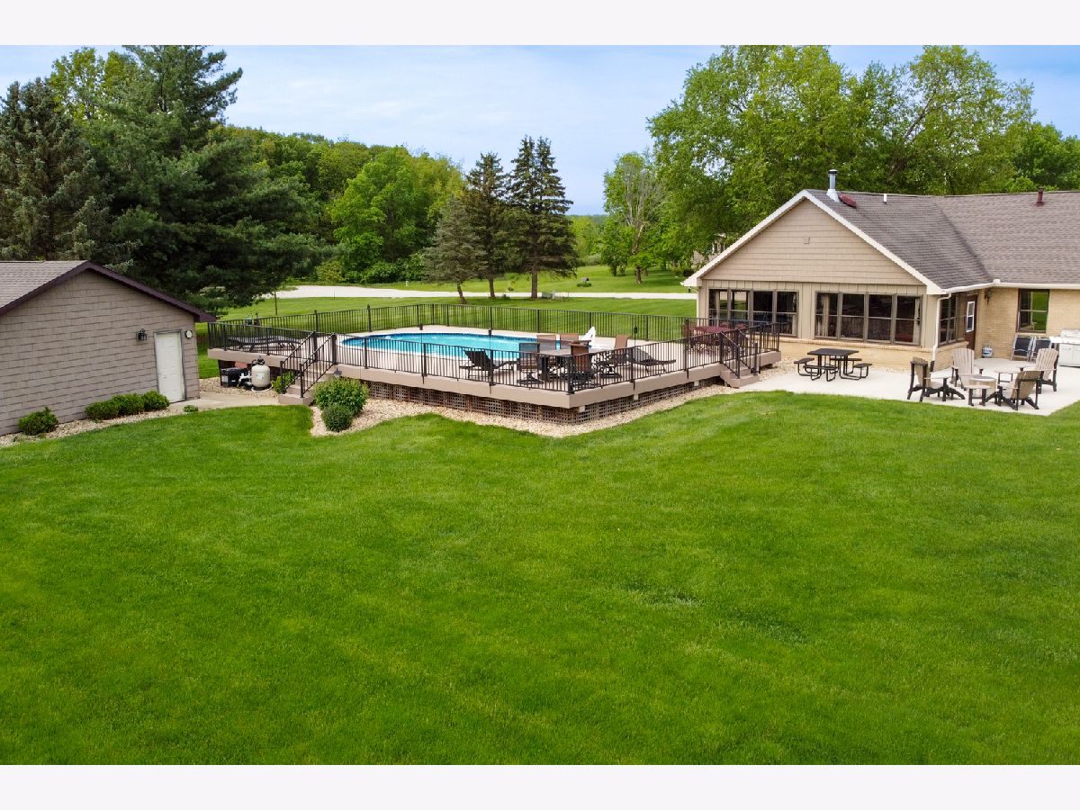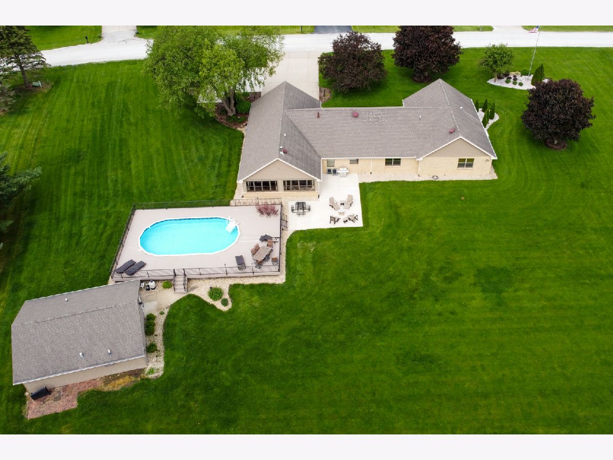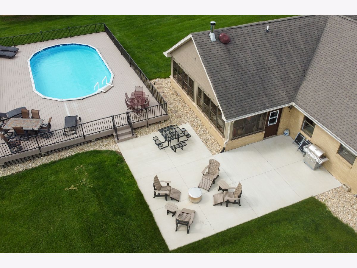 Quality and attention to detail throughout this sprawling 4/5-bedroom,3 1/2-bathroom brick ranch in excellent condition. Features include engineered hardwood floors, solid wood 6 panel doors, spacious living room, formal dining room, huge custom kitchen with quarter sawn oak cabinets, pantry cabinet has pull out shelves, spice cabinet next to refrigerator, center island, peninsula and kitchen table all have beautiful granite top as well as the bar/coffee bar. Built in double oven, cook top, microwave and stainless-steel refrigerator. Tailor made sliding doors to the bedrooms. Primary bedroom has roomy walk-in closet (previously a bedroom and could be easily put back into a bedroom) bathroom with tiled wall and shower, tub, vanity, and cabinets of quarter sawn oak. Two other good-sized bedrooms. A large office with built-in shelving could be 4th or 5th bedroom. Large main level laundry room with closet and 1/2 bath. Whole house fan. Lovely 11'x27' three season room with access to storage area, and garage. The full basement has kitchen area and full bathroom. 2 furnaces (2014 & 2016), 2 central air conditioners, 2 water heaters, 2 electrical boxes and a whole house generator. Oversized 2 car attached garage with 2 overhead doors and openers. Huge, manicured back yard, concrete patio and 18'x 33' heated above ground pool surrounded by maintenance free deck, pool patio furniture on deck stays. A second 24'x30' insulated garage has a small overhead door and storage for pool equipment, mowers, snowblower, Christmas decorations (included) and toilet. The owner has never used the heater in 2nd garage. The front of the house has a concrete entry area and concrete pad off driveway for basketball hoop and additional parking. The property line on the north side is 23 feet off the neighbor's lot.