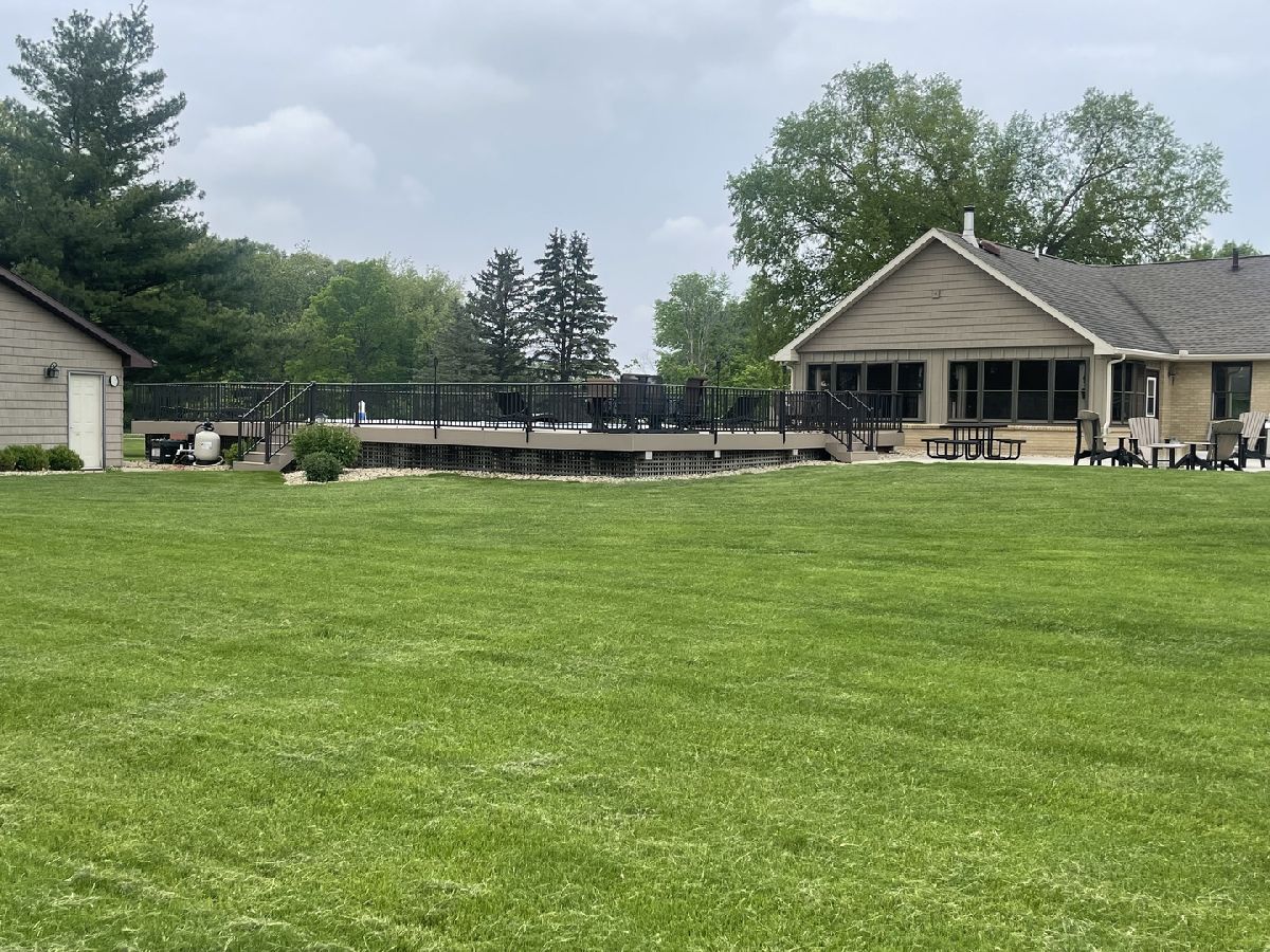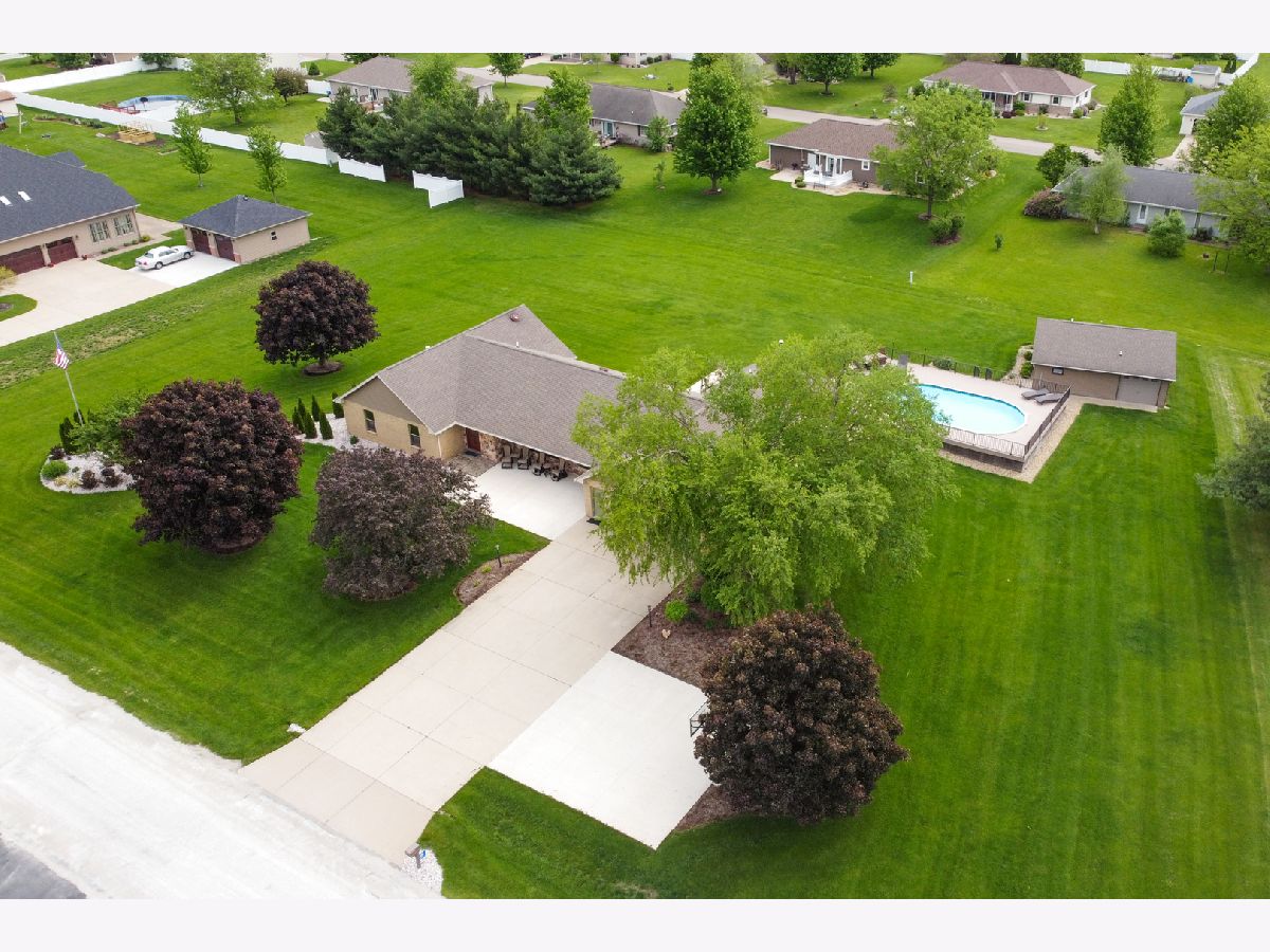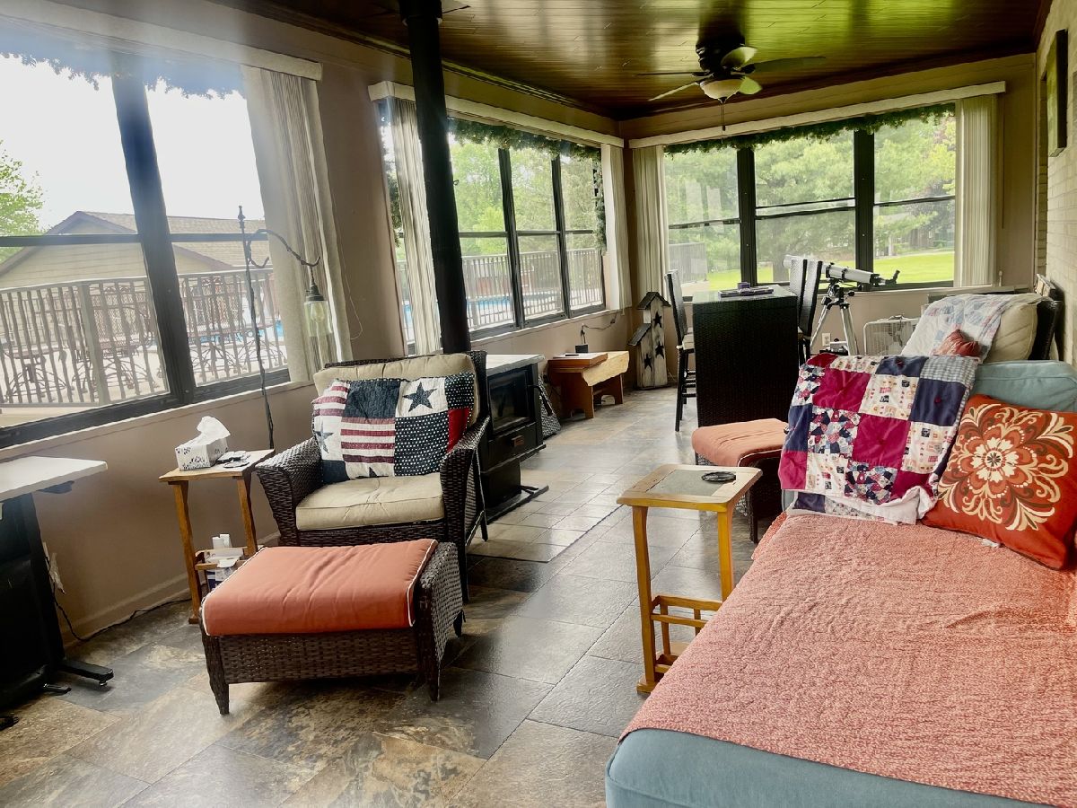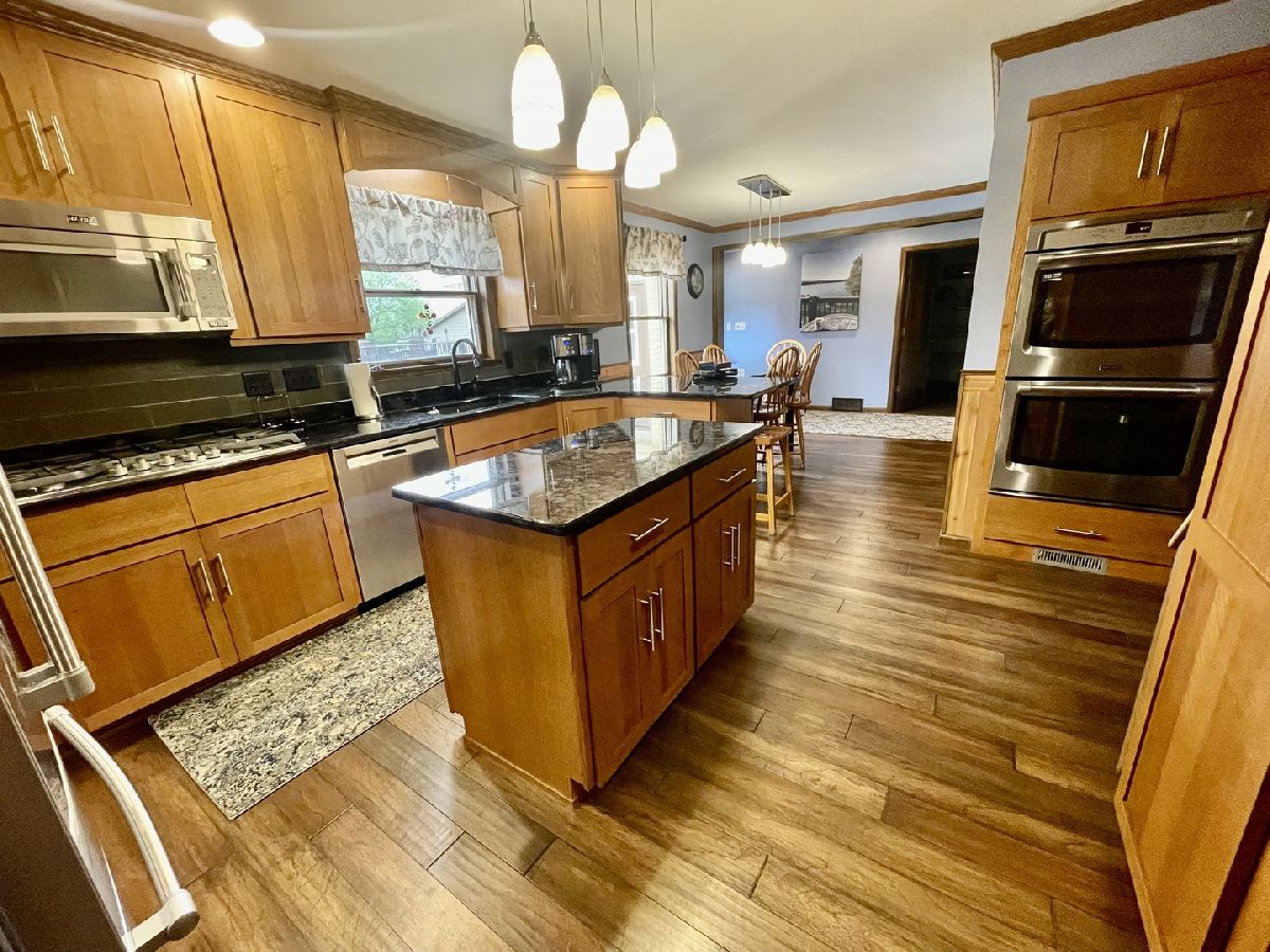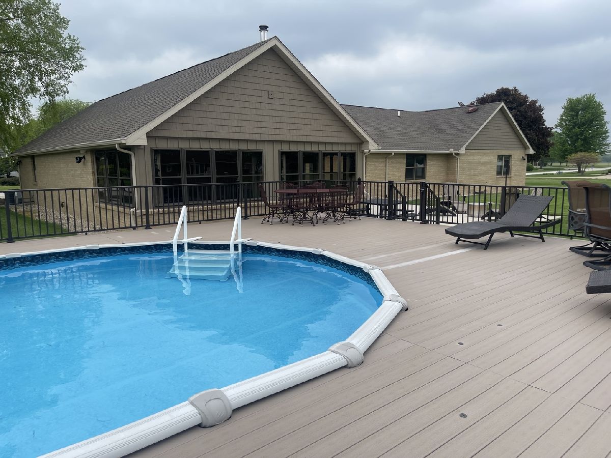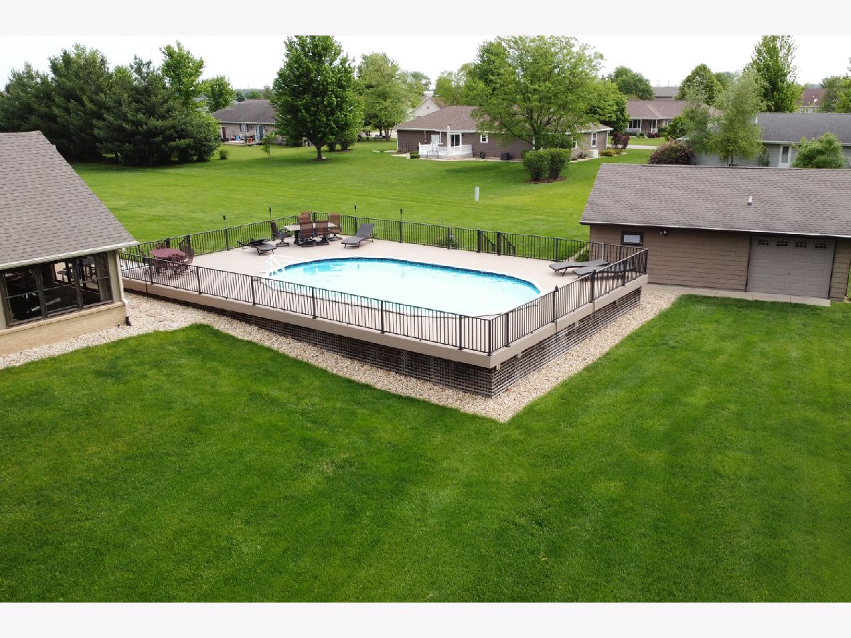 Quality and attention to detail throughout this sprawling 4/5-bedroom,3 1/2-bathroom brick ranch in excellent condition. Features include engineered hardwood floors, solid wood 6 panel doors, spacious living room, formal dining room, huge custom kitchen with quarter sawn oak cabinets, pantry cabinet has pull out shelves, spice cabinet next to refrigerator, center island, peninsula and kitchen table all have beautiful granite top as well as the bar/coffee bar. Built in double oven, cook top, microwave and stainless-steel refrigerator. Tailor made sliding doors to the bedrooms. Primary bedroom has roomy walk-in closet (previously a bedroom and could be easily put back into a bedroom) bathroom with tiled wall and shower, tub, vanity, and cabinets of quarter sawn oak. Two other good-sized bedrooms. A large office with built-in shelving could be 4th or 5th bedroom. Large main level laundry room with closet and 1/2 bath. Whole house fan. Lovely 11'x27' three season room with access to storage area, and garage. The full basement has kitchen area and full bathroom. 2 furnaces (2014 & 2016), 2 central air conditioners, 2 water heaters, 2 electrical boxes and a whole house generator. Oversized 2 car attached garage with 2 overhead doors and openers. Huge, manicured back yard, concrete patio and 18'x 33' heated above ground pool surrounded by maintenance free deck, pool patio furniture on deck stays. A second 24'x30' insulated garage has a small overhead door and storage for pool equipment, mowers, snowblower, Christmas decorations (included) and toilet. The owner has never used the heater in 2nd garage. The front of the house has a concrete entry area and concrete pad off driveway for basketball hoop and additional parking. The property line on the north side is 23 feet off the neighbor's lot.