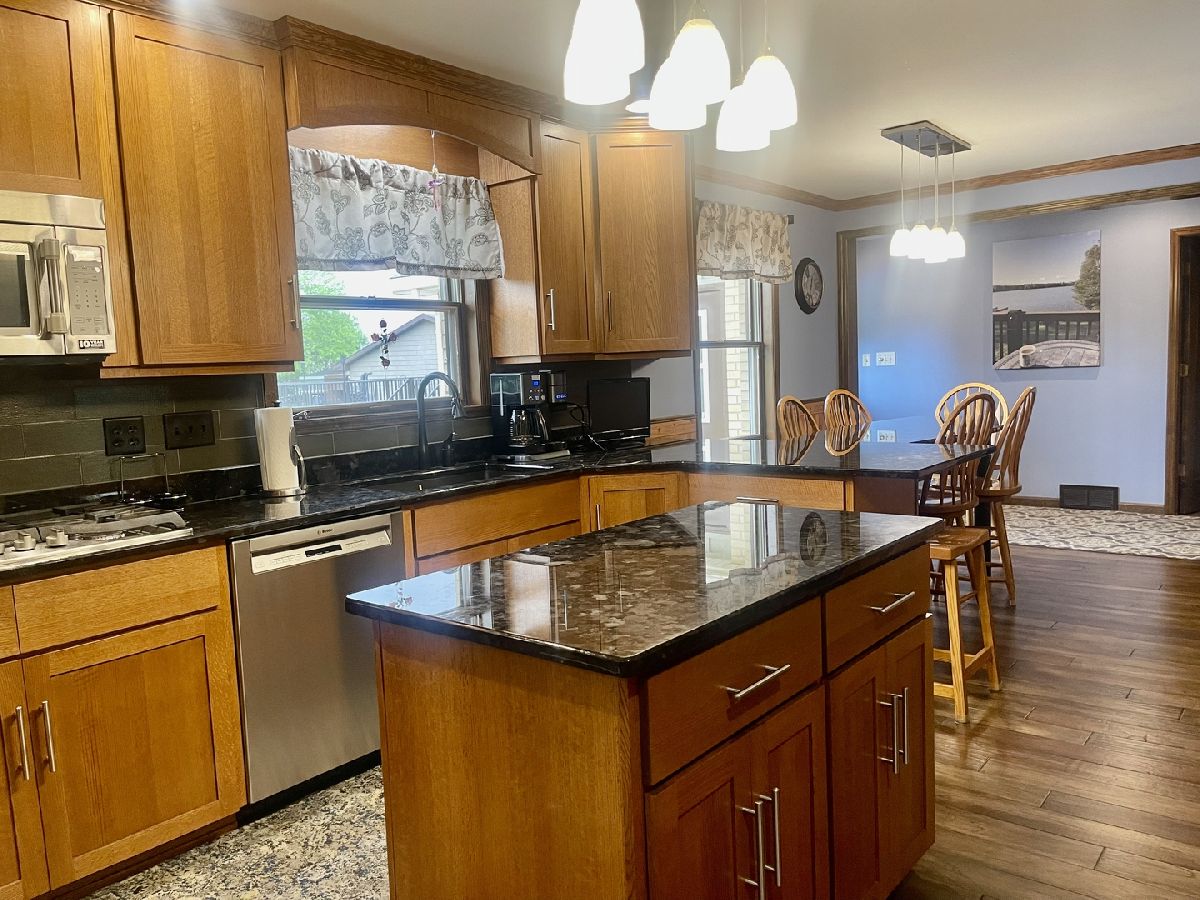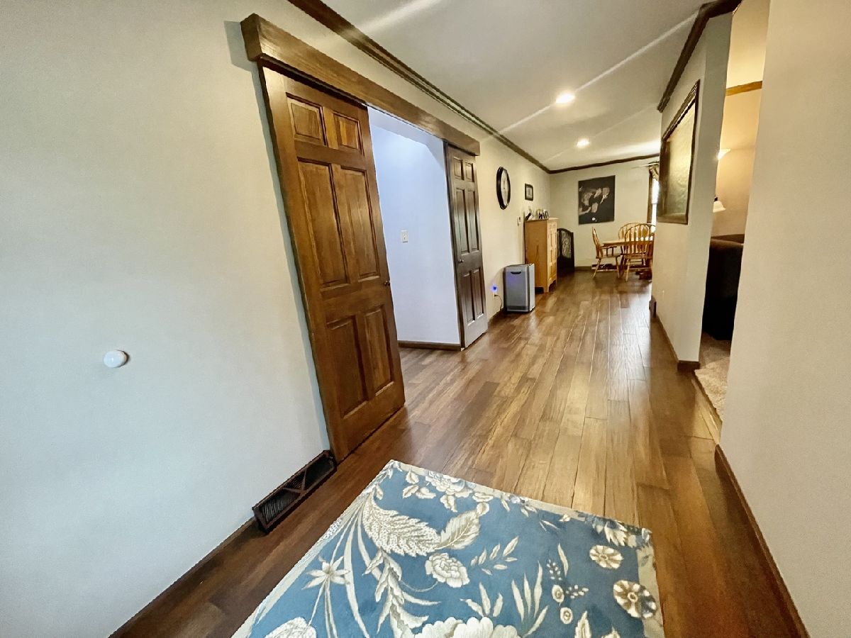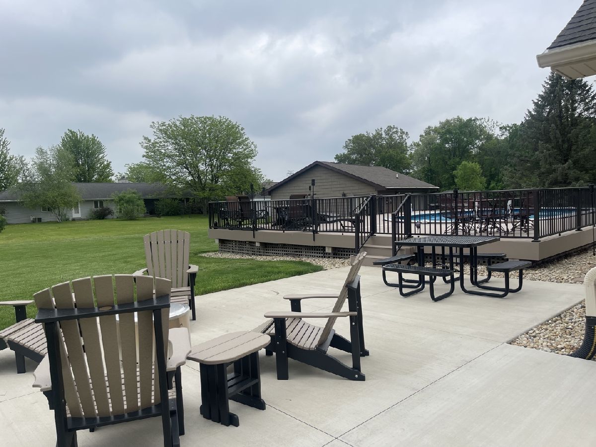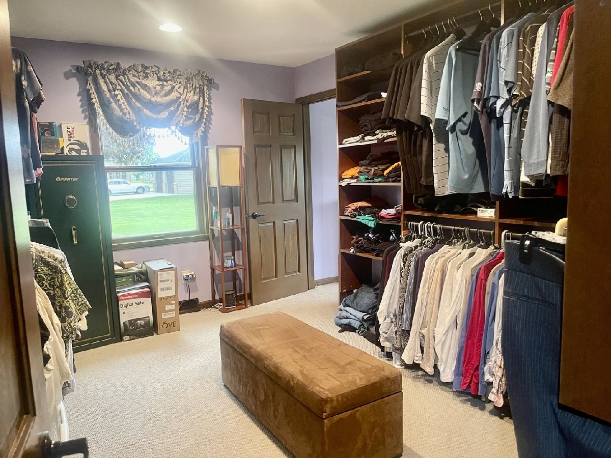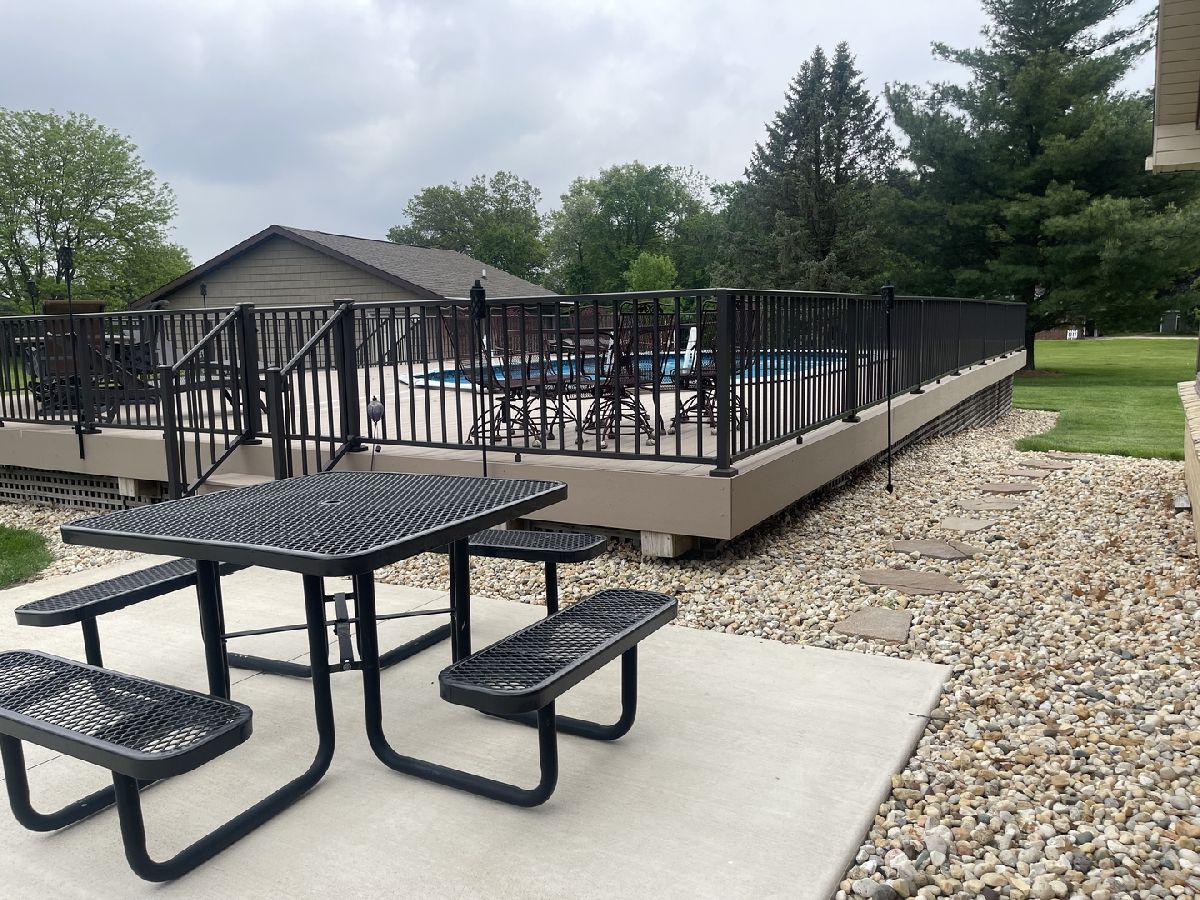 Quality and attention to detail throughout this sprawling 4/5-bedroom,3 1/2-bathroom brick ranch in excellent condition. Features include engineered hardwood floors, solid wood 6 panel doors, spacious living room, formal dining room, huge custom kitchen with quarter sawn oak cabinets, pantry cabinet has pull out shelves, spice cabinet next to refrigerator, center island, peninsula and kitchen table all have beautiful granite top as well as the bar/coffee bar. Built in double oven, cook top, microwave and stainless-steel refrigerator. Tailor made sliding doors to the bedrooms. Primary bedroom has roomy walk-in closet (previously a bedroom and could be easily put back into a bedroom) bathroom with tiled wall and shower, tub, vanity, and cabinets of quarter sawn oak. Two other good-sized bedrooms. A large office with built-in shelving could be 4th or 5th bedroom. Large main level laundry room with closet and 1/2 bath. Whole house fan. Lovely 11'x27' three season room with access to storage area, and garage. The full basement has kitchen area and full bathroom. 2 furnaces (2014 & 2016), 2 central air conditioners, 2 water heaters, 2 electrical boxes and a whole house generator. Oversized 2 car attached garage with 2 overhead doors and openers. Huge, manicured back yard, concrete patio and 18'x 33' heated above ground pool surrounded by maintenance free deck, pool patio furniture on deck stays. A second 24'x30' insulated garage has a small overhead door and storage for pool equipment, mowers, snowblower, Christmas decorations (included) and toilet. The owner has never used the heater in 2nd garage. The front of the house has a concrete entry area and concrete pad off driveway for basketball hoop and additional parking. The property line on the north side is 23 feet off the neighbor's lot.