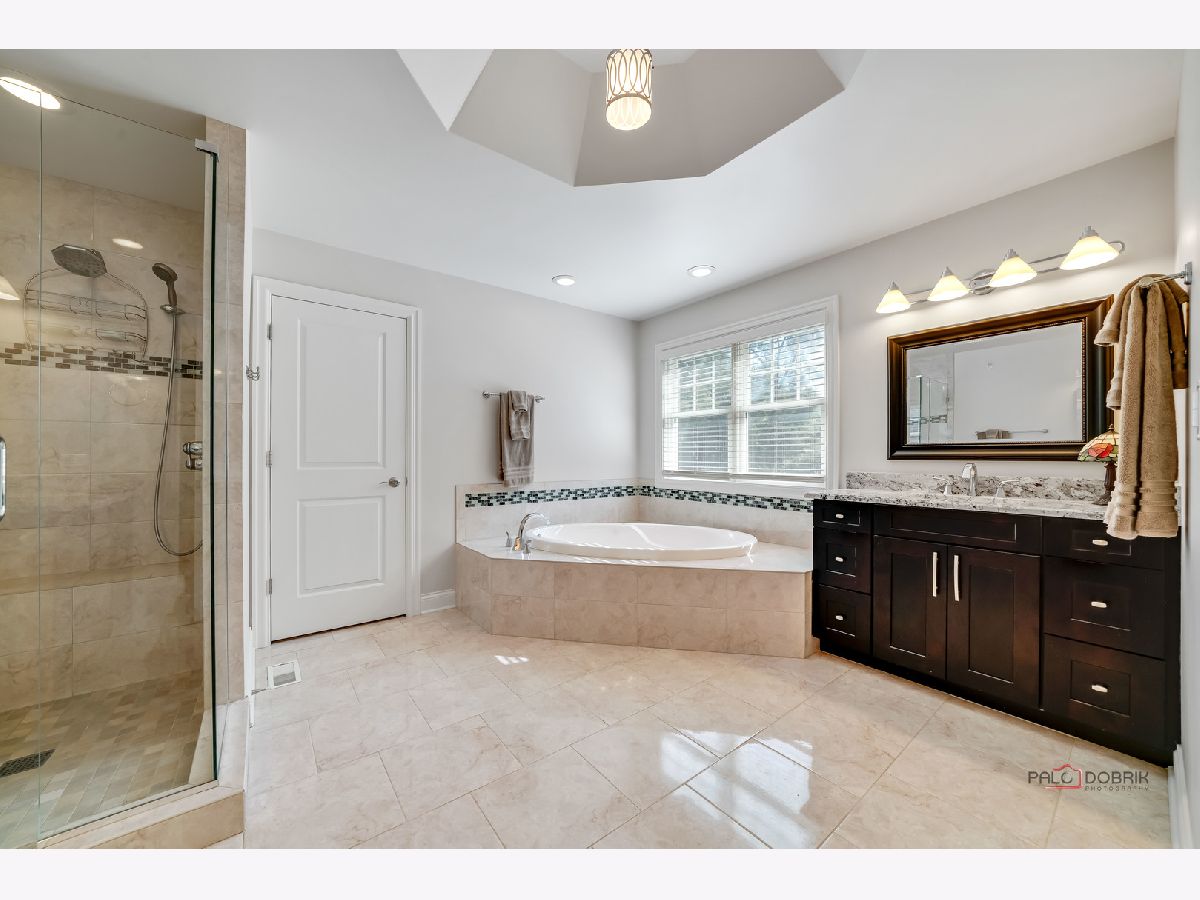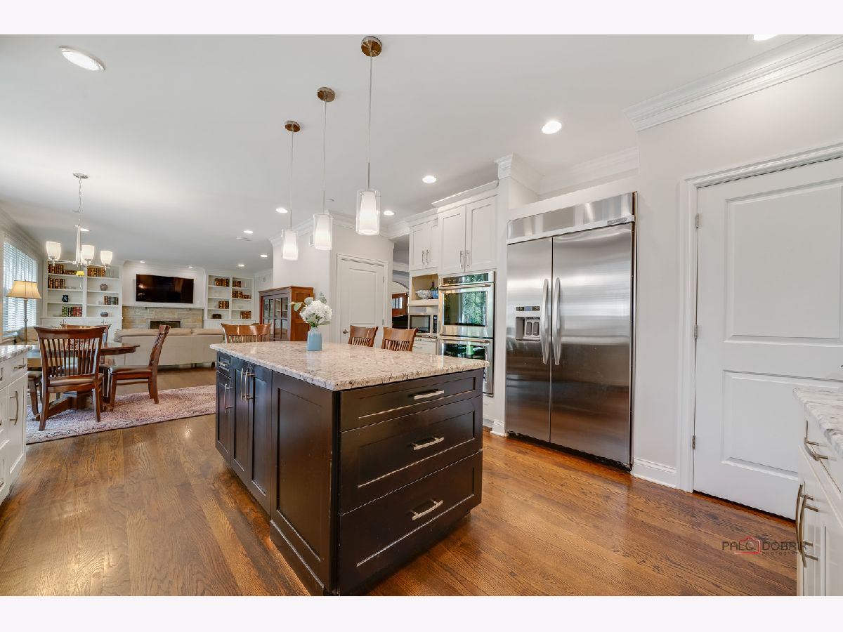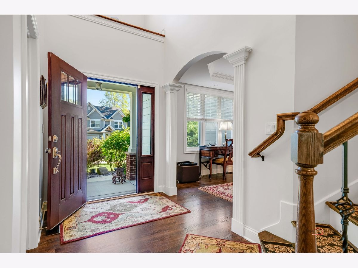 Welcome to Libertyville! This stunning custom build has it all - location, custom features, and a fabulous yard! As you pull up to this home on a quiet street tucked away yet walking distance to downtown Libertyville, you will first notice the fantastic landscaping and curb appeal! The front porch is a great spot for morning coffee or a relaxing evening beverage. Step inside and you will be amazed by the open floor plan and the sight lines in this home. There is a beautiful and bright library/office off the foyer, and a dining room off the foyer as well. Follow the hardwood floors to the fabulous great room with fireplace and custom built-ins, and take note of the stunning crown molding throughout. The great room opens to the breakfast area and the gourmet kitchen featuring luxury stainless appliances, and fantastic island with seating, and a deep window ledge for fresh herbs, plants, and natural light. A spacious powder room completes the first level. Upstairs you will find four bedrooms with high ceilings, walk in closets, and a generous and convenient second floor laundry room. The primary suite has beautiful southern exposure windows overlooking the backyard, a massive 4 piece en-suite bath with tray ceiling detail, and a walk in closet. One secondary bedroom features an en-suite with a nice walk in shower, a walk in closet and vaulted ceiling. The other two secondary bedrooms feature a jack and jill bath with separate vanity areas and sizeable closets as well. The unfinished deep-pour basement has high ceiling height, is fully insulated and is plumbed for another bath - use your imagination and create your finishing touches! The backyard has a fantastic paver patio with a few seating areas, and lots of greenspace all fully fenced and pet friendly! An oversized two car garage boasts plenty of room for storage as well. Located in highly rated Libertyville District 70 and District 128, this home is convenient to the train, to all the downtown Libertyville shops and restaurants, and to Lake Minear, the location and quality of this home simply cannot be beat!