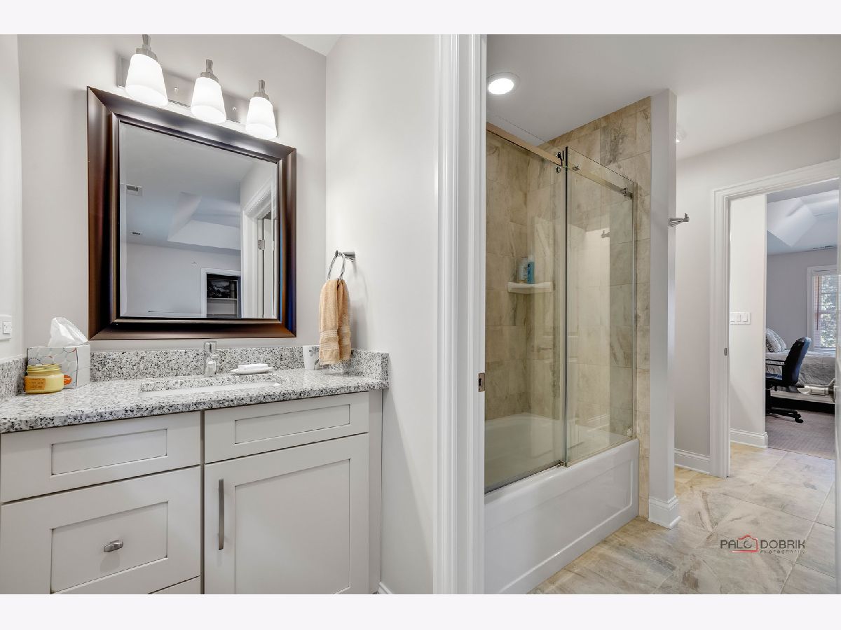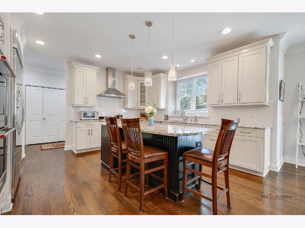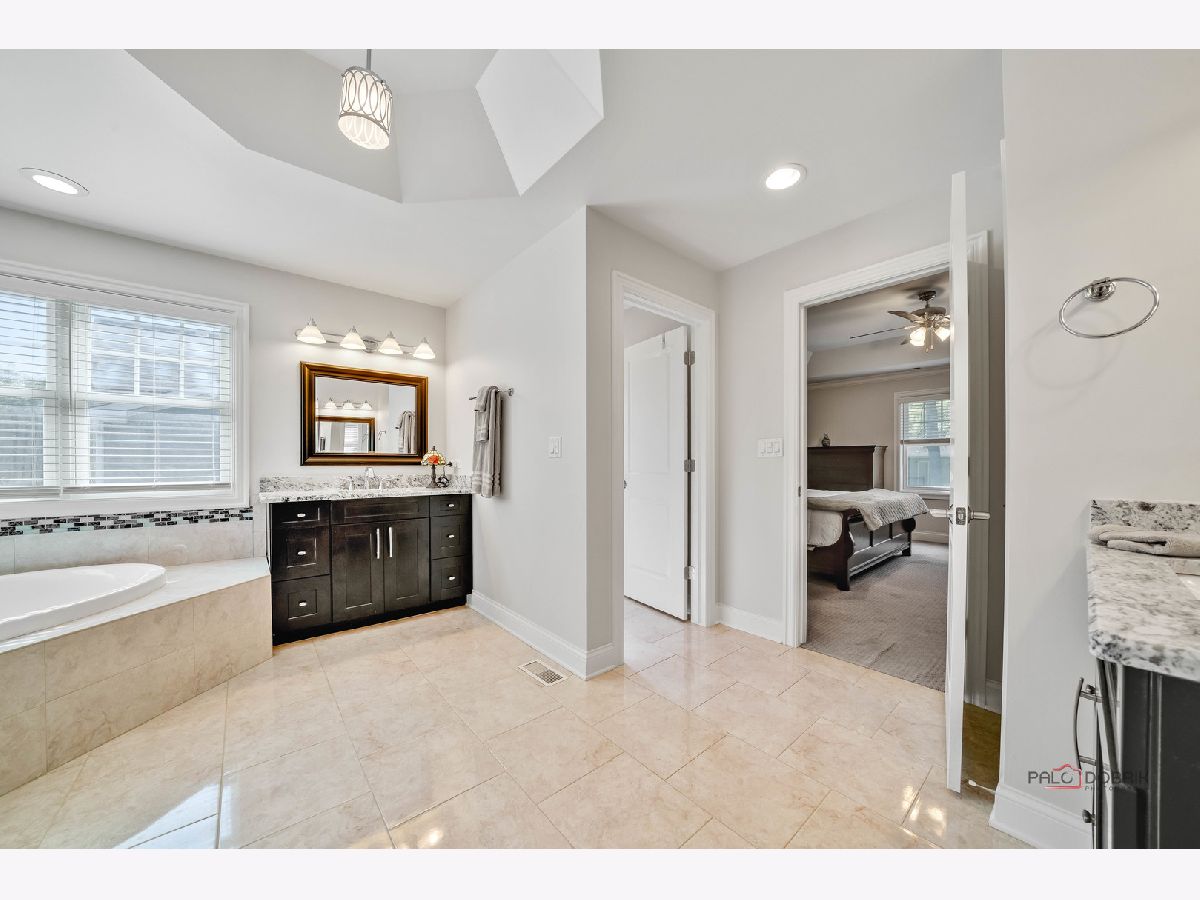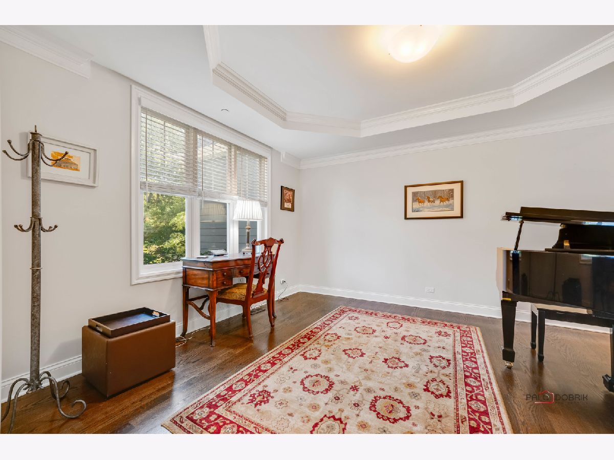 Welcome to Libertyville! This stunning custom build has it all - location, custom features, and a fabulous yard! As you pull up to this home on a quiet street tucked away yet walking distance to downtown Libertyville, you will first notice the fantastic landscaping and curb appeal! The front porch is a great spot for morning coffee or a relaxing evening beverage. Step inside and you will be amazed by the open floor plan and the sight lines in this home. There is a beautiful and bright library/office off the foyer, and a dining room off the foyer as well. Follow the hardwood floors to the fabulous great room with fireplace and custom built-ins, and take note of the stunning crown molding throughout. The great room opens to the breakfast area and the gourmet kitchen featuring luxury stainless appliances, and fantastic island with seating, and a deep window ledge for fresh herbs, plants, and natural light. A spacious powder room completes the first level. Upstairs you will find four bedrooms with high ceilings, walk in closets, and a generous and convenient second floor laundry room. The primary suite has beautiful southern exposure windows overlooking the backyard, a massive 4 piece en-suite bath with tray ceiling detail, and a walk in closet. One secondary bedroom features an en-suite with a nice walk in shower, a walk in closet and vaulted ceiling. The other two secondary bedrooms feature a jack and jill bath with separate vanity areas and sizeable closets as well. The unfinished deep-pour basement has high ceiling height, is fully insulated and is plumbed for another bath - use your imagination and create your finishing touches! The backyard has a fantastic paver patio with a few seating areas, and lots of greenspace all fully fenced and pet friendly! An oversized two car garage boasts plenty of room for storage as well. Located in highly rated Libertyville District 70 and District 128, this home is convenient to the train, to all the downtown Libertyville shops and restaurants, and to Lake Minear, the location and quality of this home simply cannot be beat!