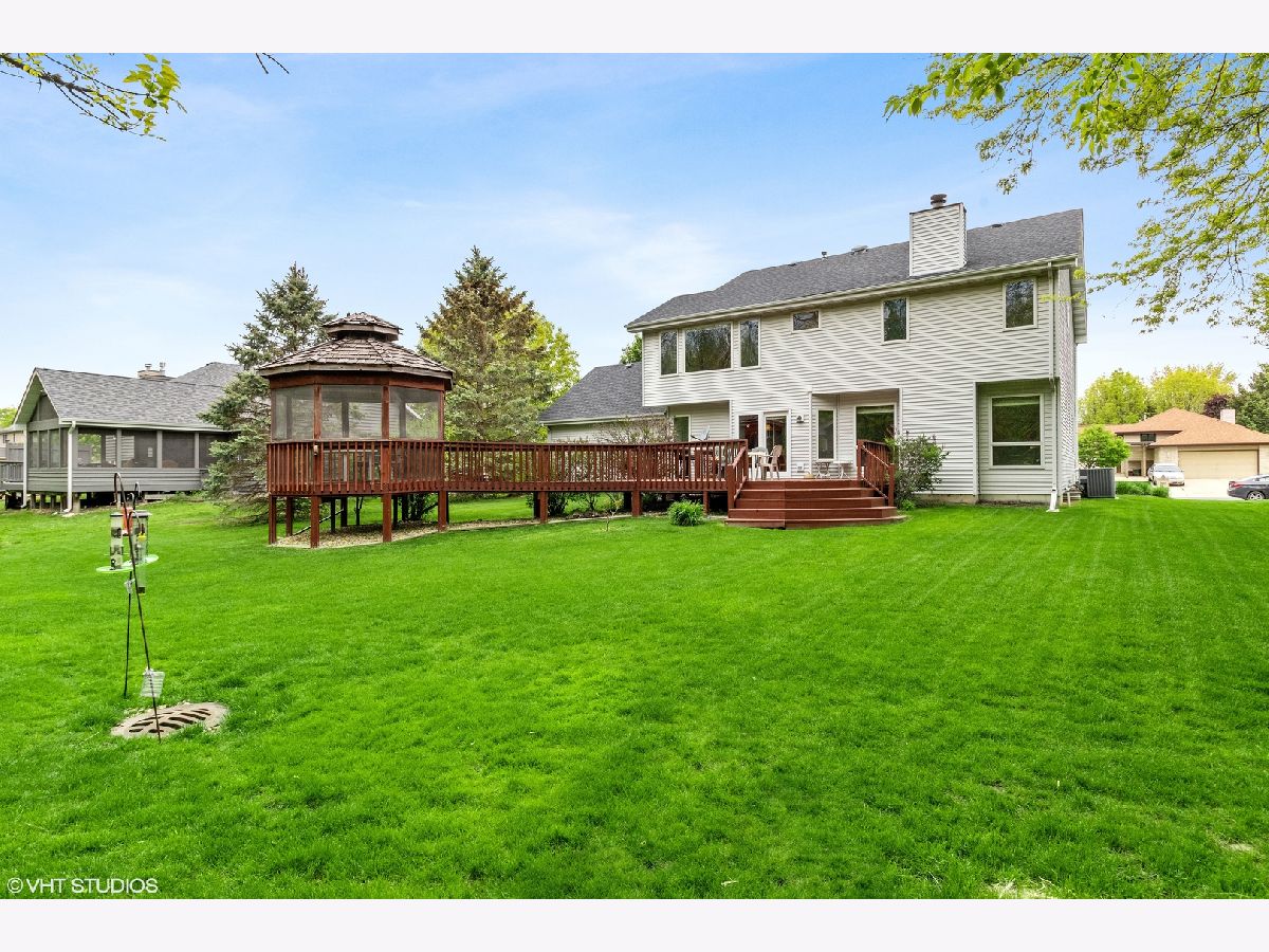 Rare home that backs up to Mather Woods in Indian Oaks subdivision near downtown Plainfield! Just 5 houses away from entrance to Mather Woods Forest Preserve walking/biking path. Charming 4 bedroom, 2.5 bath Colonial boasts dramatic forest views. Master suite has large custom windows overlooking wooded back, private bath, walk-in closet and tray ceiling. Family room has two large windows providing private forest views and a cozy wood-burning fireplace with gas starter. More wooded views from large kitchen, eating area and bedroom/office. Kitchen opens to large deck with screened gazebo equipped with ceiling fan and electric outlet for relaxing and entertaining! Large second bath with double sinks. Andersen windows, new roof and humidifier. Short distance to downtown Plainfield, Settler's Park and YMCA. Close to commuter bus stops, Rt 59 and I55. Plainfield 202 School District; Plainfield North High School.