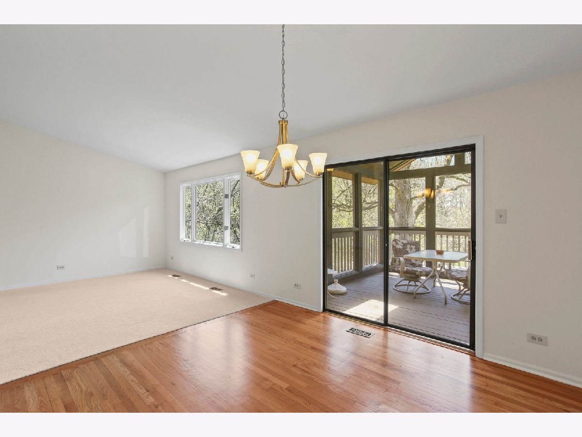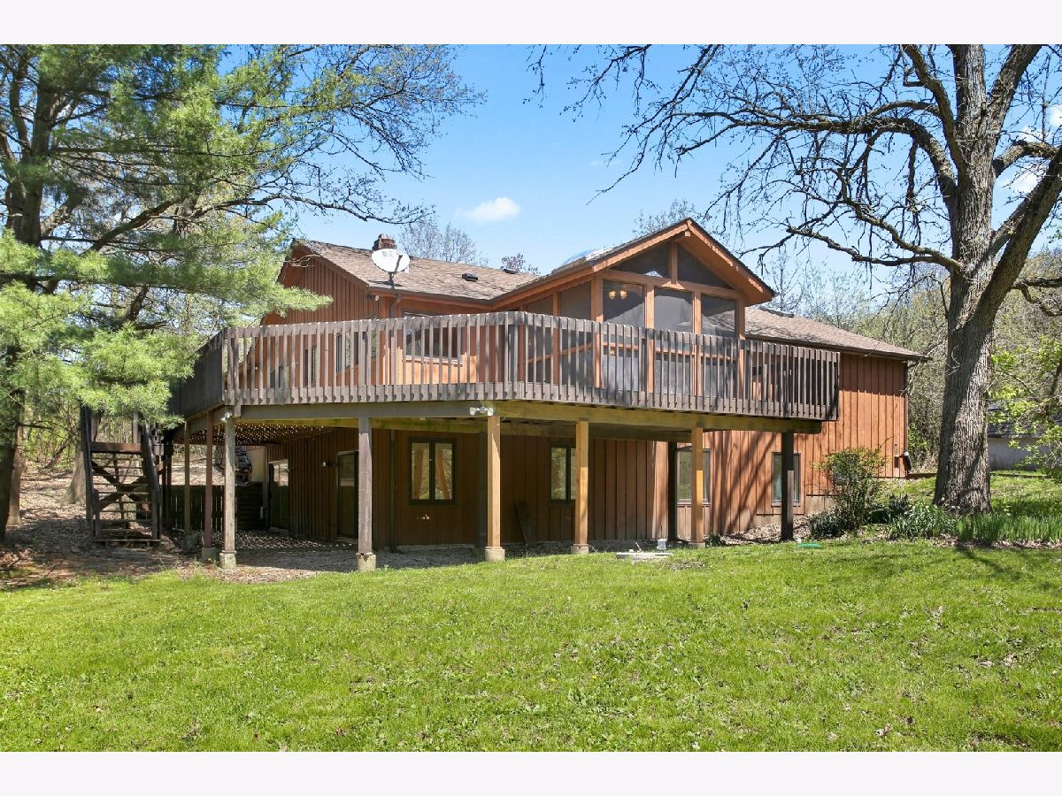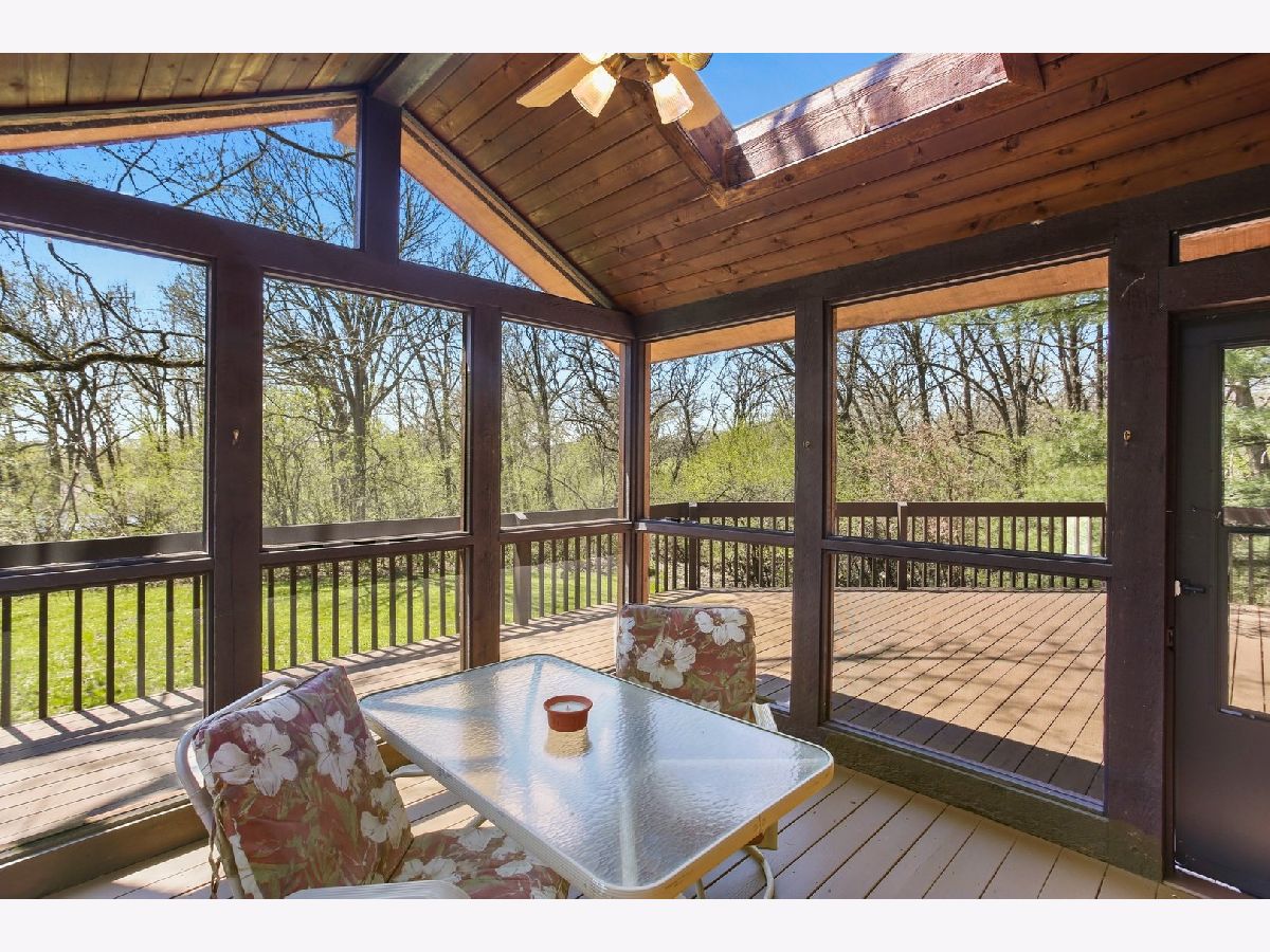 Imagine a walking trail on your own Secluded Wooded 2.2 acres! 10 minute drive to shops in Lake Zurich yet unincorporated private retreat. Front of home is deceiving... this is a 3000+ sq ft home with 4BD/ 3 FULL BATHS/ 2.5 garage, and has a very large office that could easily be a 5th bedroom. Enjoy a 68 ft x 20 ft deck that wraps around the entire backside of home that includes a vaulted screened in enclosure with skylights overlooking a pond behind your home. Master Suite and bedrooms 2 & 3 on main floor and a 4th bedroom and full bath with 2nd family room/ rec room on lower walkout level- would be perfect for multi-generational living. OPEN CONCEPT California Ranch design with a mid-century modern feel includes an enormous kitchen with wood floors,new appliances and a walk-in 8 ft pantry. Living room has original exposed wood beam and vaulted ceilings as well as beautiful picture windows to back yard. Family room all wood floors, sliding door to deck, and brick to the ceiling 2 sided fireplace. Roof is 4 years old and all mechanicals replaced in last 5 years. Home interior newly painted for next owner as well as deck refinished. This is a peaceful wooded 2.2 acres that has a small creek on the back section of property, you could grow a garden here or store your recreational toys.