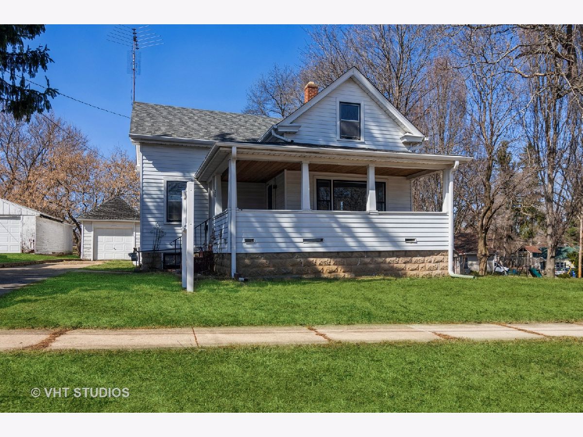 This property is located in a great location, tons of potential! Welcoming, large porch with nice wood ceiling. Freshly painted with a new roof, furnace and newer garage door. Super cute floor plan with lots of charm. Beautiful hardwood floors, arched doorway, bright kitchen with white cabinets. Kitchen is large enough to easily have an island. Washer/dryer and bath on main level. Full basement. Detached garage with outdoor structures, formerly used as chicken coops. Walking distance to downtown dining, shopping, parks and schools. Property being sold AS IS. Seller is not selling adjacent lot.