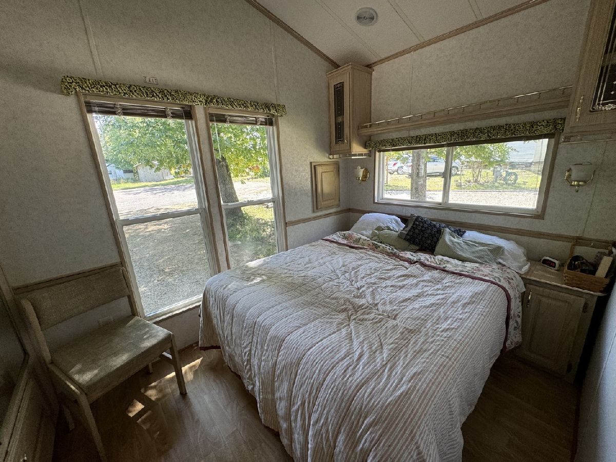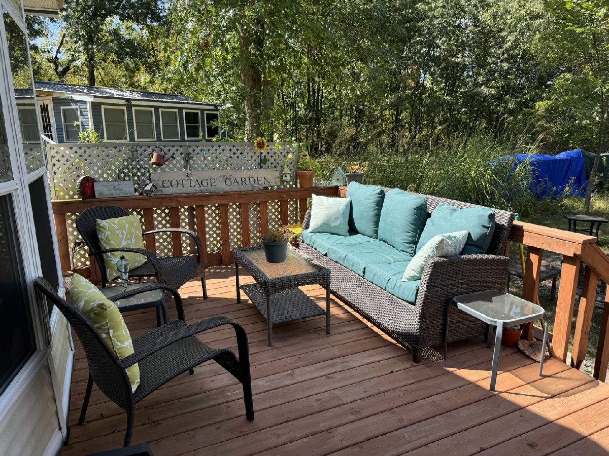 This spacious, pie shaped lot is located in a cul-de-sac with beautiful common prairie ground and a walking path behind. Features a 2000 Casa Villa Park Model with metal roof. Features 2 bedrooms and a three season Room Addition with large living room and bedroom. Total of 3 bedrooms. All appliances, water heater central air/heat(2022), skirting, LP tank and contents, front covered deck and partially covered back deck. Also, included are a firepit, firewood and shed. This lot boasts pride of ownership, well maintained and nicely landscaped. Please SEE DISCLOSURES for personal property staying with property. Woodhaven Lakes offers access to the 7 lakes, fishing ponds, two pools, beach, recreational complex, playground, general store, trails for hiking, cross country skiing, and snowmobiling. Please note that Woodhaven Lakes is a gated recreational community and cannot be used as a primary residence or homestead. You must be accompanied by a broker to view any properties. Property owner pays the association fees.