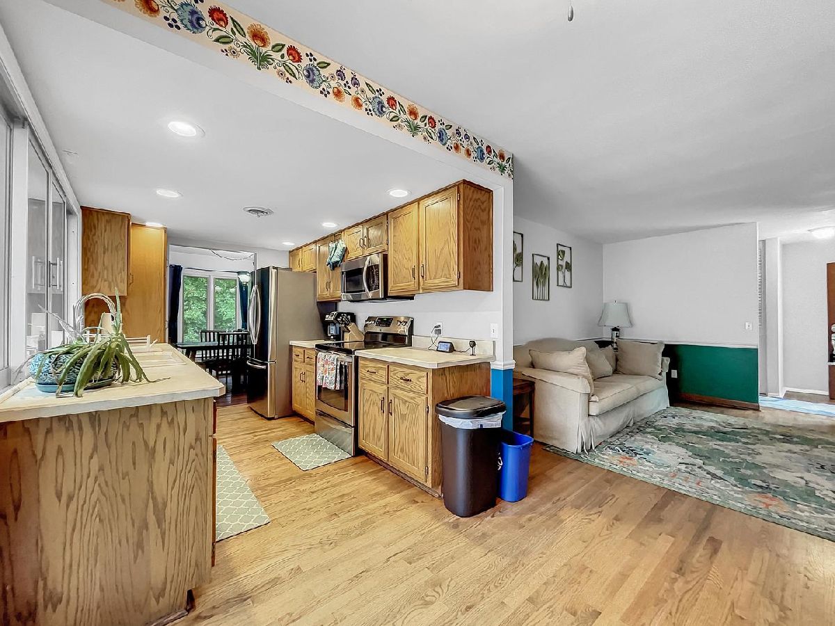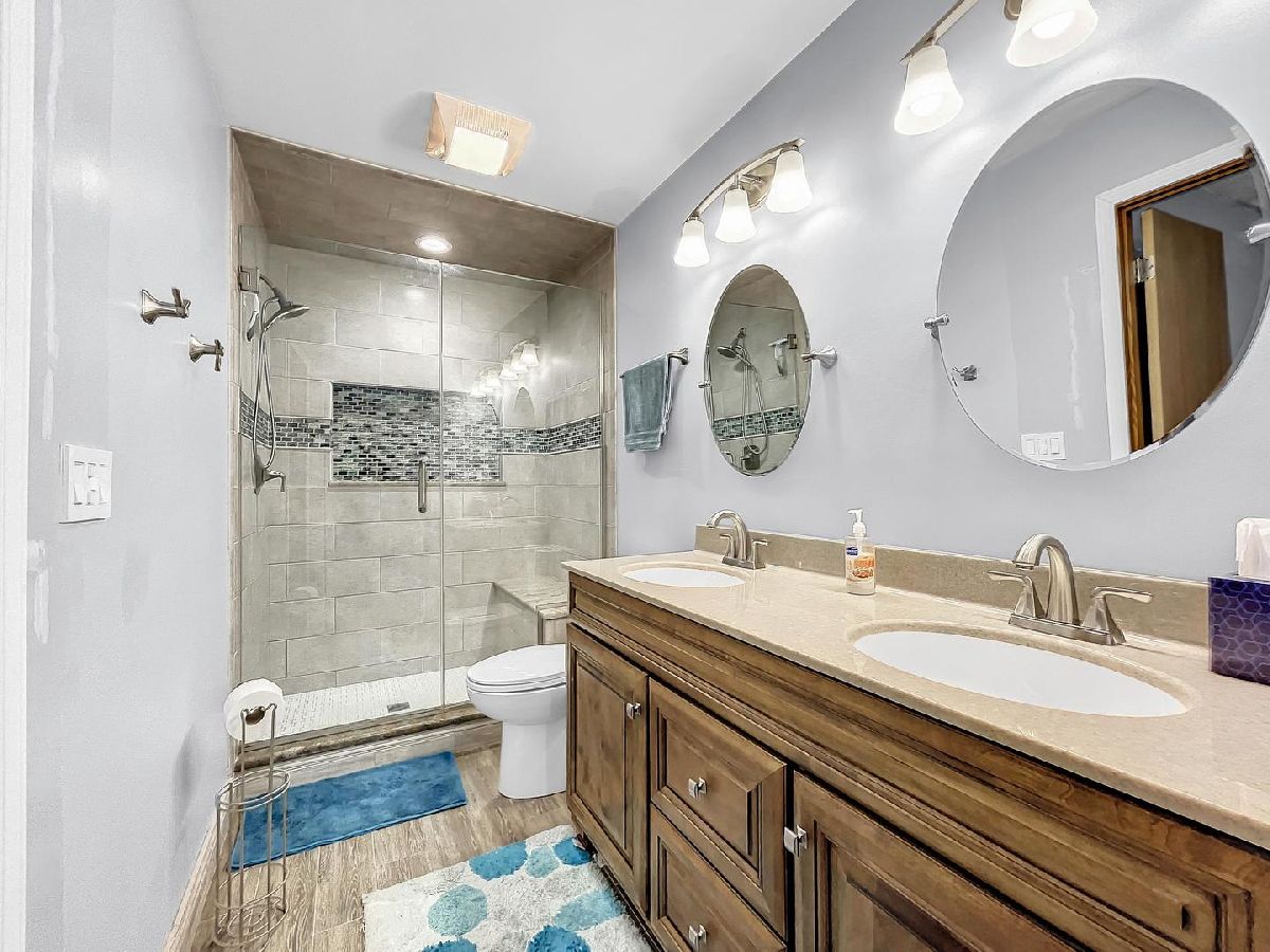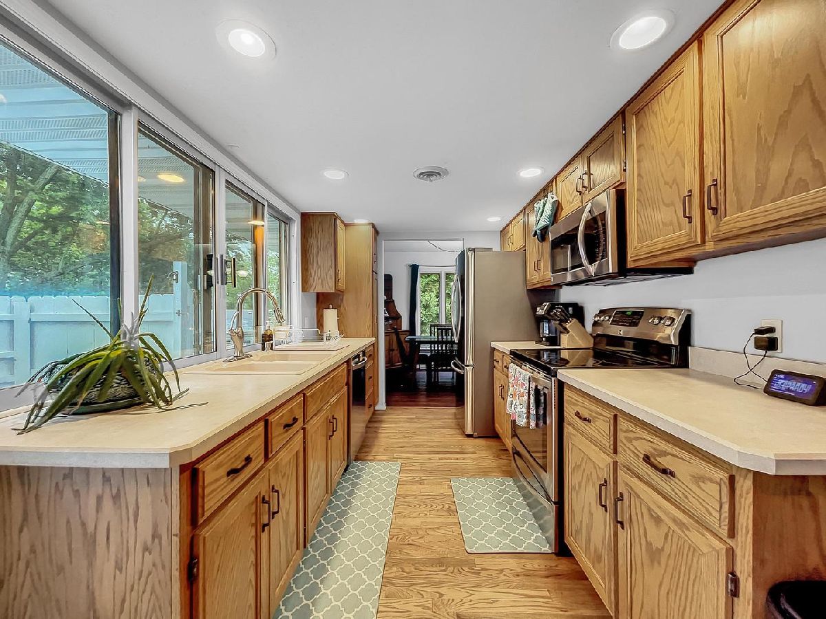 NEW ROOF 06/23! NEW FURNACE, NEW SMART THERMOSTAT, NEW CEILING FAN IN BR 1, NEW FLOORING IN DINING & LIVING RMS, VENTS PROFESSIONALLY CLEANED WITH THE PAST YEAR, NEW BLINDS IN NURSERY. READY FOR NEW OWNERS TO MOVE RIGHT IN! Ranch w/ 4 bedrooms & 2.5 baths, modern touches & over 2800 sq. ft of livable space! Convenient First floor laundry, whole house fan for instant cool down. Basement w/bathroom & bedroom make this an ideal living space that's also great for extra office or den. Rec Room also features large dry bar with stools, refrigerator that stays and comfortable sectional also that stays. Kitchen has all stainless-steel appliances, solid surface tops, & view from big windows that looks out over your own private deck/patio. Master bath with travertine tile, WIC, upgraded dual vanity, & walk in shower. This home has been decorated to today's standards in warm tones & has tons of natural light. Great schools in Oswego HS District 308. Front freshly landscaped. Close to River Walk. Quick closing possible. All offers will be considered! Relocation! THE RING DOOR BELL & SECURITY SYSTEM DOES NOT STAY! THE REFRIGERATOR BY THE BAR & RED SECTIONAL IN BASEMENT DOES STAY WITH SALE.