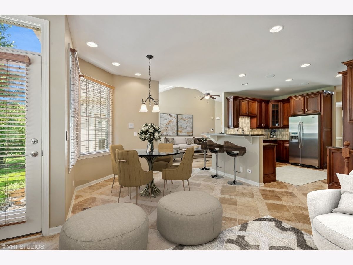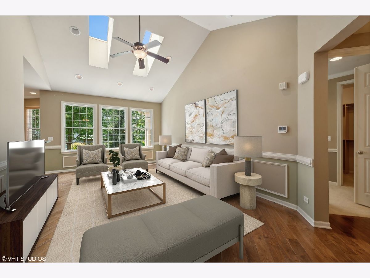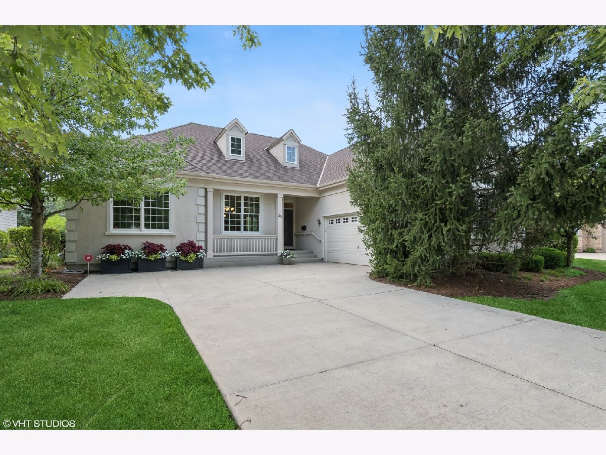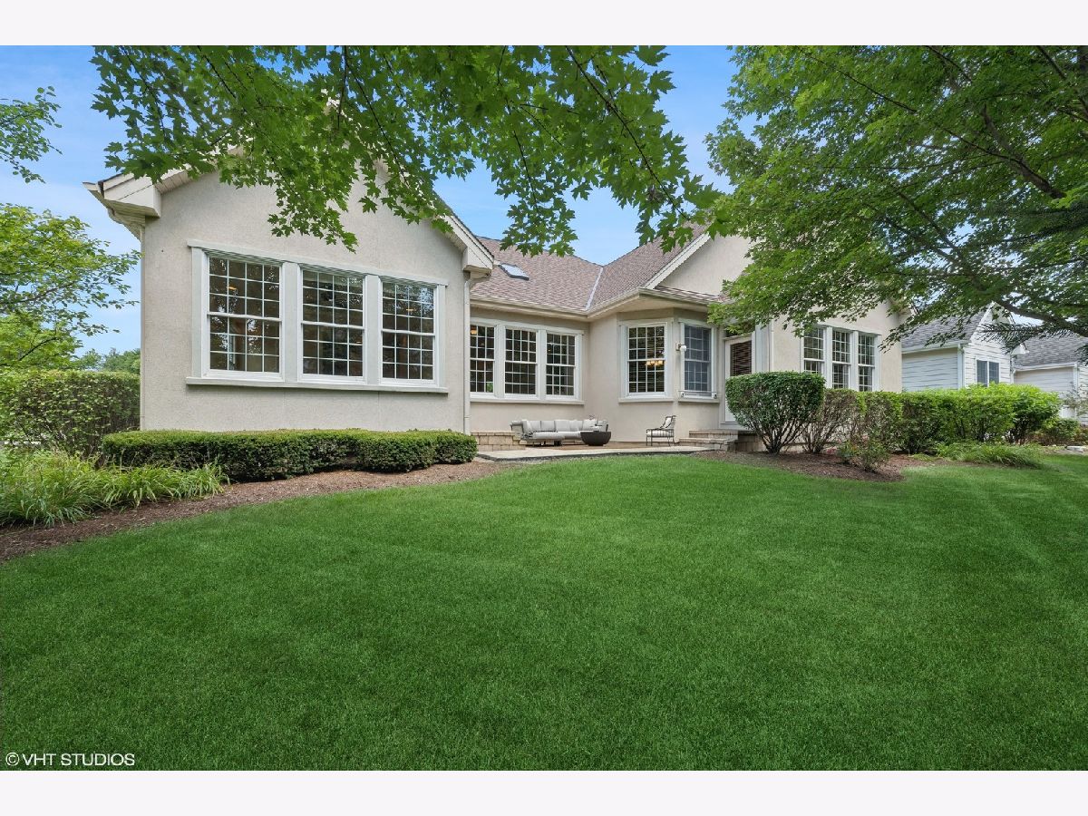 A fabulous offering in a premier gated community - The Regency at the Woods of South Barrington - a 55+ active adult community offering resort style living! Enjoy a vibrant lifestyle with amenities including pool, sports courts, fitness room, clubhouse and many social activities in a private gated setting! This elegant and meticulously maintained ranch home offers true one-level living, designed to provide comfort and luxury at every turn. Step inside to a spacious, open floor plan flooded with natural light, highlighting the custom moldings and architectural details that add a touch of sophistication throughout. The foyer, living, and dining rooms boast stunning hand-scraped hickory flooring. The dining room, situated just off the foyer, features a columned entry and custom built-in shelving perfect for your dining service. The living room is a true showstopper with its vaulted ceiling and two skylights, creating an airy and inviting space. Moving seamlessly into the heart of the home, the kitchen, breakfast room, and family room blend together beautifully, all adorned with custom stone flooring. The kitchen is a chef's delight, with gorgeous cherry cabinetry, stainless steel appliances, pantry closet and breakfast bar. The adjacent breakfast area and family room, complete with a cozy gas fireplace and a door leading to the paver patio, make for perfect spots to gather and relax. Your private retreat awaits in the large primary bedroom, featuring a sitting area with a door to the paver patio, a walk-in closet with custom organizers, and a luxurious ensuite bath. Two additional bedrooms share a well-appointed private bath, ensuring comfort and convenience for family or guests. A charming powder room and a laundry room with access to the two-car garage complete the main floor. The full unfinished lower level offers endless possibilities for future expansion. Outside, enjoy the private patio, perfect for morning coffee or evening gatherings, surrounded by a lush, grassy lawn area and beautiful landscaping. A dynamic lifestyle awaits you in this private gated setting ideally located near shopping & dining at the Arboretum of South Barrington and providing easy access to O'Hare and transportation corridors. Experience the perfect blend of elegance, comfort, and convenience!