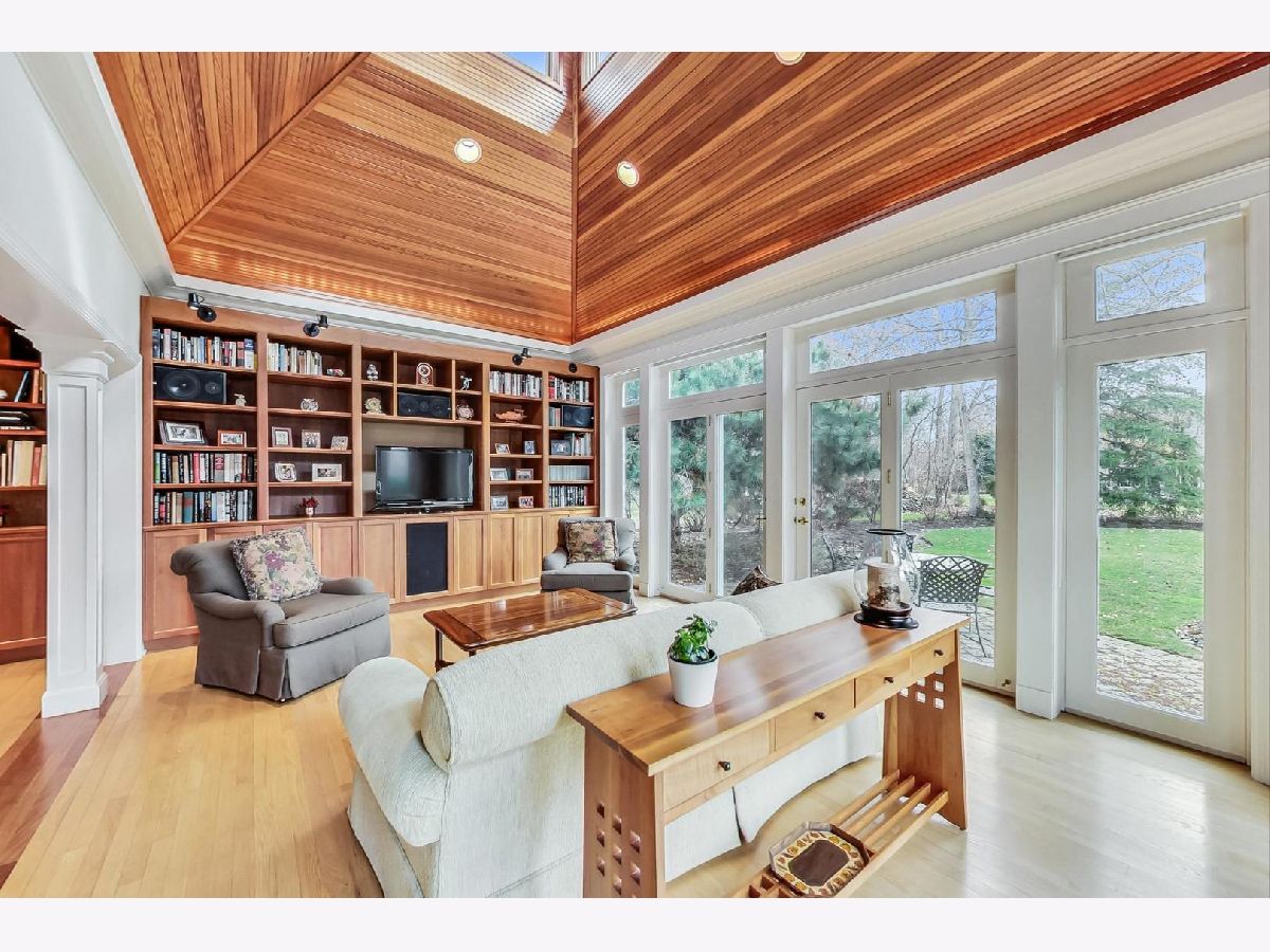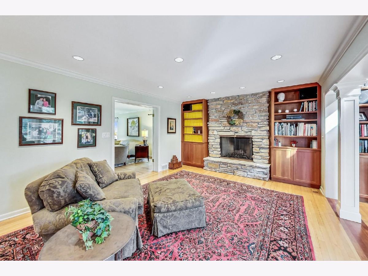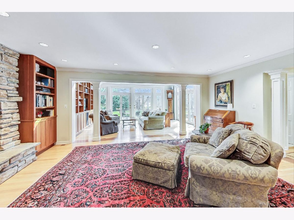 You'll be impressed the moment you enter this pristine, 4 bed, 2.1 bath home. Meticulously maintained and updated over the years, the foyer is flanked by a formal living and dining room; both ideal for entertaining. The Chef's kitchen has granite counters, a center island, table area, SS appliances and accesses the comfortable family room with a floor to ceiling stone fireplace framed by custom milled shelving. The beautiful millwork extends into a sun drenched 4-season room. It has a cathedral ceiling and opens onto an oversized brick paver patio and park-like yard. The spacious primary is en suite with a renovated bath. All four bedrooms are spacious and bright with ample closet space. There's also a first floor laundry, recreation room, storage room with work area, an attached 2.5 car garage and hardwood floors under all bedroom and hall carpeting! 25 Brunswick is located in top-rated Stevenson HS District 125 and Elementary School District 103. It's near the METRA, I-294 and just 25 minutes from O'Hare!