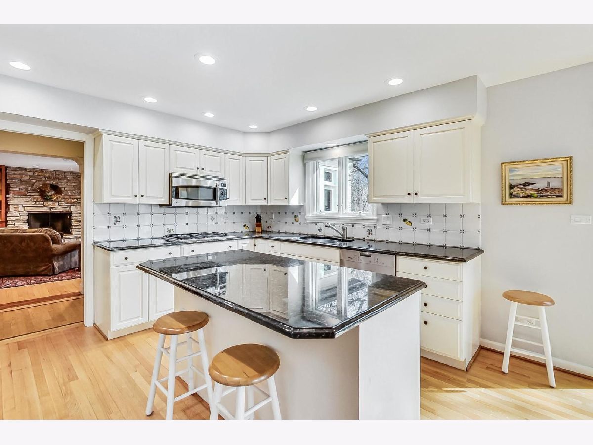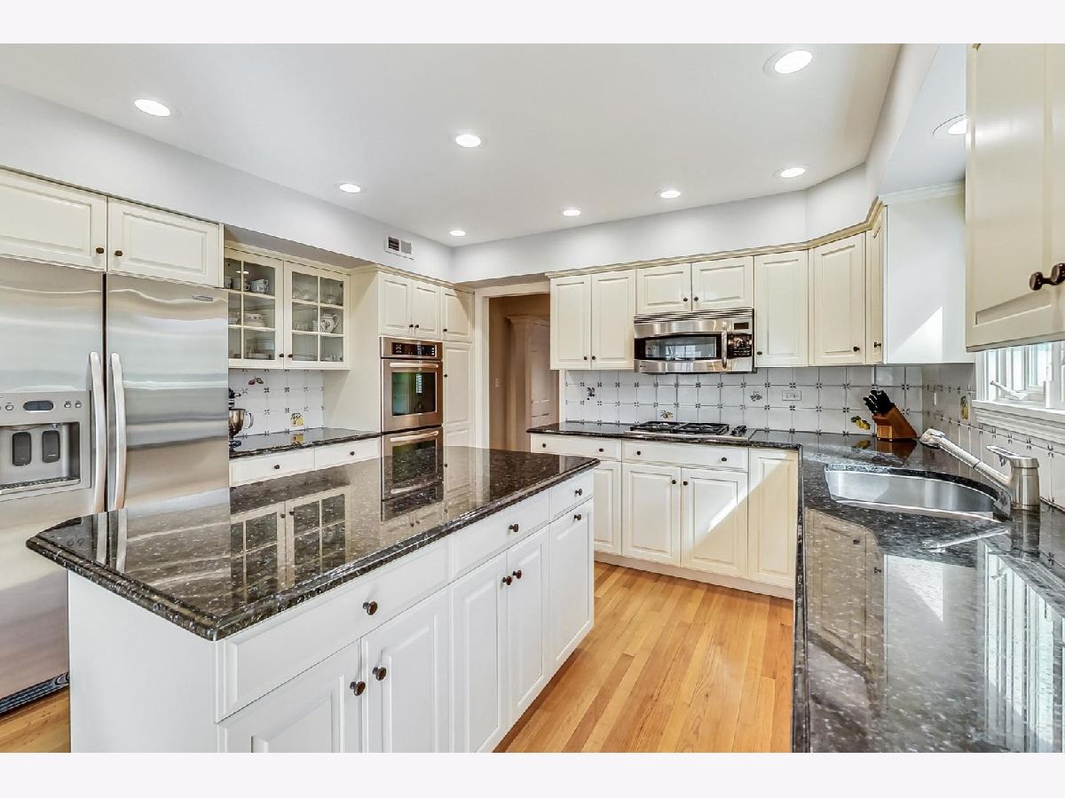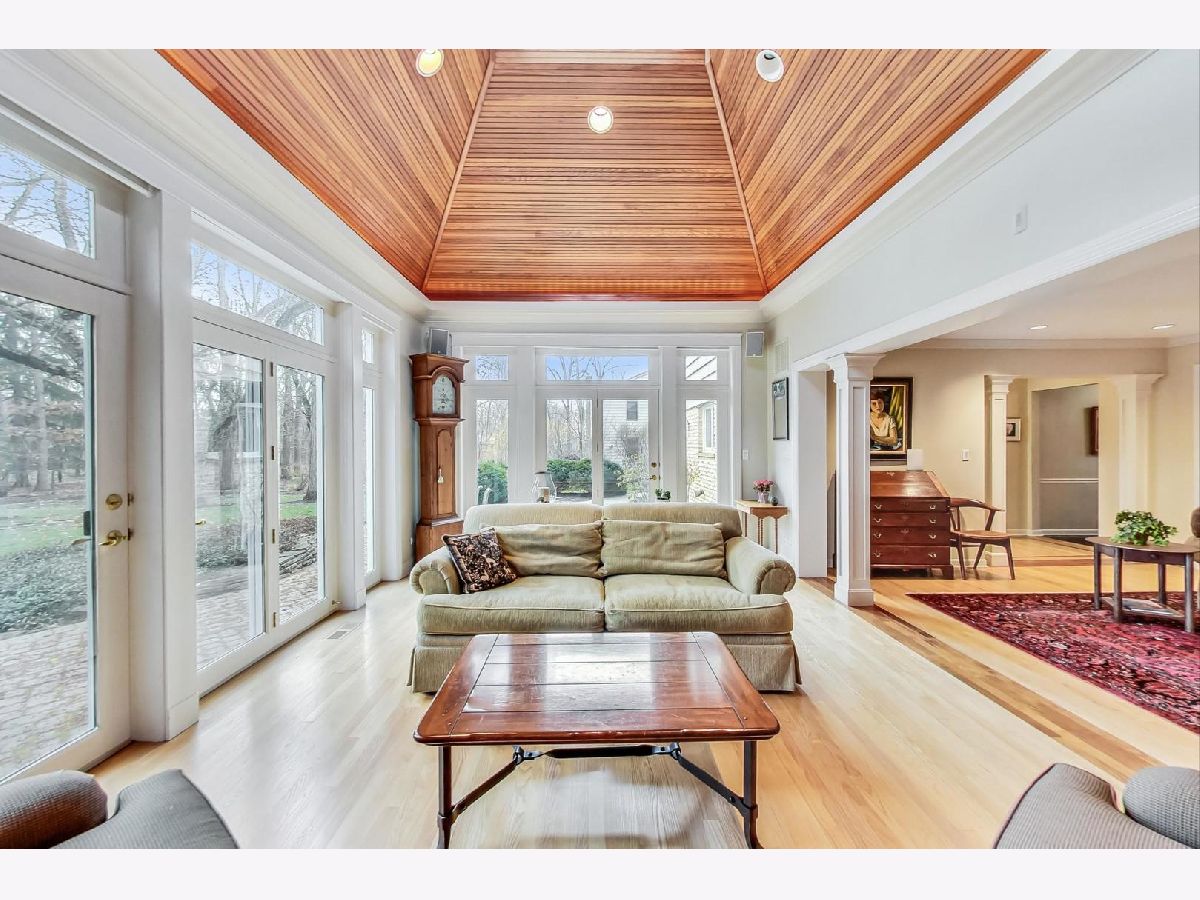 You'll be impressed the moment you enter this pristine, 4 bed, 2.1 bath home. Meticulously maintained and updated over the years, the foyer is flanked by a formal living and dining room; both ideal for entertaining. The Chef's kitchen has granite counters, a center island, table area, SS appliances and accesses the comfortable family room with a floor to ceiling stone fireplace framed by custom milled shelving. The beautiful millwork extends into a sun drenched 4-season room. It has a cathedral ceiling and opens onto an oversized brick paver patio and park-like yard. The spacious primary is en suite with a renovated bath. All four bedrooms are spacious and bright with ample closet space. There's also a first floor laundry, recreation room, storage room with work area, an attached 2.5 car garage and hardwood floors under all bedroom and hall carpeting! 25 Brunswick is located in top-rated Stevenson HS District 125 and Elementary School District 103. It's near the METRA, I-294 and just 25 minutes from O'Hare!