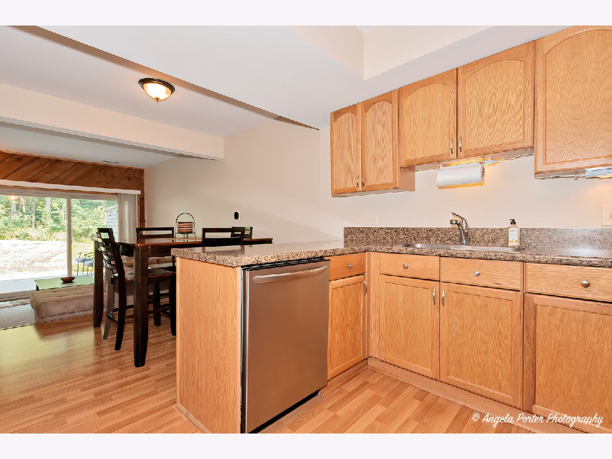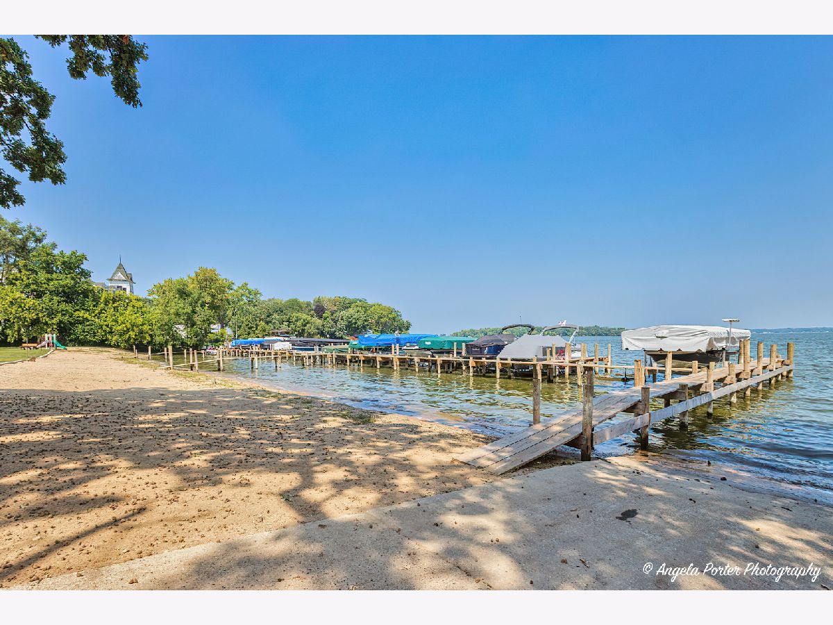 Spacious sunny 3-bedroom, 2.5-bathroom end unit with private entrance is perfect for weekend getaways or year-round living. Plenty of room for family and friends. The sunken living room features a wood-burning fireplace for cozy winter days. The living room is open to the dining area and kitchen, with newer appliances and countertops. Exit the sliding doors to enjoy the tranquility of a private wood deck that offers relaxing views of a wooded area and wildlife. For added relaxation, the large primary bedroom features a private deck, an ideal spot to unwind. The primary also has an en-suite bathroom and walk-in closet. The bathrooms have undergone recent remodeling, ensuring a modern and refreshed feel. Convenient second-floor laundry. Parking is made convenient with two dedicated parking spaces, including a one-car garage, providing both a storage room and shelter for your vehicle. The unit is freshly painted and has a newer air conditioner as well. The complex's prime location on Mineola Bay grants you direct access to the Chain-O-Lakes, perfect for water enthusiasts. This pet-friendly community offers an array of amenities, including a heated pool, a clubhouse, a beach area, boat launch and a park. Additionally, the possibility of a boat slip and boat storage adds to the appeal for boat owners. This end unit offers not only ample space but also a combination of modern upgrades and natural beauty in a desirable location. Walking distance to downtown Fox Lake, Metra station, movie theater and the new lakefront park.