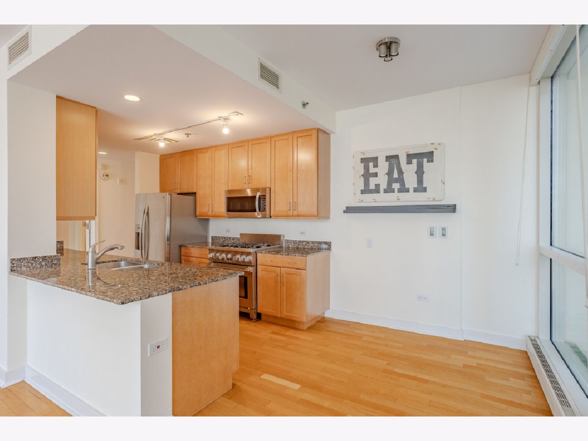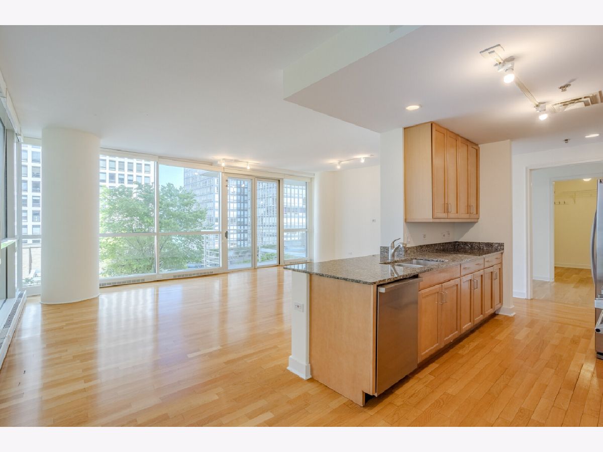 A rare opportunity to acquire a large 1BD plus den/office. This bright and quiet unit offers generous rooms, an open floor plan with floor to ceiling windows, a gourmet kitchen with stainless steel appliances, stone countertops, all new window treatments, large walk-in closet, main bath with separate shower, soaking tub, and double sink, powder room, hardwood flooring, in-unit washer and dryer, and large balcony w/ lake and city views. Freshly painted. Ideally located near the lake, Lake Shore Park, Michigan Ave, shopping, dining, museums, Navy Pier, theaters, Northwestern Memorial Hospital, and public transportation. A full amenity building with 24 hour door staff, onsite manager and engineer, club room with catering kitchen, roof terrace, gas grills, 3200 sq. ft. fitness center, bike room, Parking and storage included. Dogs OK. No weight limit.