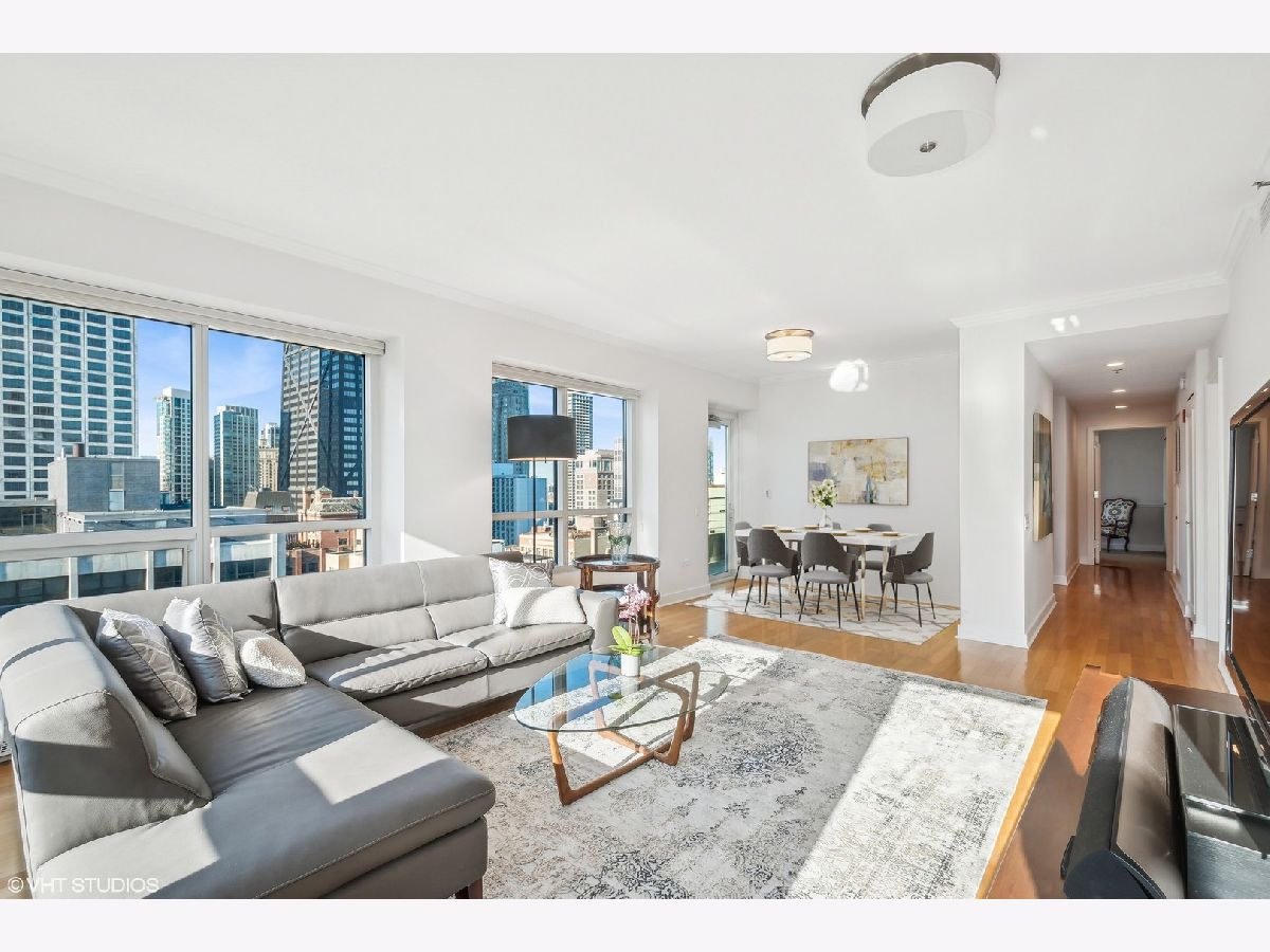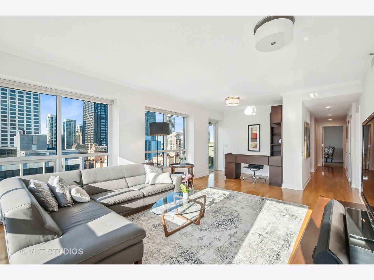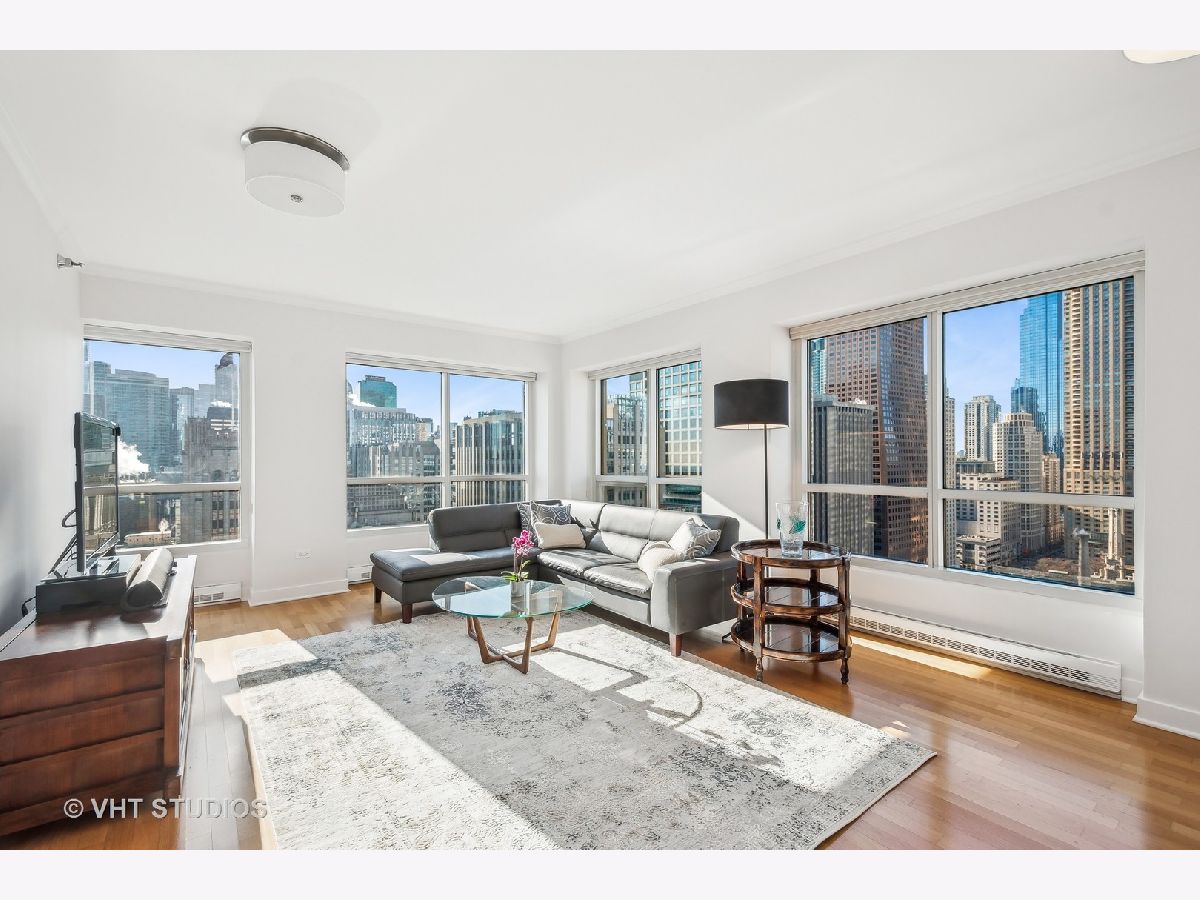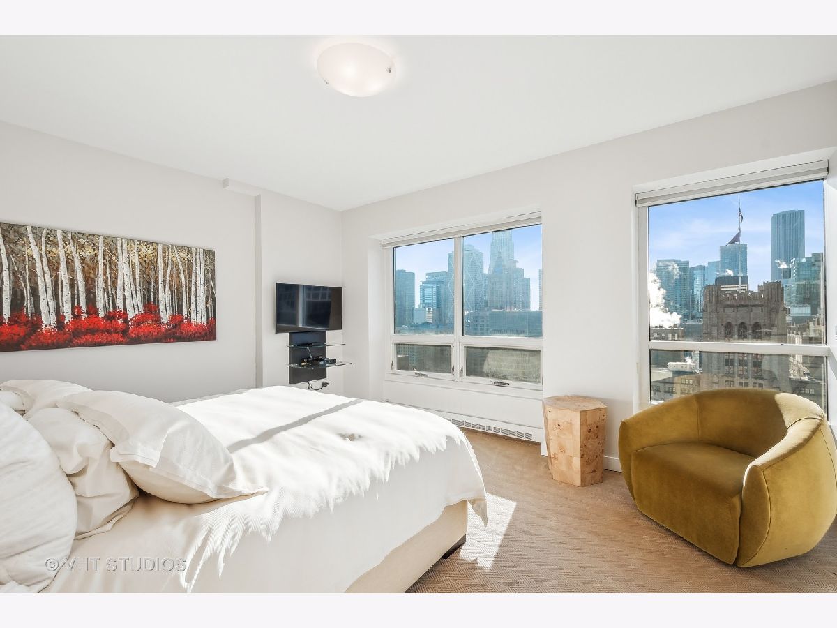 Enjoy breathtaking views of Lake Michigan, the city skyline, Lake Shore Park, and Navy Pier from this South and West-facing end unit in one of Chicago's premier luxury high-rises buildings. This 2-bedroom, 2 1/2-bath home combines sophisticated updates with a thoughtfully designed layout that ensures both privacy and comfort. The gourmet kitchen features stainless steel appliances, including Dacor and Bosch, and a spacious eat-in area with a large west-facing window that fills the space with natural light. The dining area, currently set up as a stylish home office with custom built-ins, can easily be converted back to a dining room, if desired, offering flexibility to suit your lifestyle. A generous south-facing primary bedroom includes a gorgeous spa-like bathroom, complete with an oversized shower, heated floors, custom cabinetry, stunning counters, flooring, and a walk-in closet. Additional features include hardwood flooring, custom-built closets, all-new interior doors, in-unit laundry, and excellent storage space. Relax on your private balcony or take advantage of the building's exceptional amenities: a state-of-the-art fitness center, rooftop deck, party room, bike room, 24-hour door staff, and more. The pet-friendly building is ideally located east of Michigan Avenue, just steps from Lake Shore Park's running track, tennis courts, playground, and summer farmers' market. Shopping, dining, museums, and public transportation are all within easy reach. This is your chance to own a beautifully updated home that blends luxury, functionality, and unparalleled views in one of Chicago's most coveted neighborhoods.