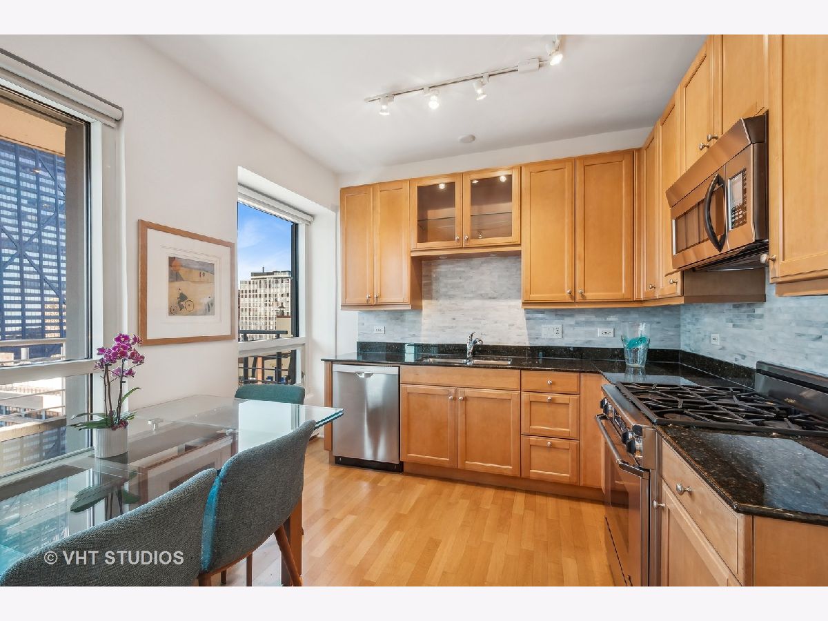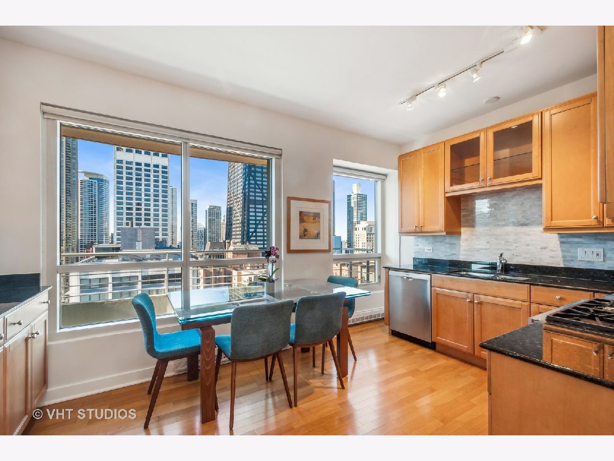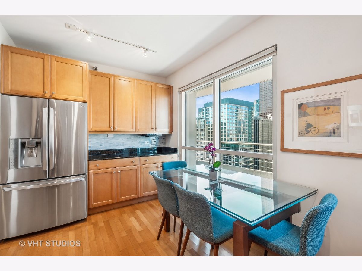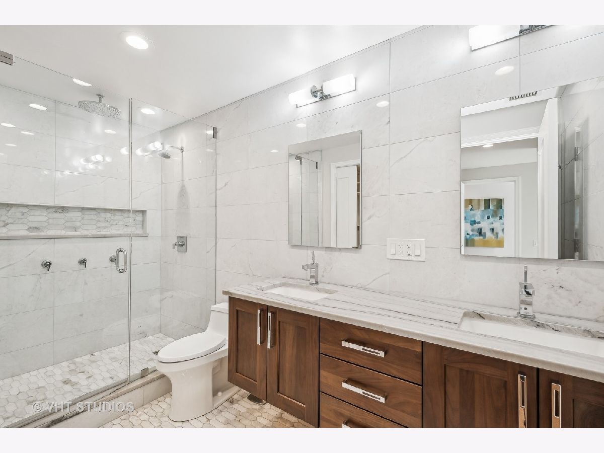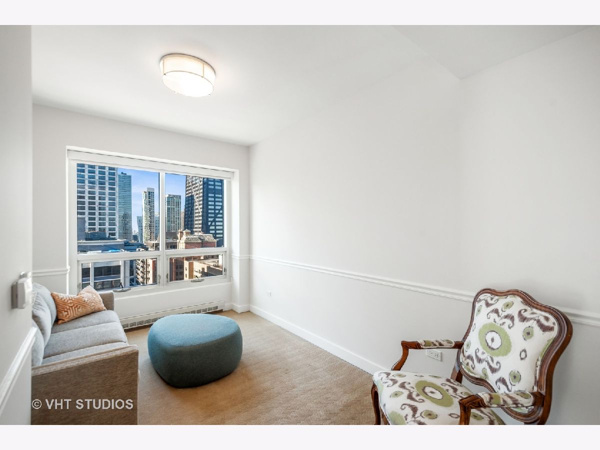 Enjoy breathtaking views of Lake Michigan, the city skyline, Lake Shore Park, and Navy Pier from this South and West-facing end unit in one of Chicago's premier luxury high-rises buildings. This 2-bedroom, 2 1/2-bath home combines sophisticated updates with a thoughtfully designed layout that ensures both privacy and comfort. The gourmet kitchen features stainless steel appliances, including Dacor and Bosch, and a spacious eat-in area with a large west-facing window that fills the space with natural light. The dining area, currently set up as a stylish home office with custom built-ins, can easily be converted back to a dining room, if desired, offering flexibility to suit your lifestyle. A generous south-facing primary bedroom includes a gorgeous spa-like bathroom, complete with an oversized shower, heated floors, custom cabinetry, stunning counters, flooring, and a walk-in closet. Additional features include hardwood flooring, custom-built closets, all-new interior doors, in-unit laundry, and excellent storage space. Relax on your private balcony or take advantage of the building's exceptional amenities: a state-of-the-art fitness center, rooftop deck, party room, bike room, 24-hour door staff, and more. The pet-friendly building is ideally located east of Michigan Avenue, just steps from Lake Shore Park's running track, tennis courts, playground, and summer farmers' market. Shopping, dining, museums, and public transportation are all within easy reach. This is your chance to own a beautifully updated home that blends luxury, functionality, and unparalleled views in one of Chicago's most coveted neighborhoods.