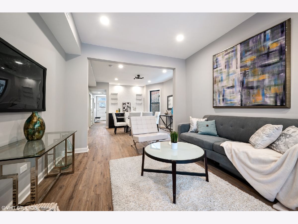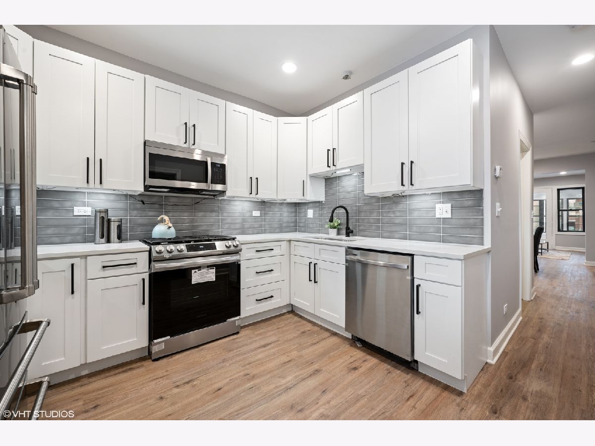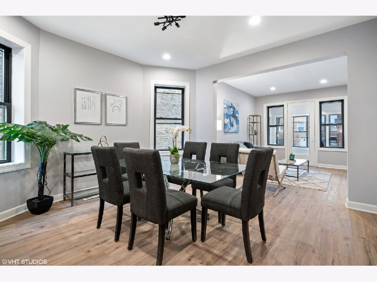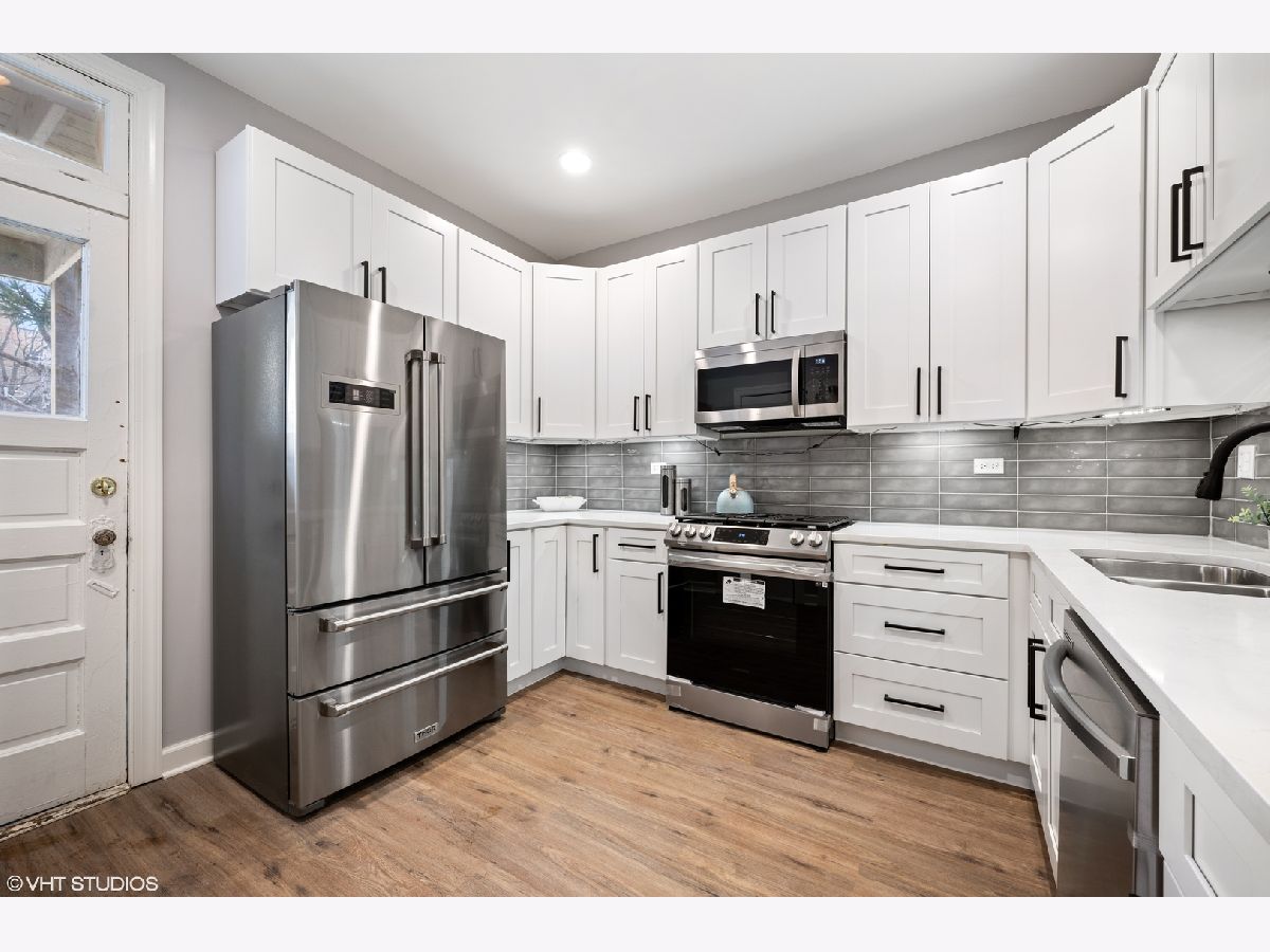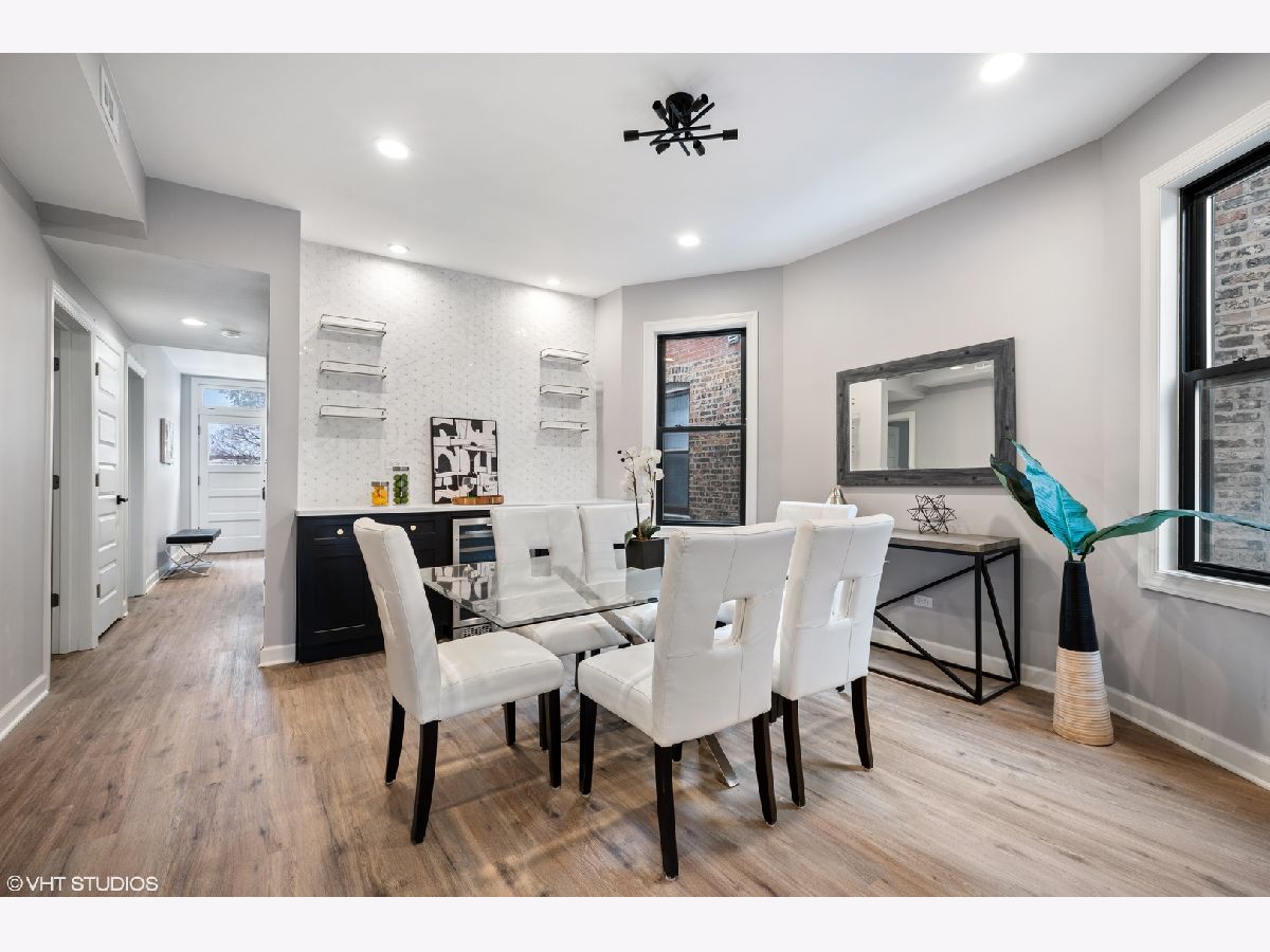 Come see this beautiful fully gut renovated brick two flat steps from downtown Lincoln Square today! 2022 full gut renovation of a classic Chicago brick two-flat. Top floor unit is nearly 1300 square feet with 3 beds, 1 full bath + office. First floor unit is a large roughly 2300 square foot duplex down with 4 beds, 2 baths + office. Brand new luxury kitchens with high end Thor and Samsung appliances, soft close cabinetry and quartz counters. Brand new spa like bathrooms. Each unit contains custom built-in bar with wine fridge. All new energy efficient Low E and Argon Gas black windows, HVAC, LVT flooring, drywall, electrical and plumbing. Oversized washer and dryer in each unit! Both units have large private decks perfect for grilling and dining outside. Includes large shared fenced in back yard with brand new artificial grass. 3 surface level parking spaces off the alley