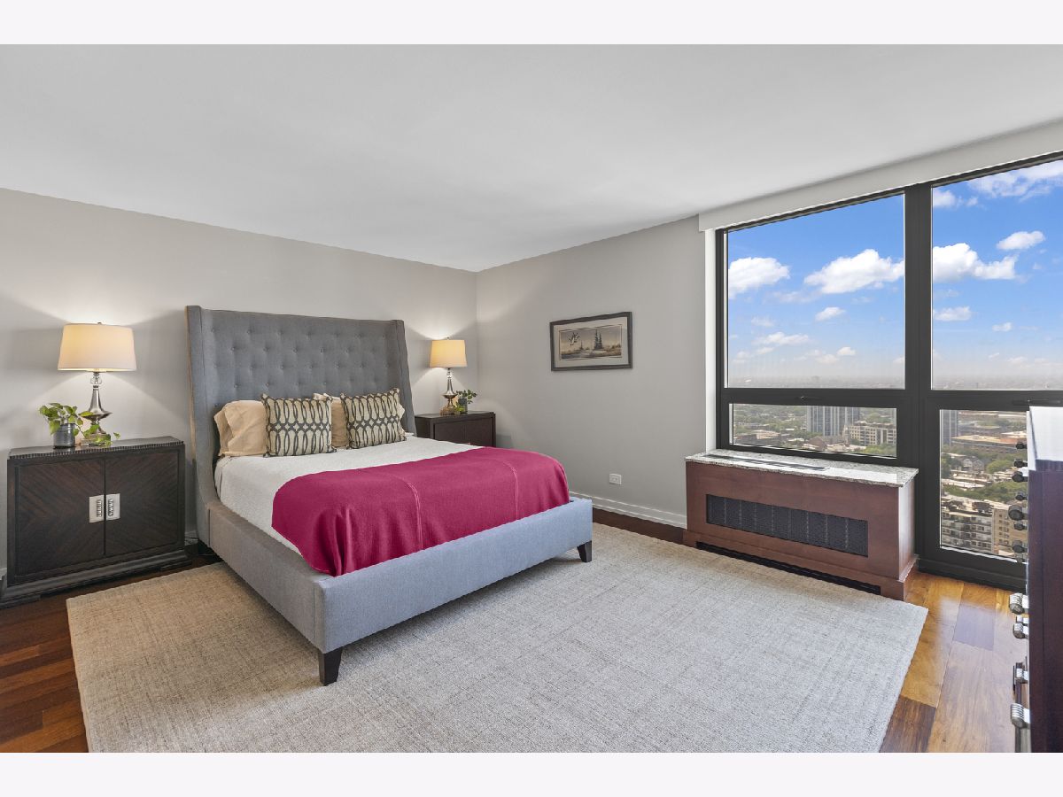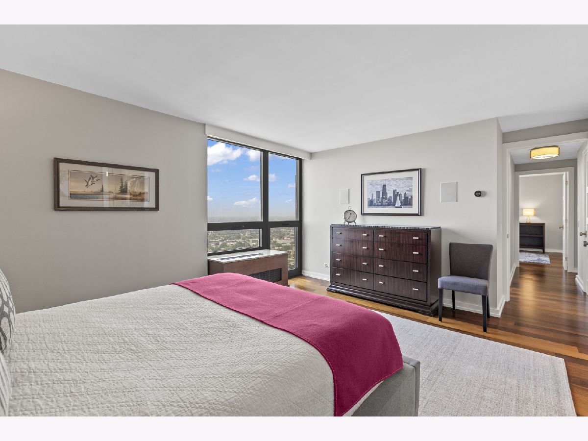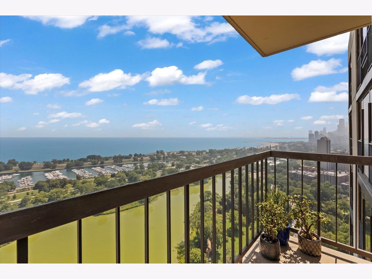 Discover this highly coveted and rarely available 04-tier unit at 2500 North Lakeview Avenue. Unit 3404 was completely renovated in 2017 with premium finishes and high-end appliances throughout. It is a 3-bedroom, 2- bath corner unit with breathtaking east-facing views with a covered balcony overlooking Lake Michigan, Diversey Harbor, and Lincoln Park's North Pond. From the balcony to the north enjoy views of the Diversey Driving Range, and to the south, take in the dazzling city skyline. Situated on the thirty-fourth floor of a premier full amenity building, this thoughtfully designed unit boasts Brazilian Walnut hardwood floors, generous closet space, and a welcoming formal foyer. The gourmet kitchen features custom cabinetry and stunning quartz countertops with chef-quality stainless steel appliances, including an induction cooktop with matching vent hood, and thoughtfully designed vertical spice racks for the ultimate culinary convenience. The primary suite serves as a private sanctuary with premium wall speakers, a custom large closet with built-in drawers, and a spa-inspired bathroom. The bathroom features custom cabinetry, quartz countertops, and luxury shower system featuring thermostatic valves with dual individual pressure controls for both fixed and handheld options. Bedrooms two and three are generously sized and offer beautiful north and west exposures. The second full bath provides guests with their own spa-like experience with a full shower. This unit features a front-loading washer & condensation dryer. This is a prestigious 35-story building right on the lakefront and is meticulously maintained by a 24/7 door staff and on-site professional management team. Amenities include a heated outdoor pool, barbeque and sun deck, hospitality suite, fitness center, bike room and additional laundry facilities. The building is pet-friendly and offers leased valet parking in its attached garage.