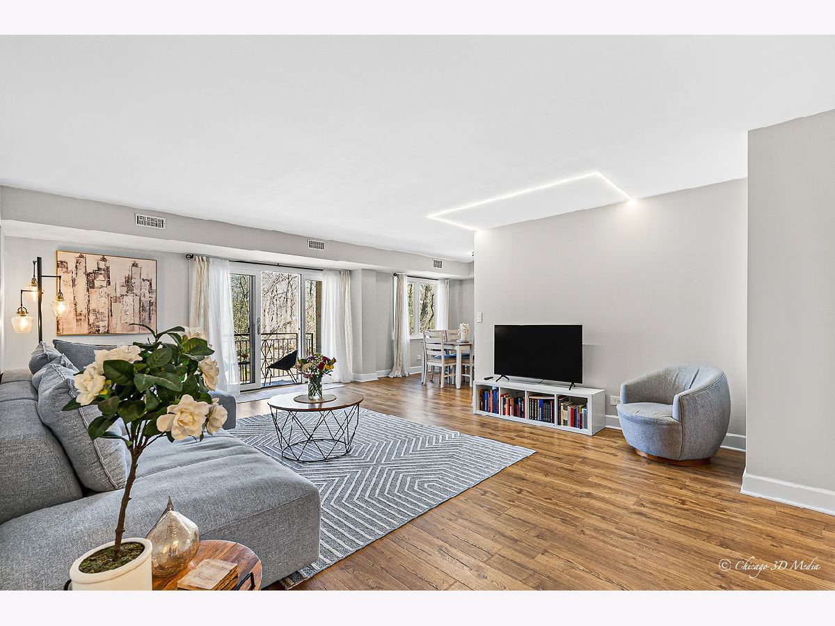 Welcome to your serene retreat! Move right in to this spacious, sunlit and thoughtfully designed first-floor condo in the Tattersall Square Complex - offering the perfect blend of comfort, style, and nature. Step out onto your private balcony and take in the peaceful views of the adjacent forest preserve while drinking your morning coffee - your own slice of tranquility. Plenty of space to entertain in the large open concept living and dining room. Enjoy cooking in the updated kitchen with stainless steel appliances and quartz countertops. Featuring 2 generously sized bedrooms - both bedrooms offer ample closet space, while the primary suite includes an updated en-suite bath with tasteful, modern finishes. The second bathroom has also been beautifully updated for guests or shared use. The in-unit laundry room brings added convenience and storage flexibility. With plenty of closet space throughout, beautiful natural light, and easy access to trails and transportation (close to 294), this condo checks all the boxes. Garage parking, guest parking and extra storage included. Magnificent courtyard with fountain and benches. Outdoor in-ground community pool is being completely updated. Don't miss out on this rare first-floor gem -schedule your showing today!