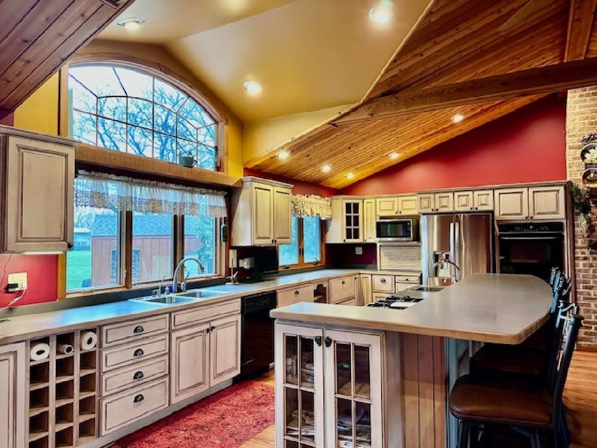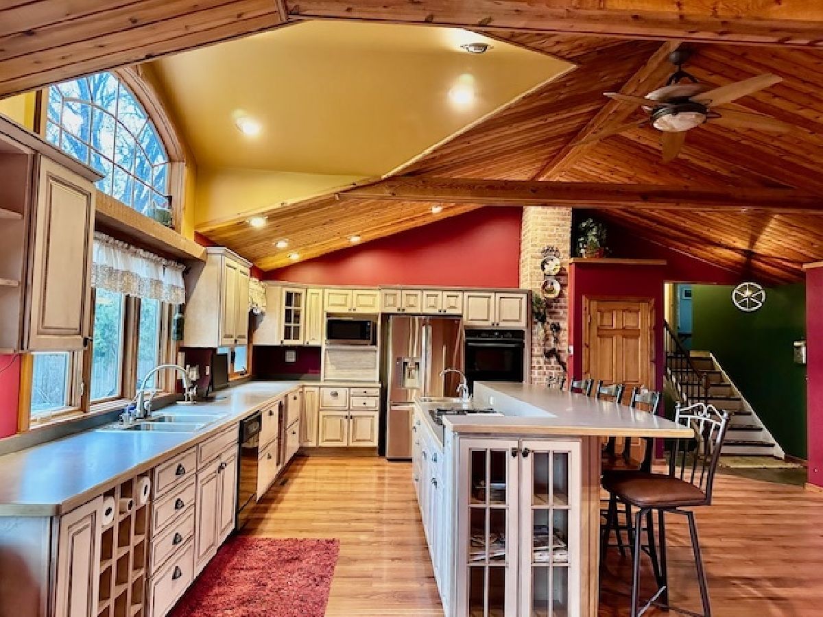 Ever feel like you need to get away to a relaxing sanctuary? Look no further...tucked away in the lovely Subdivision of Fond-Du Lac located in Plainfield, you will find this gem is all that and more. Get ready to enter into this open floor plan home with an abundance of charm. The stunning kitchen with ample storage, SS Fridge, double oven and huge island is perfect for all of your family gatherings while flowing into a good size family room making entertaining intimate and comfy. The massive wood truss beams span the entire main floor giving this space a mountain home vibe atmosphere, complete with the impressive views of the beautifully landscaped yard and pond! Wood floors throughout the first and second levels with beautiful tile on the lower walk out level which accesses your private backyard oasis. Complete with firepit, mini nature paths, 2 tiered deck and jacuzzi just to name a few of the many amenities you will find. The master bedroom includes an on-suite and walk in closet. 2 car attached garage also has a heater. This beautiful home is a must see.