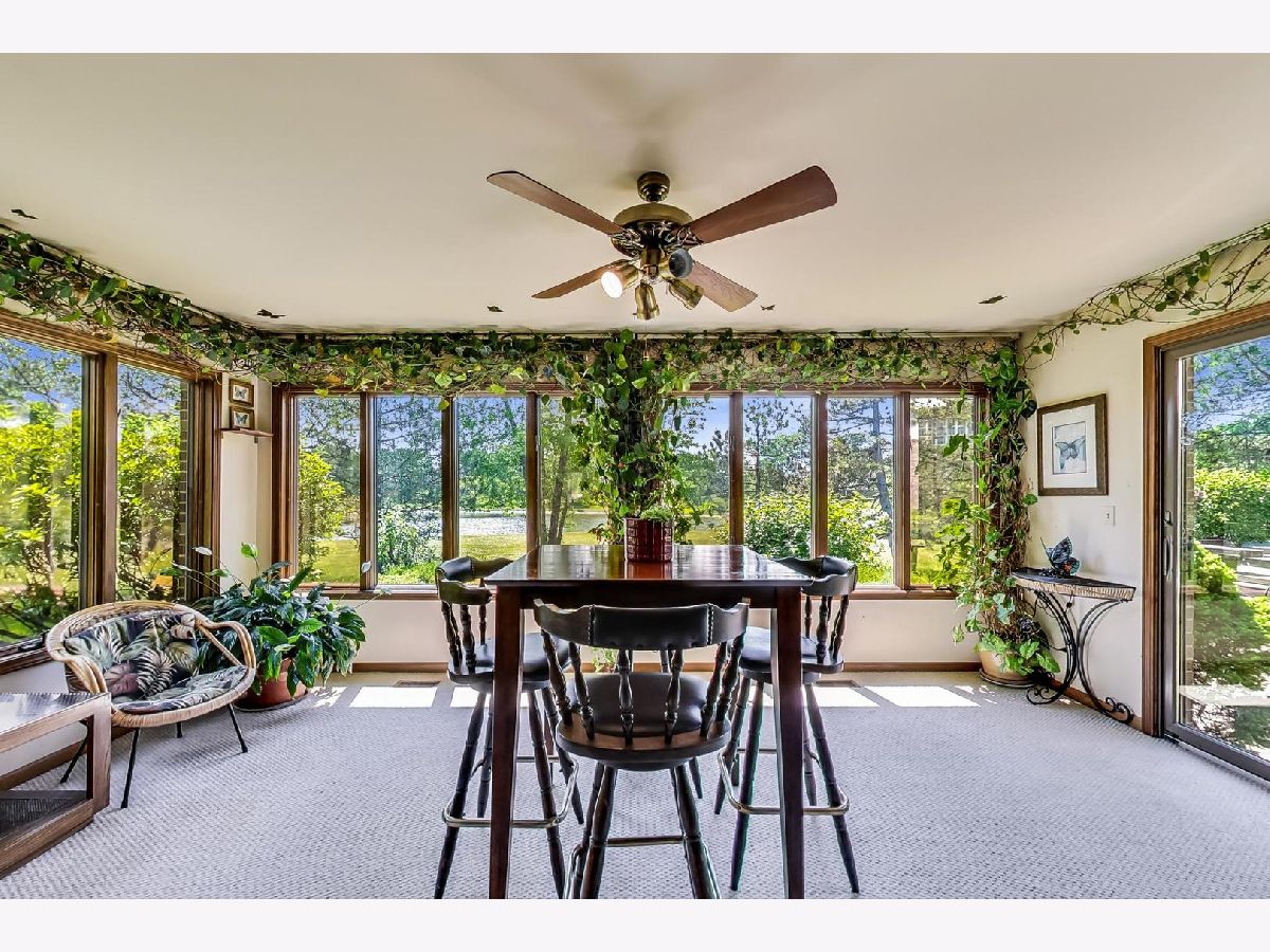 If you're looking for a private office or a first floor in-law suite with amazing lake views this Indian Ridge home is for you. Solid well constructed all brick home. Over 4,000 square feet plus finished basement. Scenic private setting on cul-de-sac on over a third of an acre overlooking lake. Spacious open floor plan - living room with fireplace and floor to ceiling windows, leading to family room with stone fireplace open to kitchen and four seasons room. Kitchen with granite counters, breakfast bar, built-in desk and separate eating area with bay window overlooking patio and lake. Butlers pantry adjacent to formal dining room. Four seasons sun room with windows on three sides and sliders to brick patio and deck with hot tub. First floor powder room and large laundry/mud room off of garage. Three car garage with extra storage area. Upstairs you will find a huge master suite with lake views, sitting room, walk-in closet and spacious bathroom with jacuzzi tub. Three additional bedrooms and full bath. Downstairs you will find a recreation area with pool table, exercise room, large work shop/storage room and half bath. Utility room with zoned heating and cooling (2010). Cedar roof replaced 2013. Close to Indian Ridge park with tennis and basketball courts. Adjacent to large common grassy areas all professionally maintained by Indian Ridge Association. Yard can be fenced. Easy access to 294. Close to O'hare. Great space with beautiful views.
