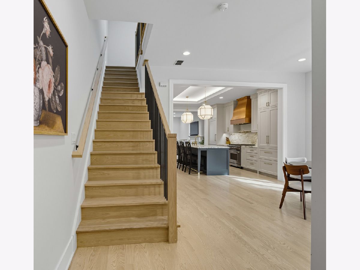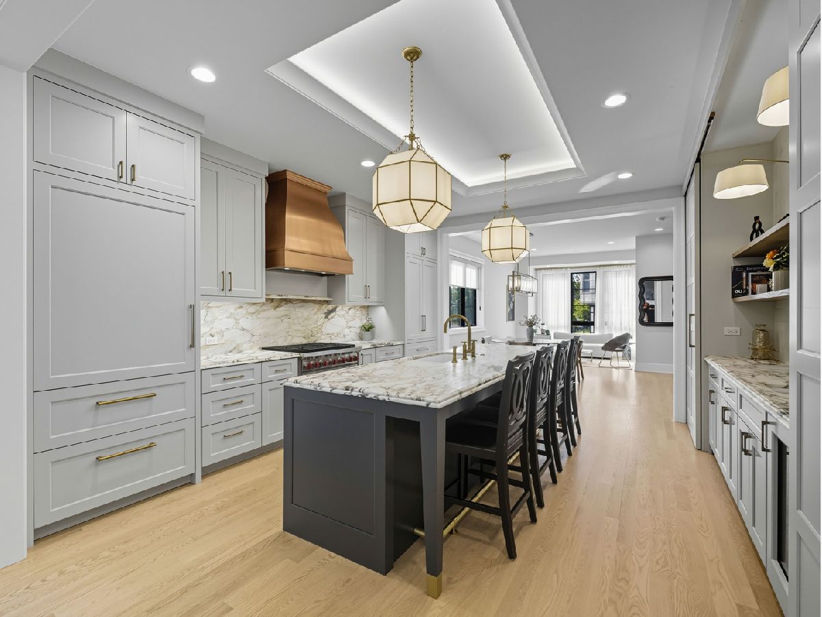 RARE opportunity to own one of the newest construction single family homes in Logan Square, built by sought-after V&M Development and Studio Group! Just completed in Fall 2024, our client's job relocation is creating the opportunity to acquire a home that's better than new! Built by extremely reputable developers who are known for their high quality construction and detailed design, this home has the added benefit of luxury upgrades above and beyond V&M's stellar finishes. Situated on a corner lot, the home's layout is ideal, with an open concept main floor offering multiple living spaces that flow together seamlessly. The kitchen is the heart of the main floor with a stunning centerpiece 10-foot island upgraded with custom marble countertops and featuring custom Amish cabinets. Another focal point is the show-shopping custom copper range hood above the 36" Wolf range with an extensive matching marble backsplash. Enjoy the luxury of a Sub Zero refrigerator/freezer, opposite a picturesque wet bar set with open shelving and a huge walk-in pantry. The large rear family room has wonderful natural light and a quartz fireplace surround as the focal point. A stylish powder room is tucked around the corner for privacy. The back of the home is comprised of a window-filled wall and a mud room conveniently built out with a bench, hooks, and storage as you step right out into the grassy back yard. In addition to the private rear yard, the 2-car garage also has a beautiful roof deck with composite decking. Upstairs, the second floor is bright and airy with skylights and large windows throughout. The large primary suite features a second fireplace and vaulted ceilings, as well as a spacious and customized walk-in closet, and a luxurious bathroom including a steam shower, stand-alone soaking tub, heated floors, and dual vanities. Two additional bedrooms share a jack-n-jill bathroom and a laundry room completes the upper level. The upgraded lower level includes two additional bedrooms, versatile for WFH, fitness and guests, as well as a full bathroom and upgraded media room that offers an elegant wet bar with an additional Sub-Zero refrigerator and freezer, wallpaper backsplash, open shelving and gorgeous sconces plus additional storage areas. The home is energy-efficient throughout the year, with hot water radiant heated floors on the lower level and two high efficiency furnaces. This south and west facing home receives incredible natural light all day, and enjoys beautiful tree-filled sight lines from the oversized windows on three sides of the home. With one of the best locations in all of Logan Square, this home is truly a rare and exceptional opportunity.