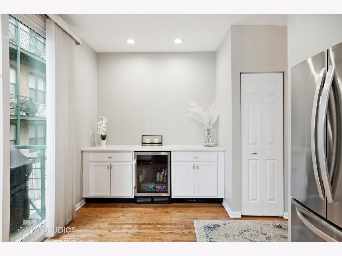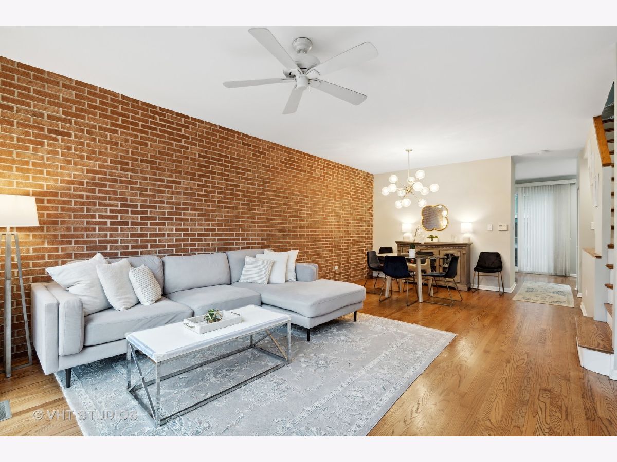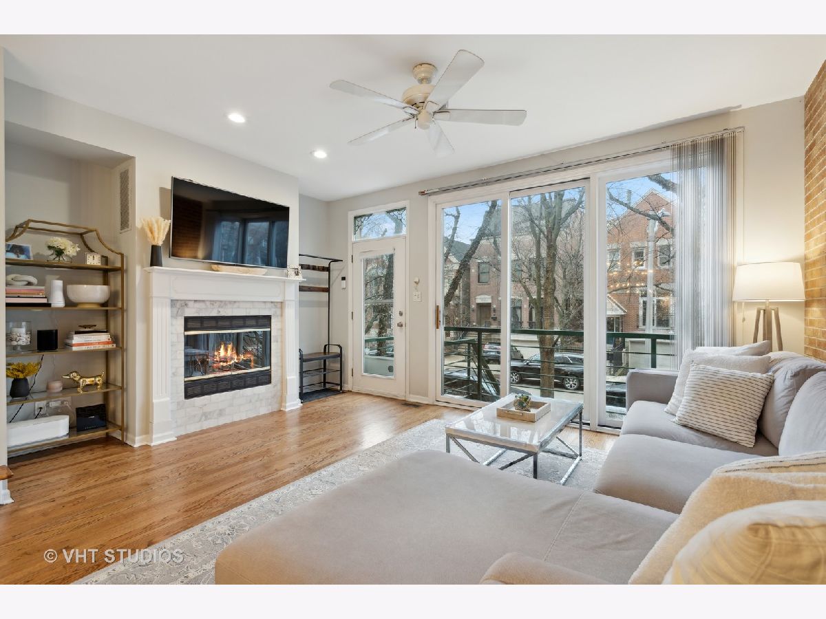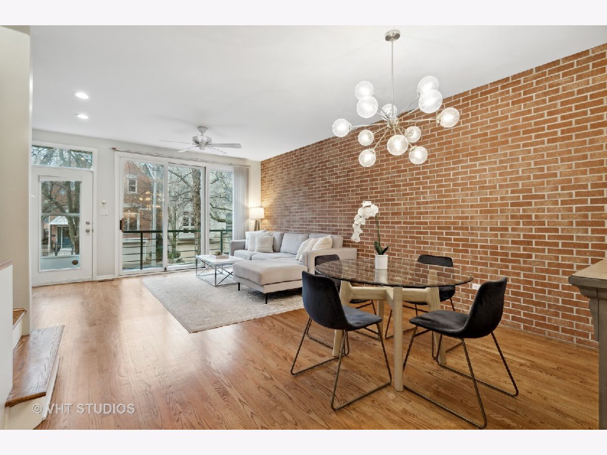 This beautifully updated fee-simple (NO HOA) townhouse with 2 beds/2.1 baths plus family room/office is located on a quiet, tree-lined cul-de-sac and next to Wrightwood Park. The main level living and dining room has a fabulous exposed brick wall, tons of natural light, hardwood floors and fireplace with updated surround and tile. The fabulous eat-in kitchen has all updated stainless steel appliances in 2020 - fridge, oven, dishwasher, beverage fridge - new backsplash, new quartz countertops and new sink and faucet. Also added in 2020 is the dry bar, giving you even more cabinet and countertop storage. This kitchen is great space for entertaining, with the sliding glass doors leading to the private balcony equipped with water, electricity, and gas-line for tankless grill! The garden level offers the attached 2 car garage with deep storage, new washer and dryer (2020), an office/possible 3rd bedroom with new LVP flooring (2020), updated powder room (2020) - new toilet, light fixture, mirror and wallpaper - plus, sliding doors leading to your private patio with brick pavers. The top level features 2 spacious bedrooms - the primary bedroom has a private, attached bathroom and wall of closets. The hall bathroom was updated in 2020 with new tile floor, shower tile, toilet, vanity and faucet, and light fixtures. And lastly, continue up to the rooftop deck! New A/C unit in 2020. Ask for complete list of improvements! Great quiet Lincoln Park location, walkable to restaurants, coffee, parks and more!