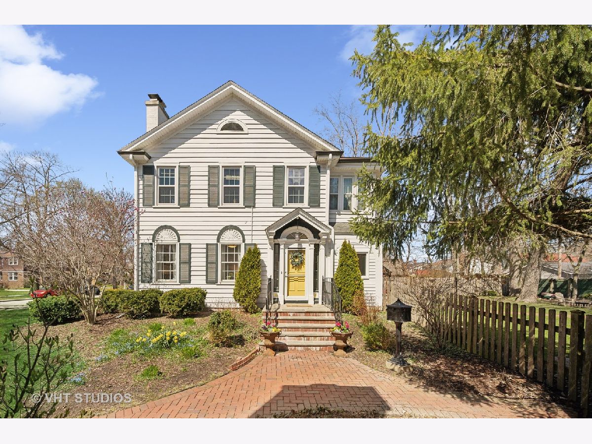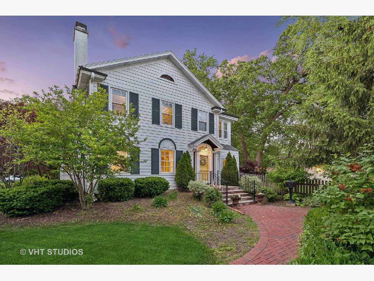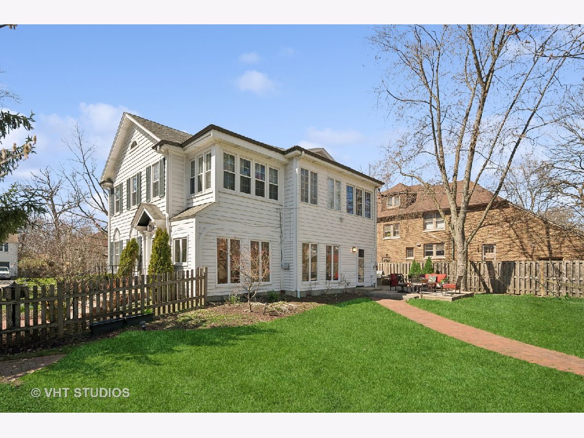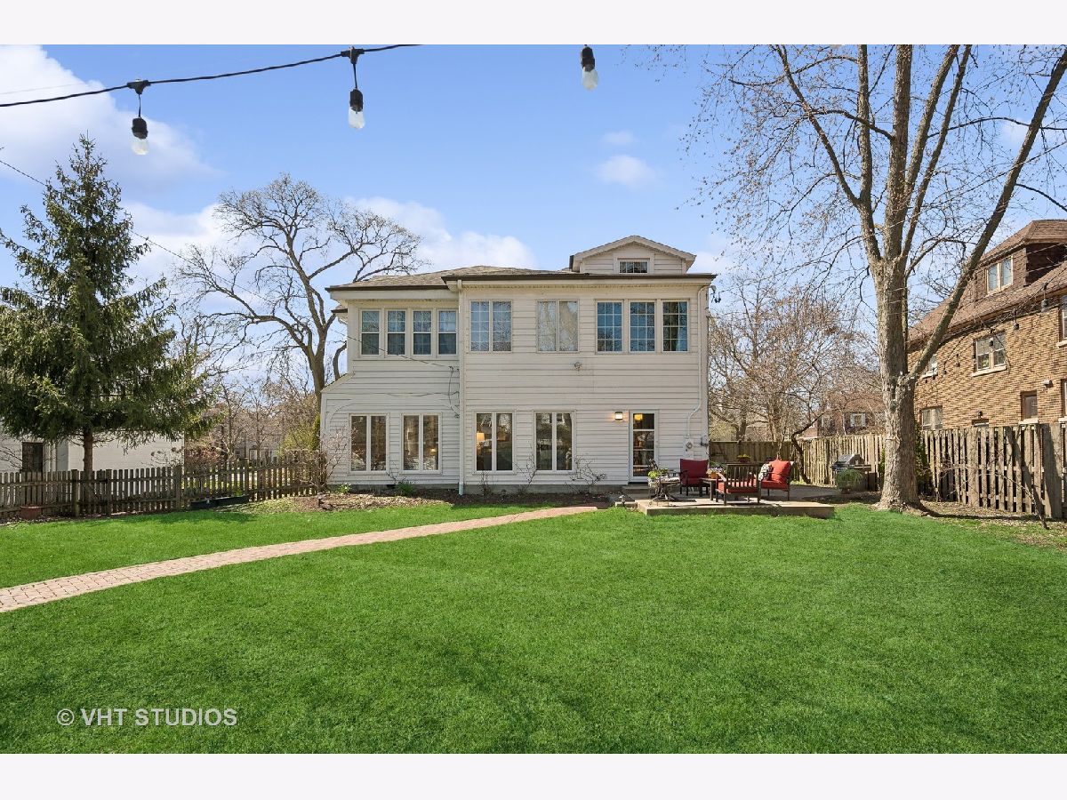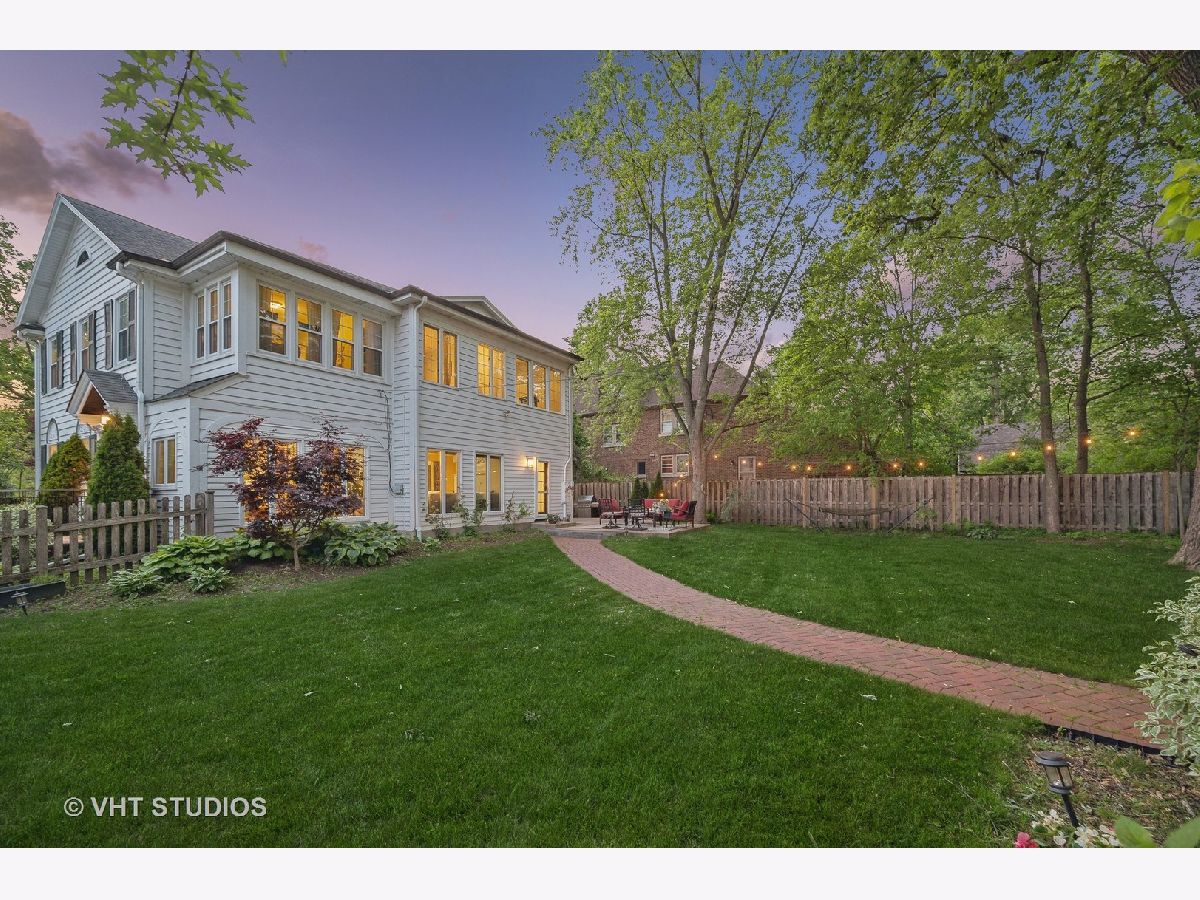 This is the home you have been waiting for - a classic, renovated 5 bedroom, 3 1/2 bath colonial set on a wide lot with a fenced, large quiet backyard and 2 1/2 car garage on a premier block surrounded by lovely homes and parks. A serene color palette, pristine white moldings, woodwork, pretty arches and hardwood floors throughout will make you feel right at home. Full of character and charm, this home has a circular first floor plan conducive to large family gatherings and entertaining. The entry opens to a large sun-filled living room with stately wood burning fireplace, mantel and built-in bookshelves. Adjacent sunroom overlooks the yard and gets east and south light. Cozy step- down family room feeds into the breakfast room and opens to the gorgeous kitchen with white cabinets, granite counters, subway tile backsplash and herringbone pattern above the Wolf range with vented hood, stainless appliances and window over the sink complete this very functional space. The gracious dining room can be the next setting for your Thanksgiving dinner with the west-facing paned bow window overlooking the front yard. The second floor boasts four bedrooms plus an exercise room, laundry and two full baths. The spacious primary suite has abundant closet space and bath with walk-in shower, glass door, double vanity and loads of storage. The pretty staircase continues to the third floor which includes the fifth bedroom and full bath with bath tub. Convenient walk-in attic for all the family treasures! Enjoy the backyard and outdoor space with the L shaped patio that can be accessed by the back and side door for ease of entertaining. The coveted mudroom with built-in bench and shelves is conveniently located inside the back door. Unfinished basement with mechanicals and more storage. Easy walk to Bent Park, Willard Elementary and Central Street. Quick commute to Chicago by train or Edens expressway.