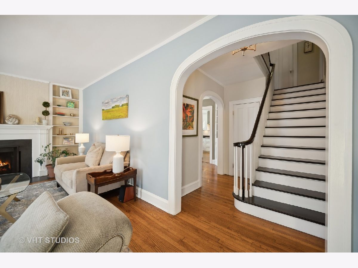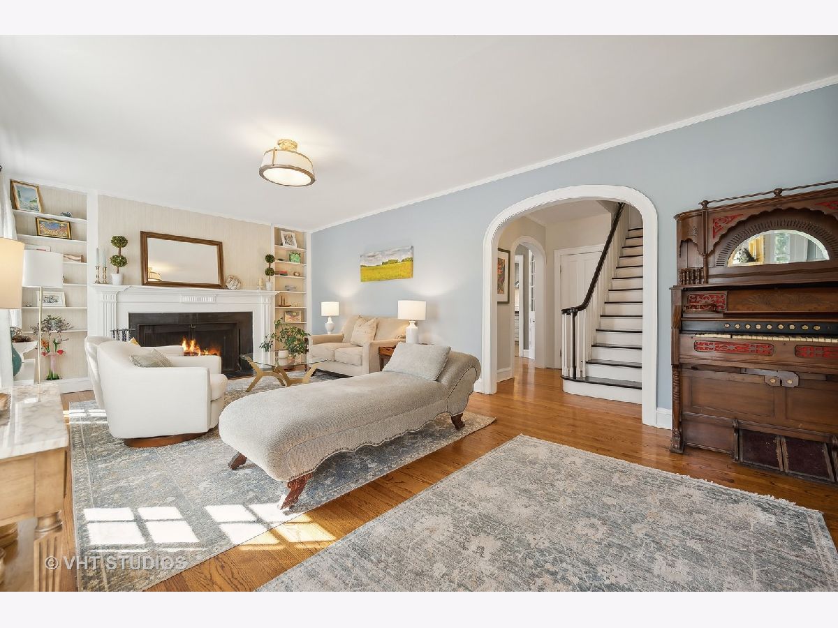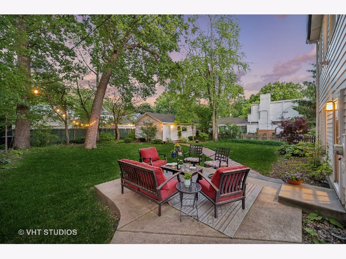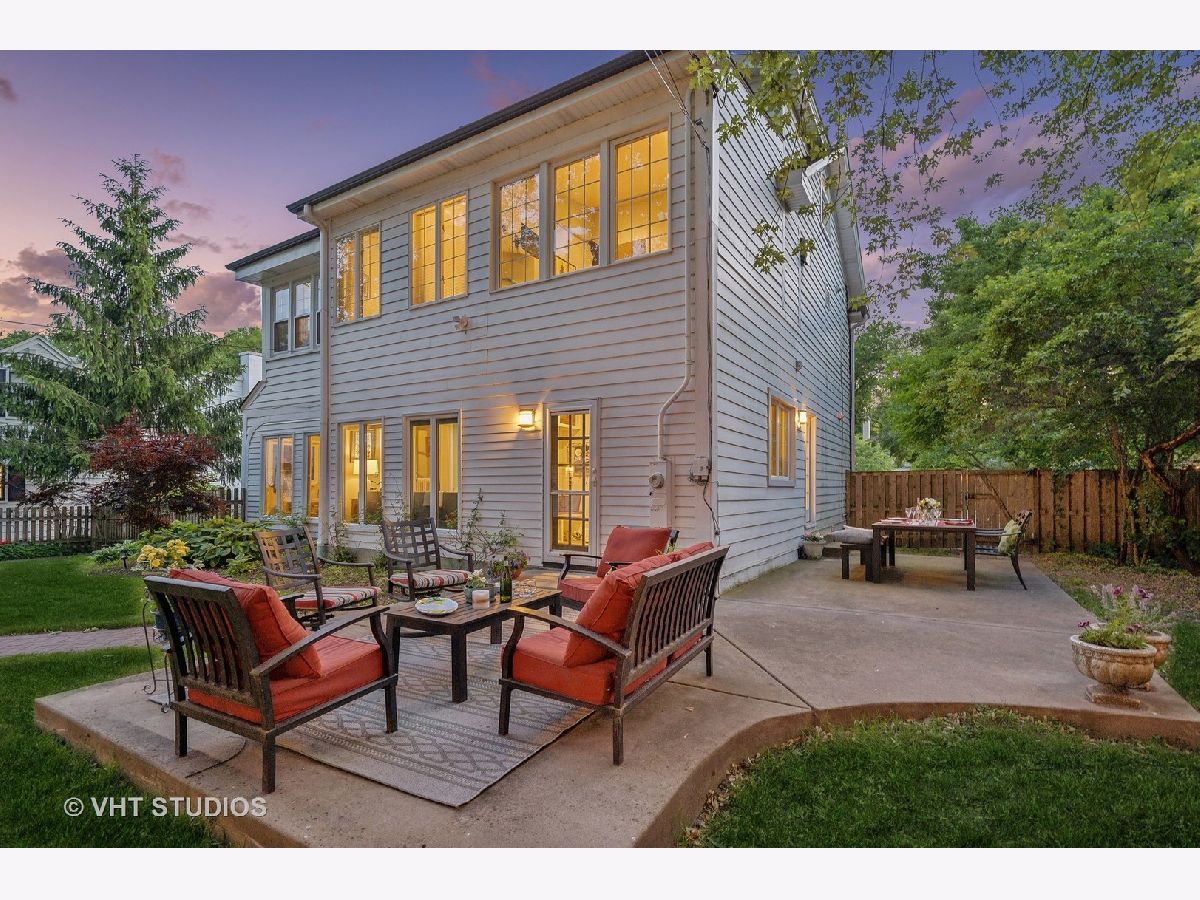 This is the home you have been waiting for - a classic, renovated 5 bedroom, 3 1/2 bath colonial set on a wide lot with a fenced, large quiet backyard and 2 1/2 car garage on a premier block surrounded by lovely homes and parks. A serene color palette, pristine white moldings, woodwork, pretty arches and hardwood floors throughout will make you feel right at home. Full of character and charm, this home has a circular first floor plan conducive to large family gatherings and entertaining. The entry opens to a large sun-filled living room with stately wood burning fireplace, mantel and built-in bookshelves. Adjacent sunroom overlooks the yard and gets east and south light. Cozy step- down family room feeds into the breakfast room and opens to the gorgeous kitchen with white cabinets, granite counters, subway tile backsplash and herringbone pattern above the Wolf range with vented hood, stainless appliances and window over the sink complete this very functional space. The gracious dining room can be the next setting for your Thanksgiving dinner with the west-facing paned bow window overlooking the front yard. The second floor boasts four bedrooms plus an exercise room, laundry and two full baths. The spacious primary suite has abundant closet space and bath with walk-in shower, glass door, double vanity and loads of storage. The pretty staircase continues to the third floor which includes the fifth bedroom and full bath with bath tub. Convenient walk-in attic for all the family treasures! Enjoy the backyard and outdoor space with the L shaped patio that can be accessed by the back and side door for ease of entertaining. The coveted mudroom with built-in bench and shelves is conveniently located inside the back door. Unfinished basement with mechanicals and more storage. Easy walk to Bent Park, Willard Elementary and Central Street. Quick commute to Chicago by train or Edens expressway.