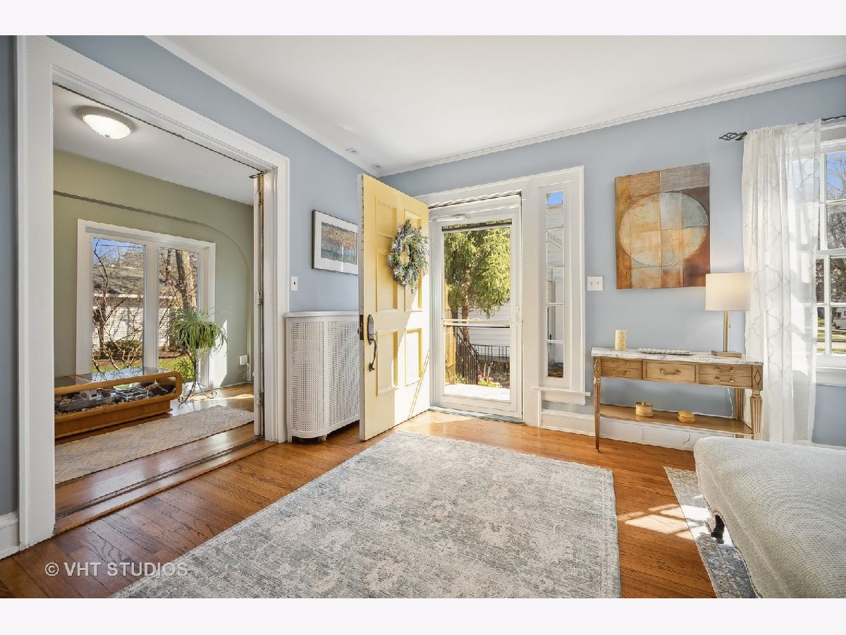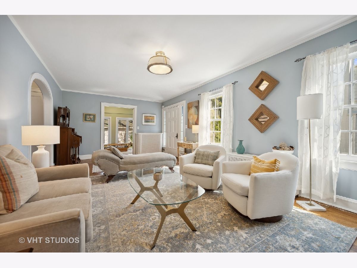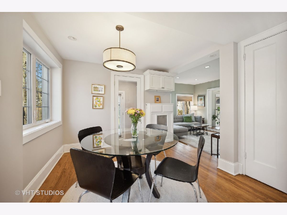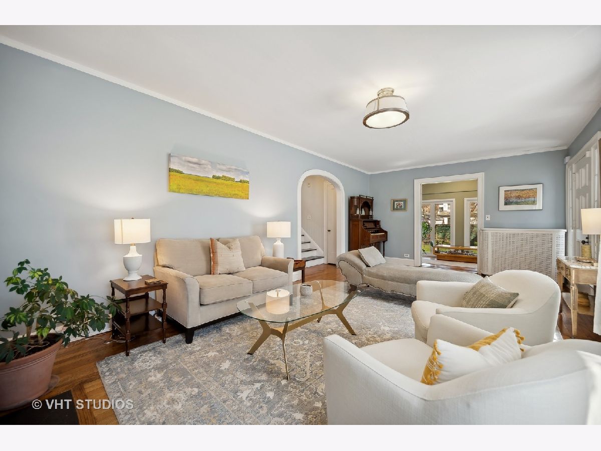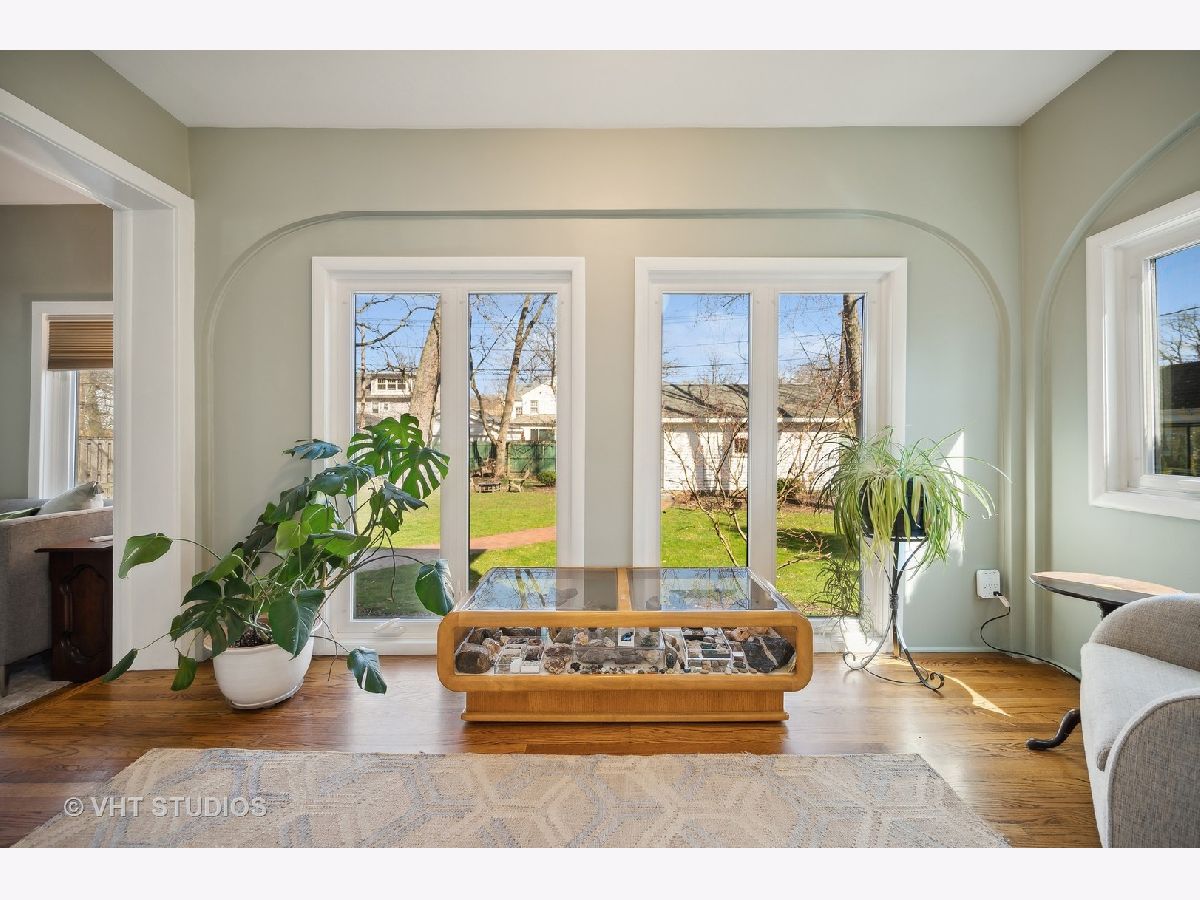 This is the home you have been waiting for - a classic, renovated 5 bedroom, 3 1/2 bath colonial set on a wide lot with a fenced, large quiet backyard and 2 1/2 car garage on a premier block surrounded by lovely homes and parks. A serene color palette, pristine white moldings, woodwork, pretty arches and hardwood floors throughout will make you feel right at home. Full of character and charm, this home has a circular first floor plan conducive to large family gatherings and entertaining. The entry opens to a large sun-filled living room with stately wood burning fireplace, mantel and built-in bookshelves. Adjacent sunroom overlooks the yard and gets east and south light. Cozy step- down family room feeds into the breakfast room and opens to the gorgeous kitchen with white cabinets, granite counters, subway tile backsplash and herringbone pattern above the Wolf range with vented hood, stainless appliances and window over the sink complete this very functional space. The gracious dining room can be the next setting for your Thanksgiving dinner with the west-facing paned bow window overlooking the front yard. The second floor boasts four bedrooms plus an exercise room, laundry and two full baths. The spacious primary suite has abundant closet space and bath with walk-in shower, glass door, double vanity and loads of storage. The pretty staircase continues to the third floor which includes the fifth bedroom and full bath with bath tub. Convenient walk-in attic for all the family treasures! Enjoy the backyard and outdoor space with the L shaped patio that can be accessed by the back and side door for ease of entertaining. The coveted mudroom with built-in bench and shelves is conveniently located inside the back door. Unfinished basement with mechanicals and more storage. Easy walk to Bent Park, Willard Elementary and Central Street. Quick commute to Chicago by train or Edens expressway.