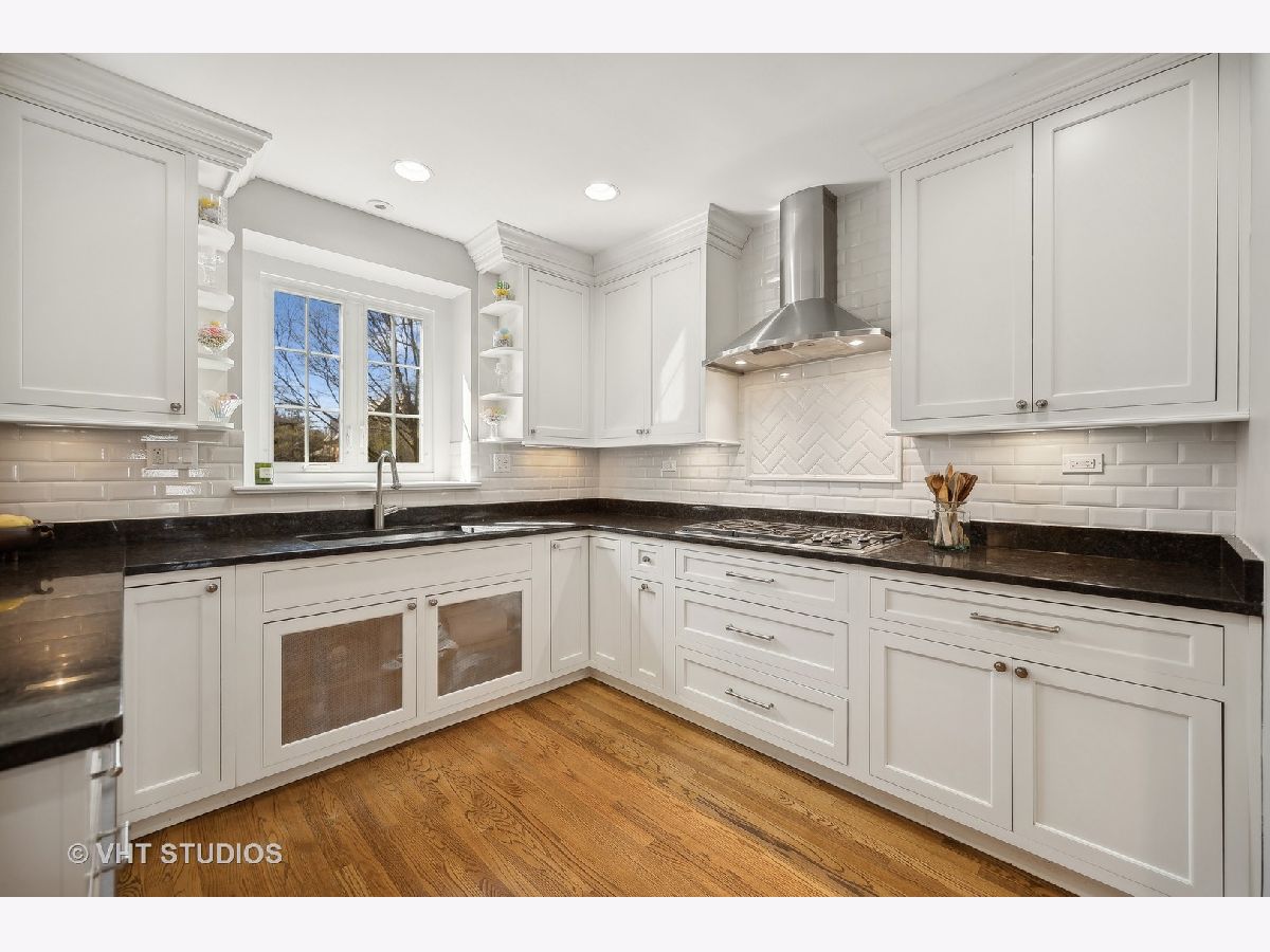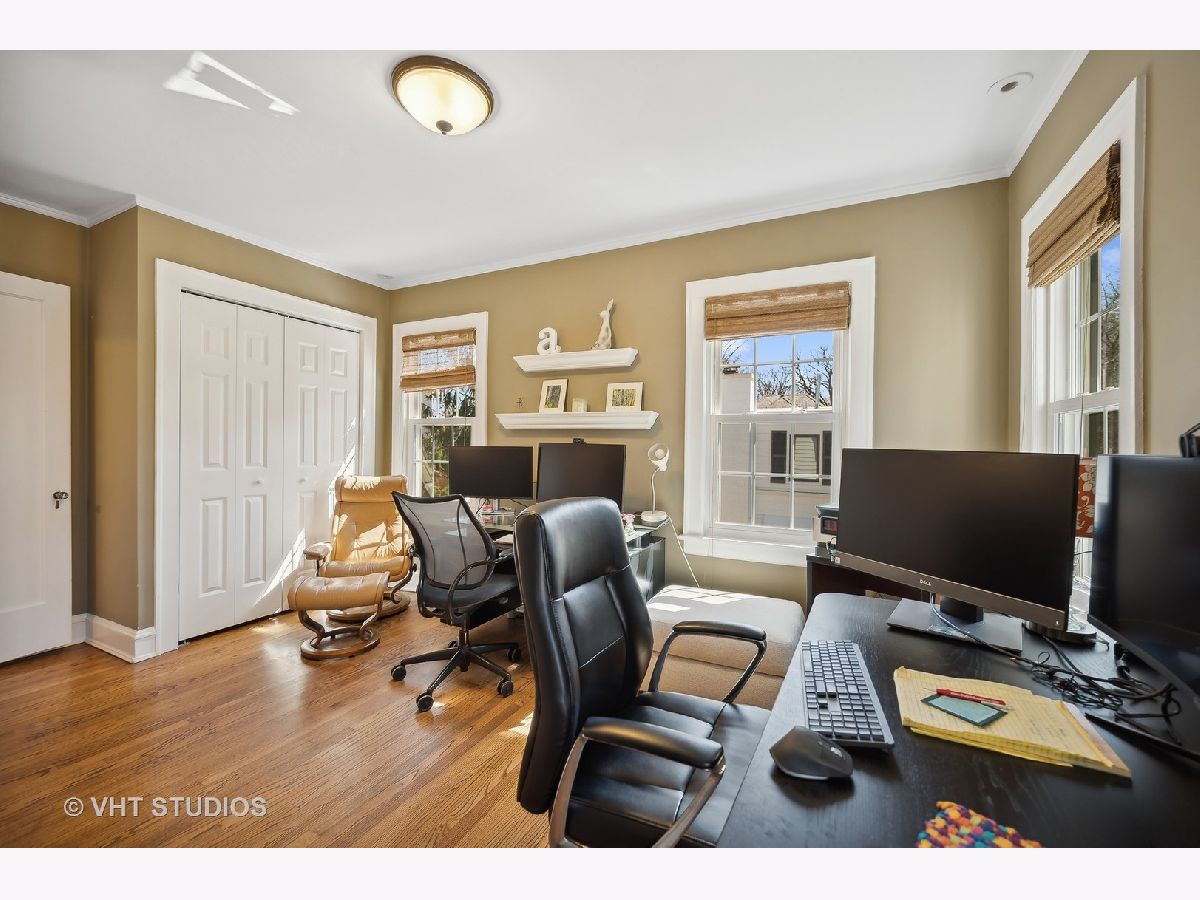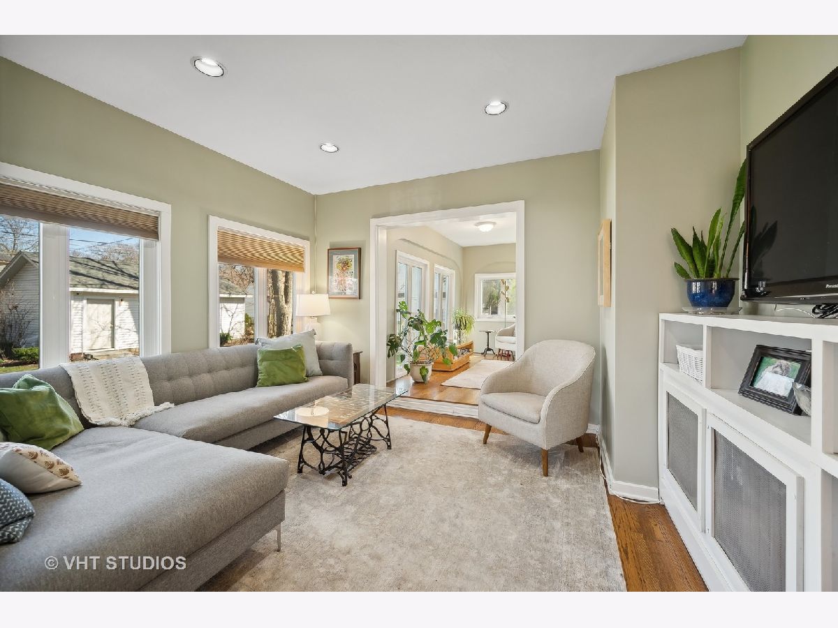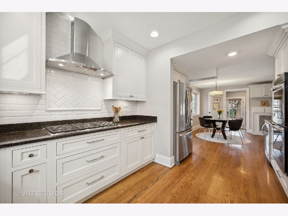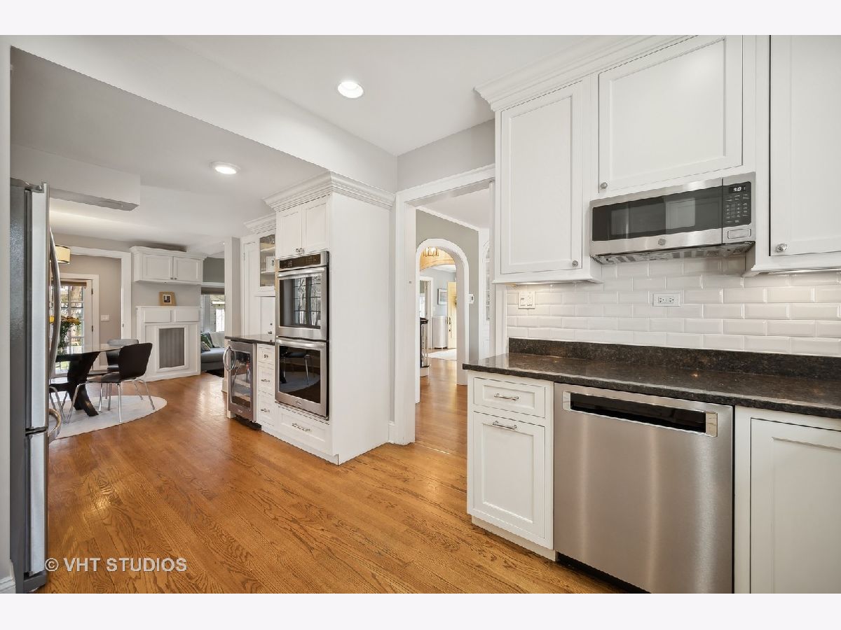 This is the home you have been waiting for - a classic, renovated 5 bedroom, 3 1/2 bath colonial set on a wide lot with a fenced, large quiet backyard and 2 1/2 car garage on a premier block surrounded by lovely homes and parks. A serene color palette, pristine white moldings, woodwork, pretty arches and hardwood floors throughout will make you feel right at home. Full of character and charm, this home has a circular first floor plan conducive to large family gatherings and entertaining. The entry opens to a large sun-filled living room with stately wood burning fireplace, mantel and built-in bookshelves. Adjacent sunroom overlooks the yard and gets east and south light. Cozy step- down family room feeds into the breakfast room and opens to the gorgeous kitchen with white cabinets, granite counters, subway tile backsplash and herringbone pattern above the Wolf range with vented hood, stainless appliances and window over the sink complete this very functional space. The gracious dining room can be the next setting for your Thanksgiving dinner with the west-facing paned bow window overlooking the front yard. The second floor boasts four bedrooms plus an exercise room, laundry and two full baths. The spacious primary suite has abundant closet space and bath with walk-in shower, glass door, double vanity and loads of storage. The pretty staircase continues to the third floor which includes the fifth bedroom and full bath with bath tub. Convenient walk-in attic for all the family treasures! Enjoy the backyard and outdoor space with the L shaped patio that can be accessed by the back and side door for ease of entertaining. The coveted mudroom with built-in bench and shelves is conveniently located inside the back door. Unfinished basement with mechanicals and more storage. Easy walk to Bent Park, Willard Elementary and Central Street. Quick commute to Chicago by train or Edens expressway.