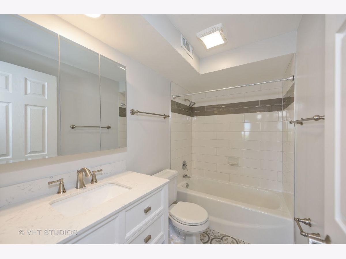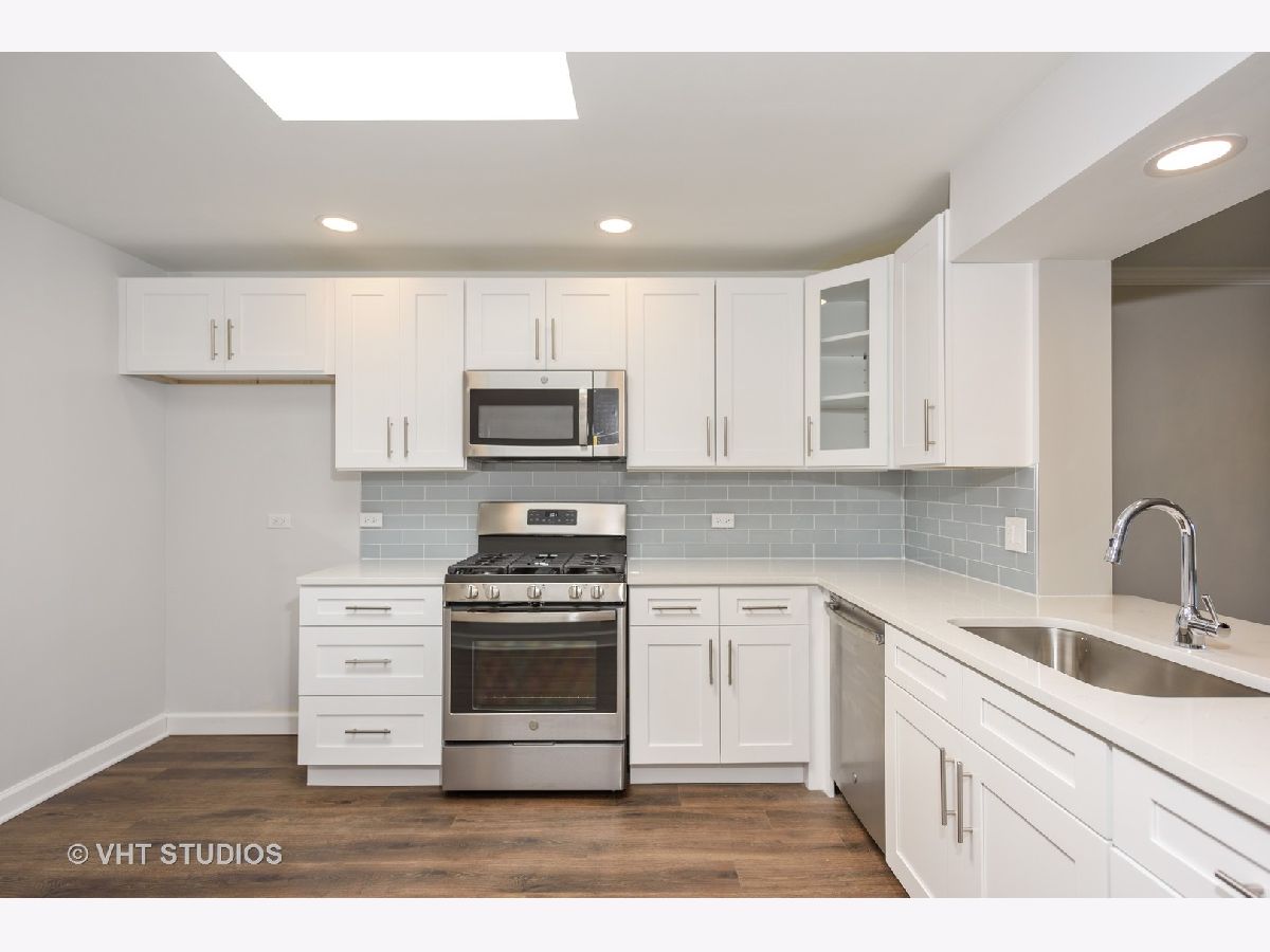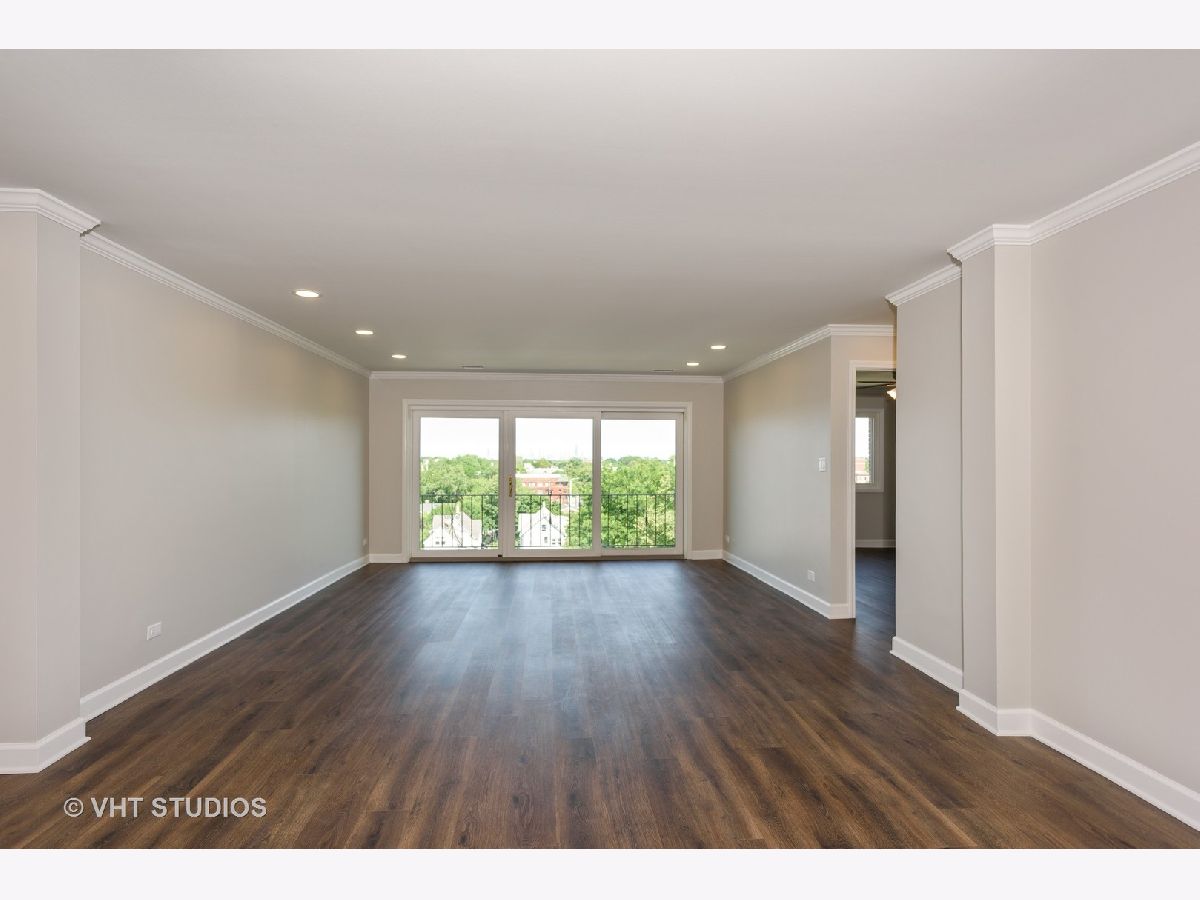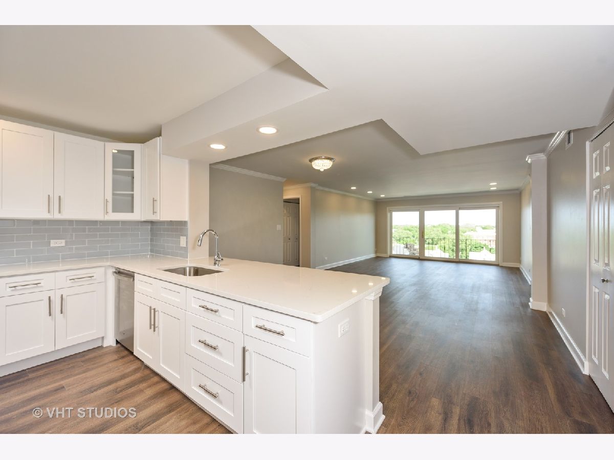 " TOTALLY REDONE" W/PERMITS ! 2bed/2bath top floor.All new kitchen opened up giving you view of Downtown Chicago. Along with SS appliances and Quartz CT. Split bedroom layout each with new baths, tons of closet space.All new floors throughout along with light fixtures and reassessed lighting. This unit is located on top floor facing East towards Downtown Chicago enjoyed on your own balcony. Elevator building and includes 2 parking spots, 1 garage and 1 assigned exterior space. Laundry and storage in building. ''GREAT LOCATION" walk to restaurants and shopping. Note: New fridge 6/25 delivery...