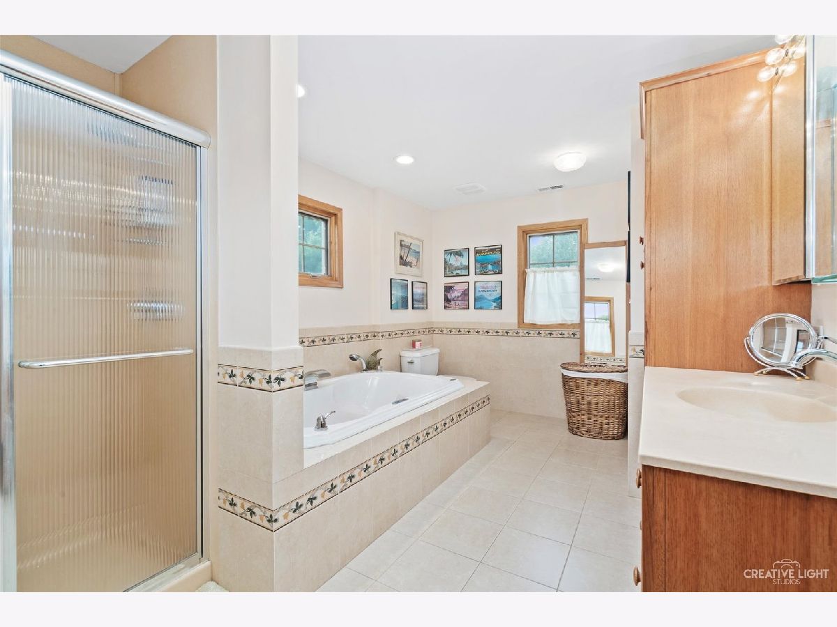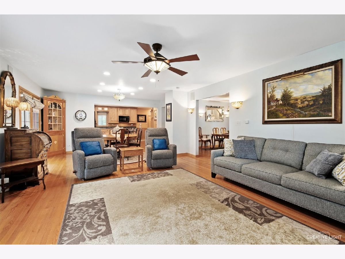 Don't pass up a chance to own this gorgeous home in award-winning Mount Prospect school district! Step inside to see this gorgeous four bedroom spacious home with finished basement! Gorgeous kitchen featuring 7x3' island with seating, beautiful, tall cabinetry, premium granite, and TONS of extra panty/storage space. New refrigerator, new microwave, Bosch dishwasher and two built in 30" self cleaning ovens! Solid wood flooring throughout the main level, open concept into separate eating area and cozy family room with abundant natural light! Owners suite features walk in master closet with two additional closets, heated bathroom tile floor, 6ft heated jacuzzi tub, and porcelain gas fired stove. Finished basement features large oak bar perfect for entertaining. Garage doors and interior have recently been painted and floor has had professional epoxy application. Two zones of heat and air conditioning with new AC and furnace for first floor in 2022. Attic features blown in insulation with 2 solar powered thermostatic vents. Electrolux washing machine and Speed Queen dryer. Relax in the fully fenced backyard surrounded by large evergreen trees for privacy.