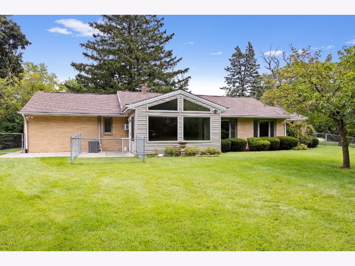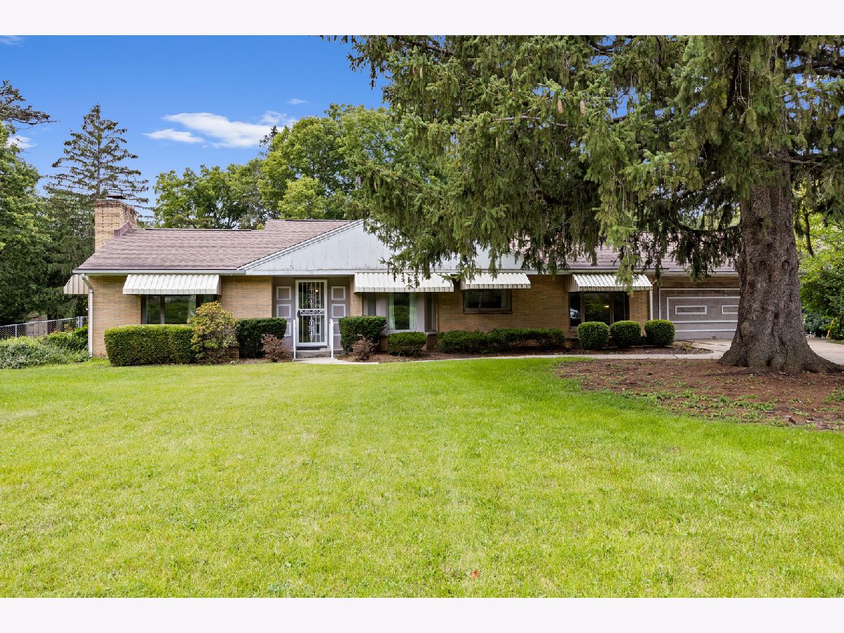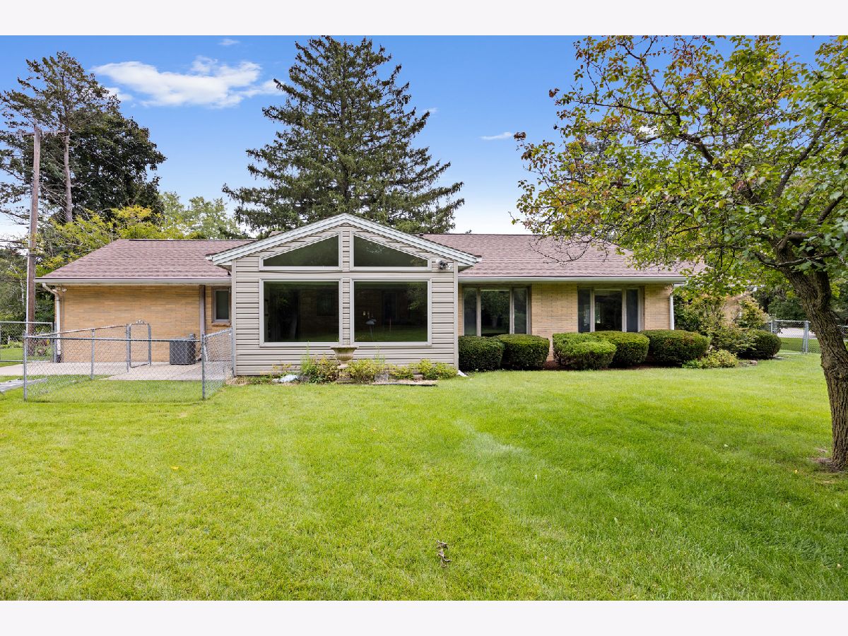 The setting of this mid-century home is phenomenal! Nearly an acre (.83) with a fenced backyard. This sprawling ranch is a glorious throwback! The massive sunken living room with fireplace is loaded with light and an ideal focal point, open to the foyer and formal dining room as the central living area of the home. The eat-in kitchen with built-ins overlooks the front of the property, a central hallway takes you to 2 bedrooms, a main bath, and the garage entry laundry / utility area which also connects you to the large family room / sunroom addition at the back of this ranch home. A second bathroom and storage closet are encompassed in the garage which is a small 2 car with a new insulated overhead door being installed by Cropp of Roscoe soon. No basement, this ranch is a slab built home. Much original with some deferred maintenance, to be sold as-is.