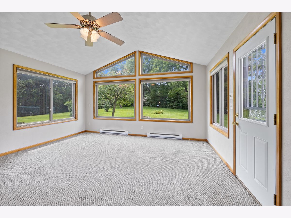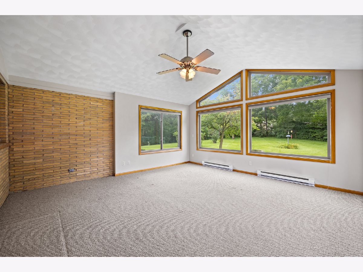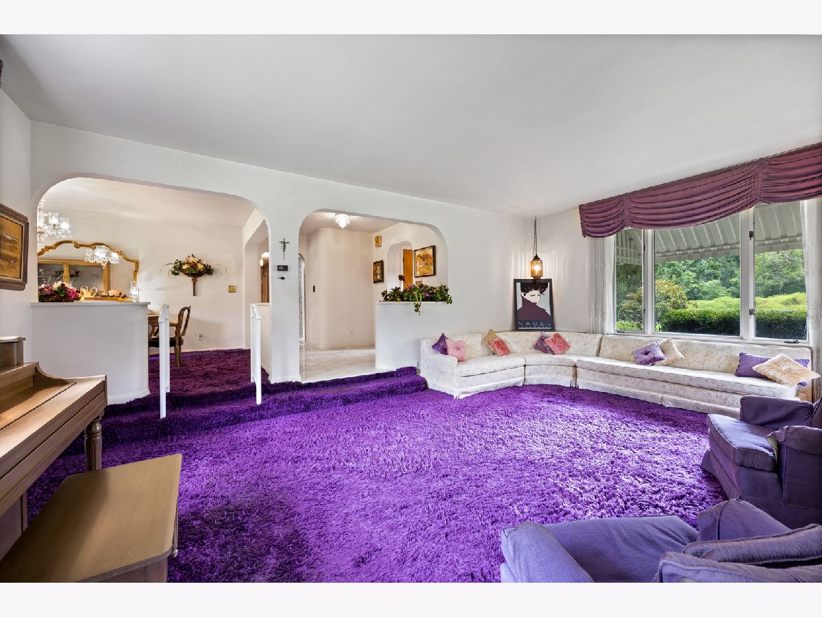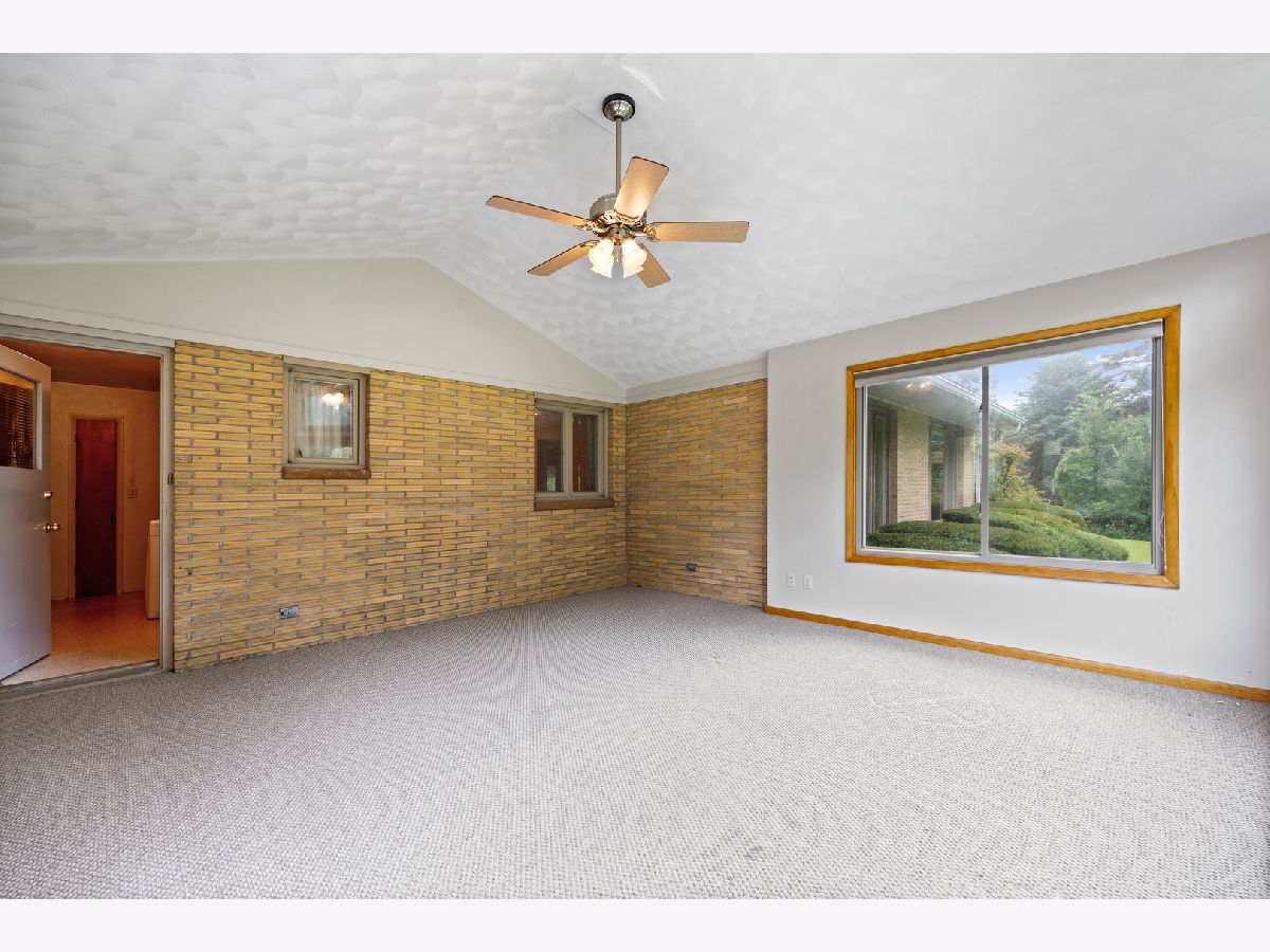 The setting of this mid-century home is phenomenal! Nearly an acre (.83) with a fenced backyard. This sprawling ranch is a glorious throwback! The massive sunken living room with fireplace is loaded with light and an ideal focal point, open to the foyer and formal dining room as the central living area of the home. The eat-in kitchen with built-ins overlooks the front of the property, a central hallway takes you to 2 bedrooms, a main bath, and the garage entry laundry / utility area which also connects you to the large family room / sunroom addition at the back of this ranch home. A second bathroom and storage closet are encompassed in the garage which is a small 2 car with a new insulated overhead door being installed by Cropp of Roscoe soon. No basement, this ranch is a slab built home. Much original with some deferred maintenance, to be sold as-is.