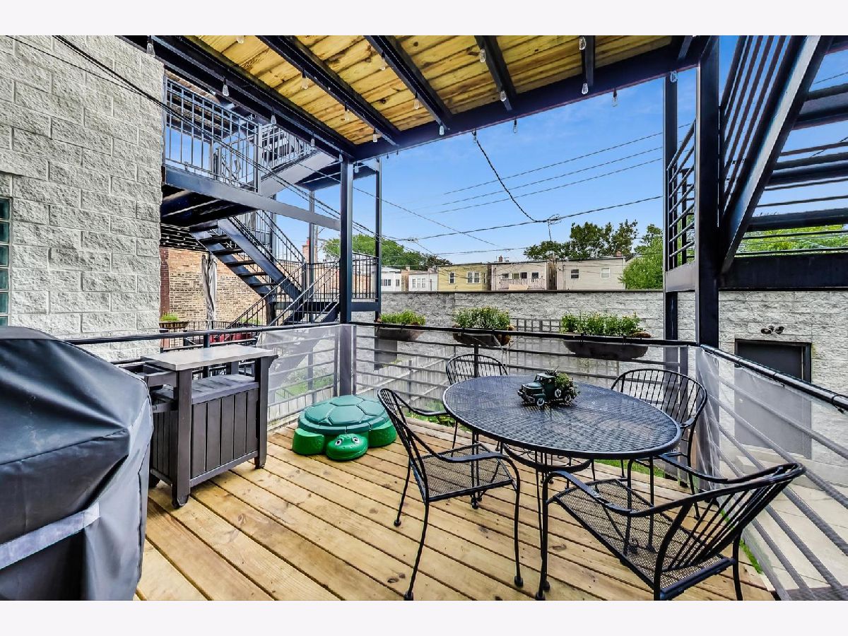This natural light filled duplex down lives with the ease of a single family home, provides an expansive lower level family room, large rear deck, shared yard, & garage parking. The chef's kitchen provides stainless steel appliances and a large center island with breakfast bar seating which flows along with the beautiful hardwood floors to the dining area, into the airy living room, and out thru the sliding door to the Juliet balcony - perfect for entertaining. The spacious primary bedroom enjoys access to the deck thru a single French door and is complete with a renovated, luxurious Carrara marble bath delivering dual vanities, separate shower and a jetted, deep, soaking tub. The lower level boasts an expansive family room which enjoys a gas fireplace, along with the large third bedroom, bath, & laundry room. The spacious rear deck is also accessible thru the hall, preserving primary bedroom privacy, and enjoys access to a gas line for an easy grilling set up. Ample storage & custom closet shelving. Full-home water filtration system & at-sink reverse osmosis faucet. Wifi thermostat. The shared yard adds to the outdoor enjoyment. Garage parking included, as well as the option for easy street parking. Great location. Proximity to Highway 90 / 94 Kennedy Expressway, Western Ave Metra Train Station, CTA buses. Access to natural and green spaces: near beloved Smith Park with its sports fields, playground, pool, & farmer's market. Enjoy neighborhood favorites: Boeufhaus, Salsa Picante, Takorea Cocina, Kai Zan Sushi, Papa's Cache Sabroso, Shokolad, & Star Lounge Coffee Bar. Pet Friendly. Must See.