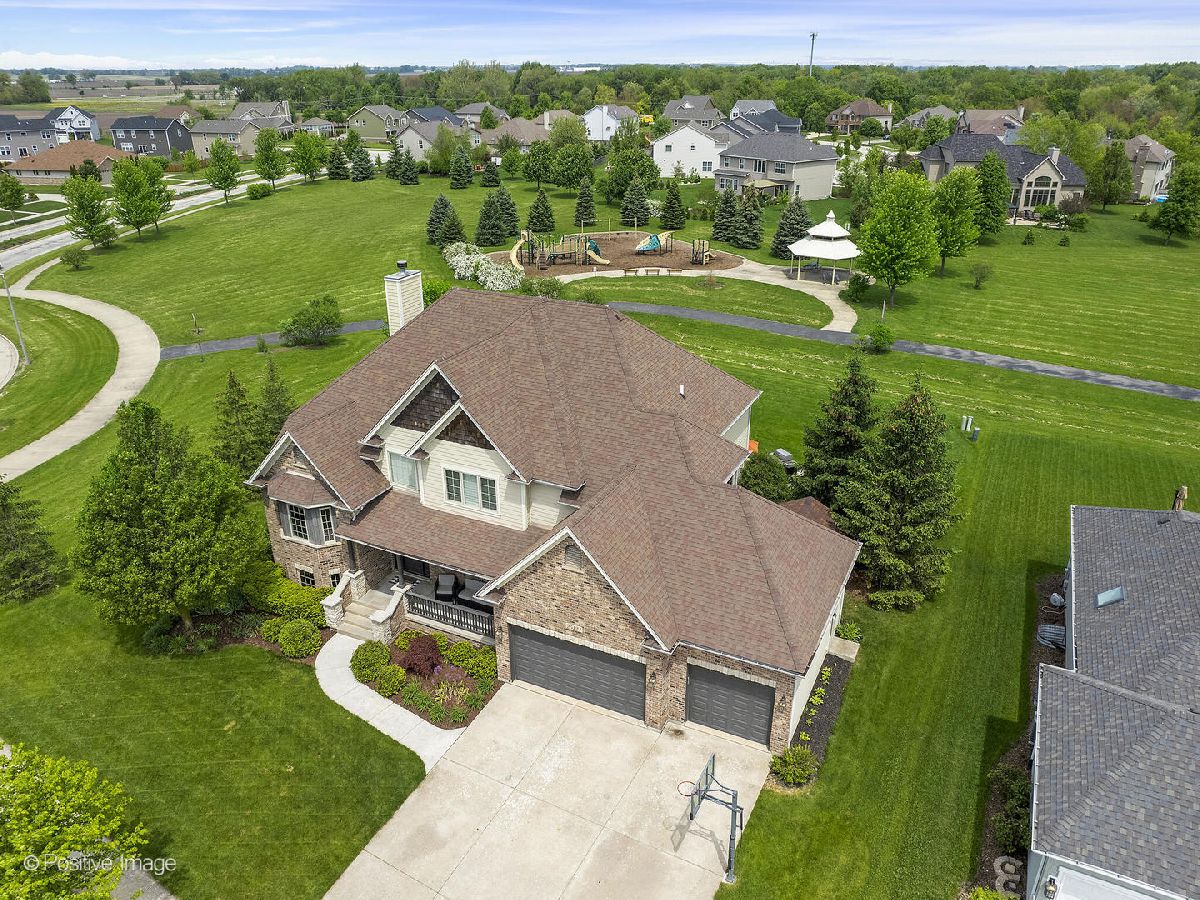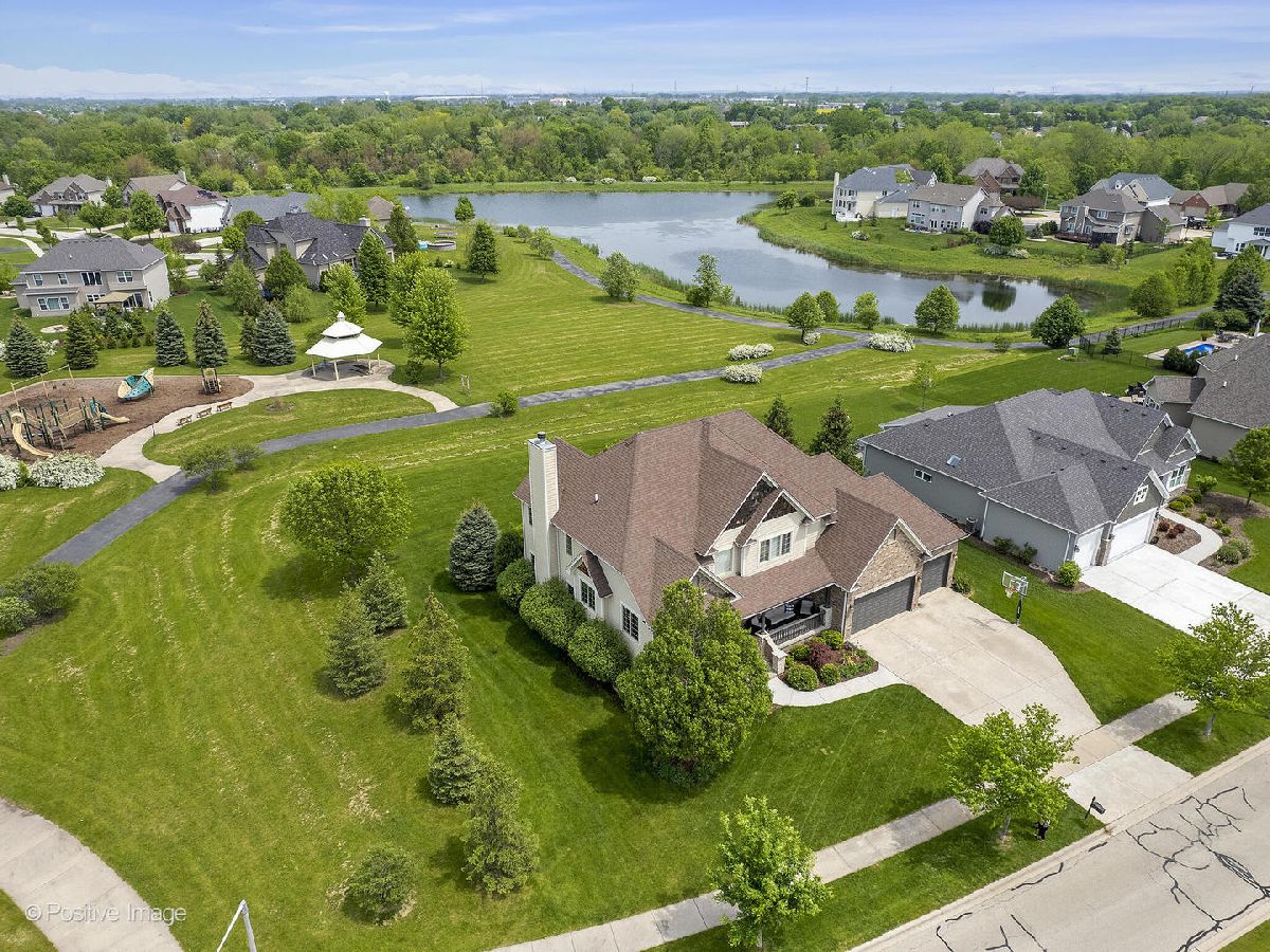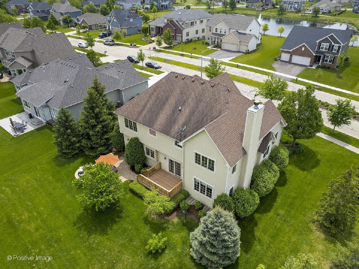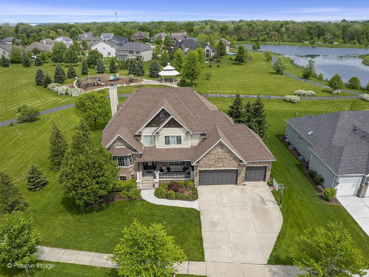 Better than new construction. This luxury custom home offers 5-6 bedrooms, 4 1/2 baths, 5,000 sqft total finished living space, 3 car garage on premium private lot in desirable Creekside Crossing. WATER VIEWS FROM ALL BEDROOMS. Inviting front porch with brick front. Large foyer entrance with 2 story open concept & hardwood flowing into the dining room and kitchen. Separate dining room with wainscoting, detailed ceiling with crown molding flows into Gourmet kitchen with huge island, granite, stainless steel appliances (new dishwasher), large walk-in pantry, Butler's pantry with wine refrigerator, eating area opens to step-down family room with cozy gas fireplace with brick mantle & ceiling fan. Pella sliding door leads from kitchen to trex deck. Half bath with granite vanity. Laundry room with Samsung front load washer/dryer, utility sink & mud room with custom built-ins lead to large attached 3 car garage with 8Ft garage door & can accommodate a F250 truck or boat. Sun-filled unique private office/study midway to 2nd floor with volume 20 Ft ceiling, french door & hardwood flooring. 2nd floor offers primary suite with the tray ceiling, ceiling fan, walk-in closet with organizers and luxury bath offering dual raised height granite vanity, Jacuzzi, ceramic tiled walk-in shower with multi-sprayers & bench. 2nd bed with walk-in closet & tray ceiling, 3rd bed with double closets, tray ceiling & Jack/Jill bathroom with dual vanity. Guest suite with volume ceiling, walk-in closet & full bathroom. Dry, Finished Look-out basement offers phenomenal 2-story custom wet bar, recreation room wired for home theatre, drywalled ceiling with recessed lighting, exercise area, 5th bedroom with closet & versatile 6th bedroom or playroom, bathroom with walk-in shower, granite vanity & massive storage area. This home was built for entertaining, sitting on a premium lot backing to walking paths, park and pond, oversized Trex-no maintenance deck, brick paver patio with sitting wall & large shed. Dual HVAC system, Smart sprinkler system. This exceptional home is close to shopping, restaurants, golfing, historic downtown Plainfield, Mather's Woods Forest Preserve, entertainment & easy access to I55 & I80 in desirable school Dist 202 Plainfield North HS, Park District & access to Springback Aquatic Park. Stocked pond, surrounded by natural preserved green spaces, paved path leads to downtown Plainfield shopping & dining Neutral decor, well maintained and well loved home. Fences allowed.