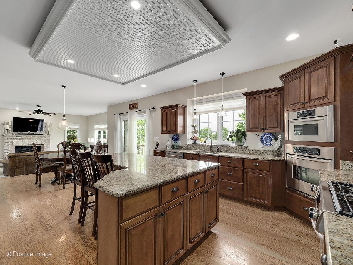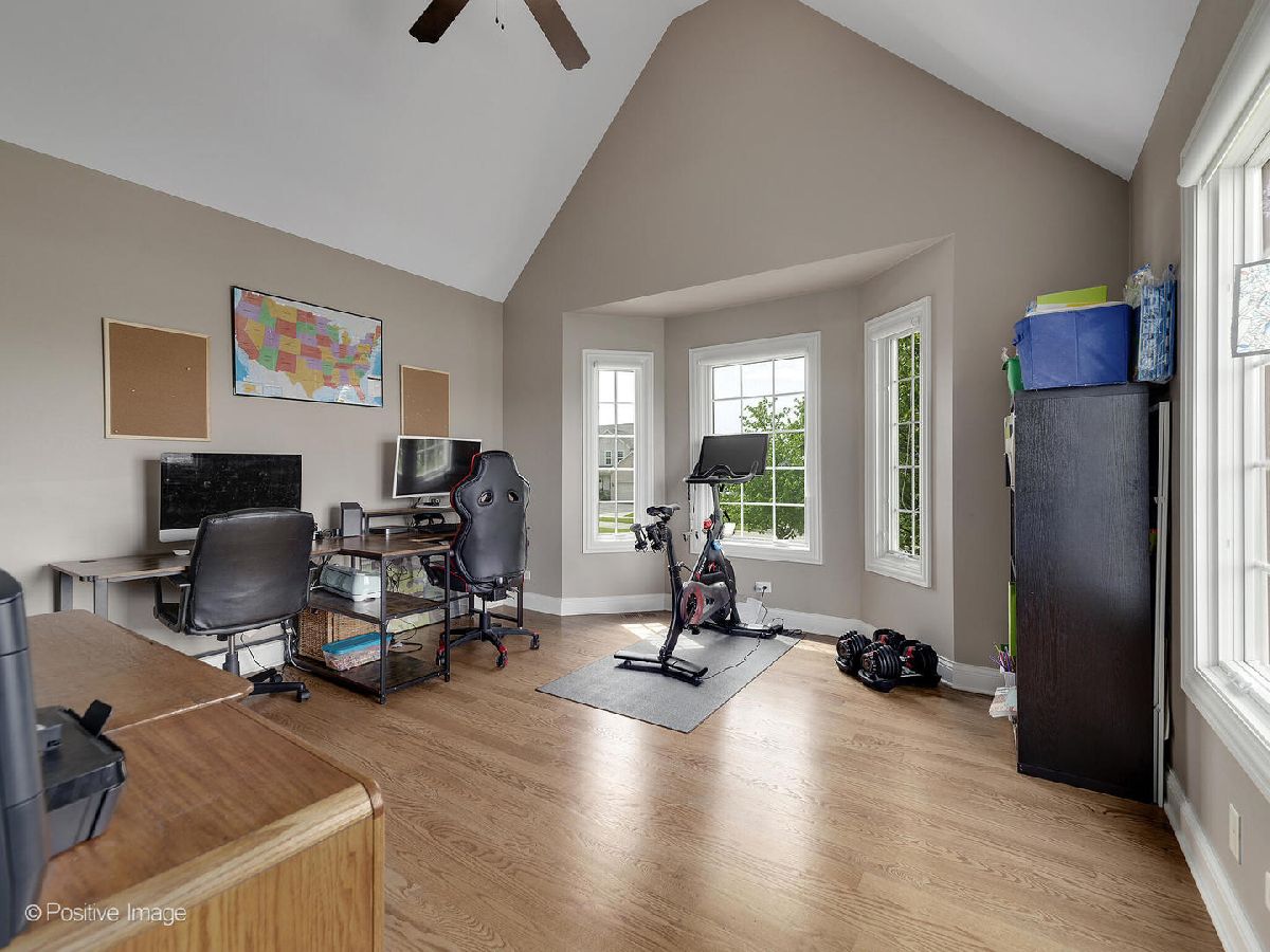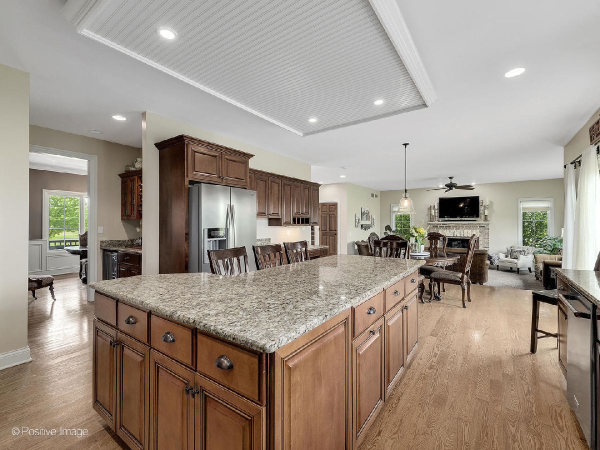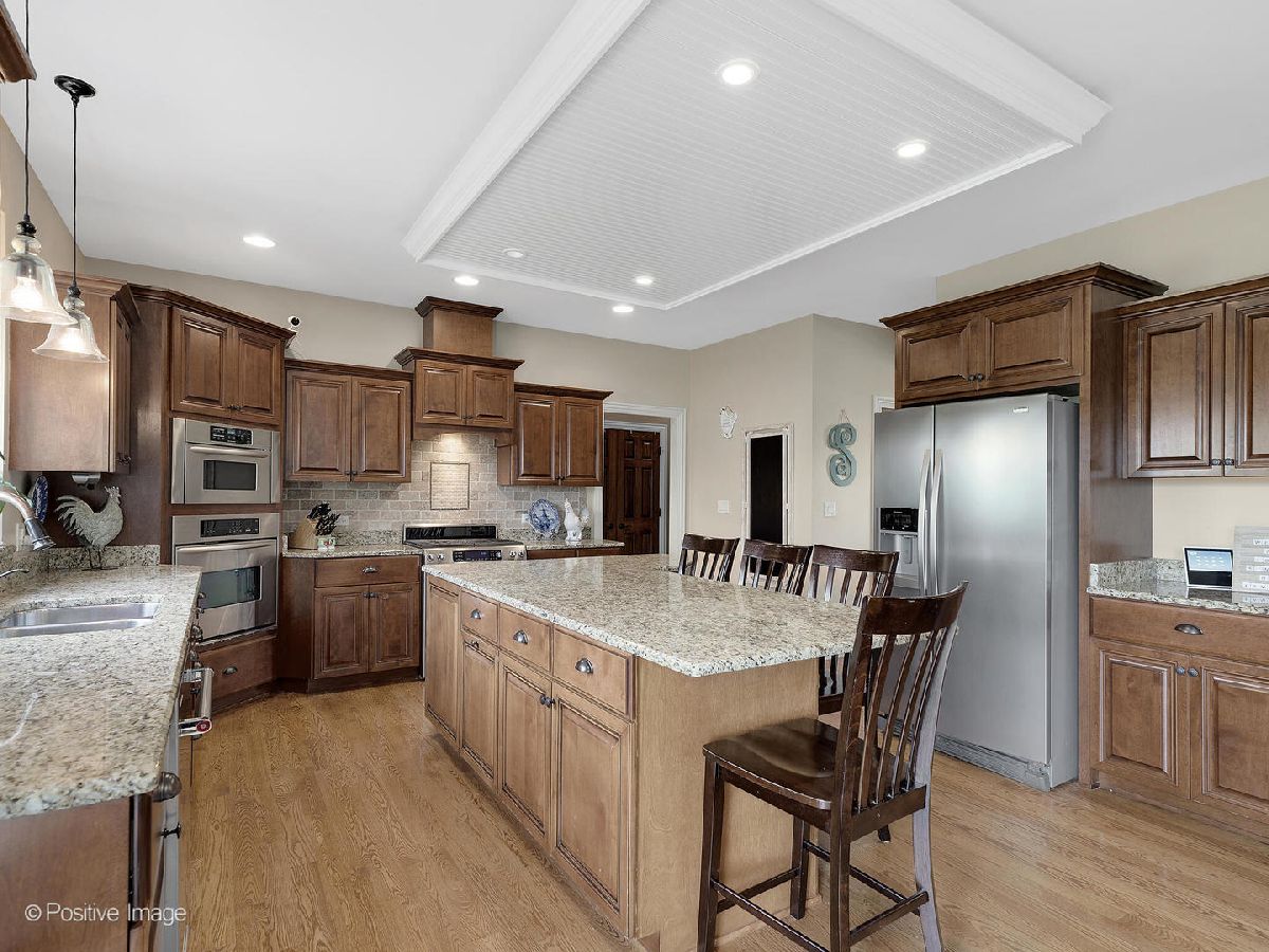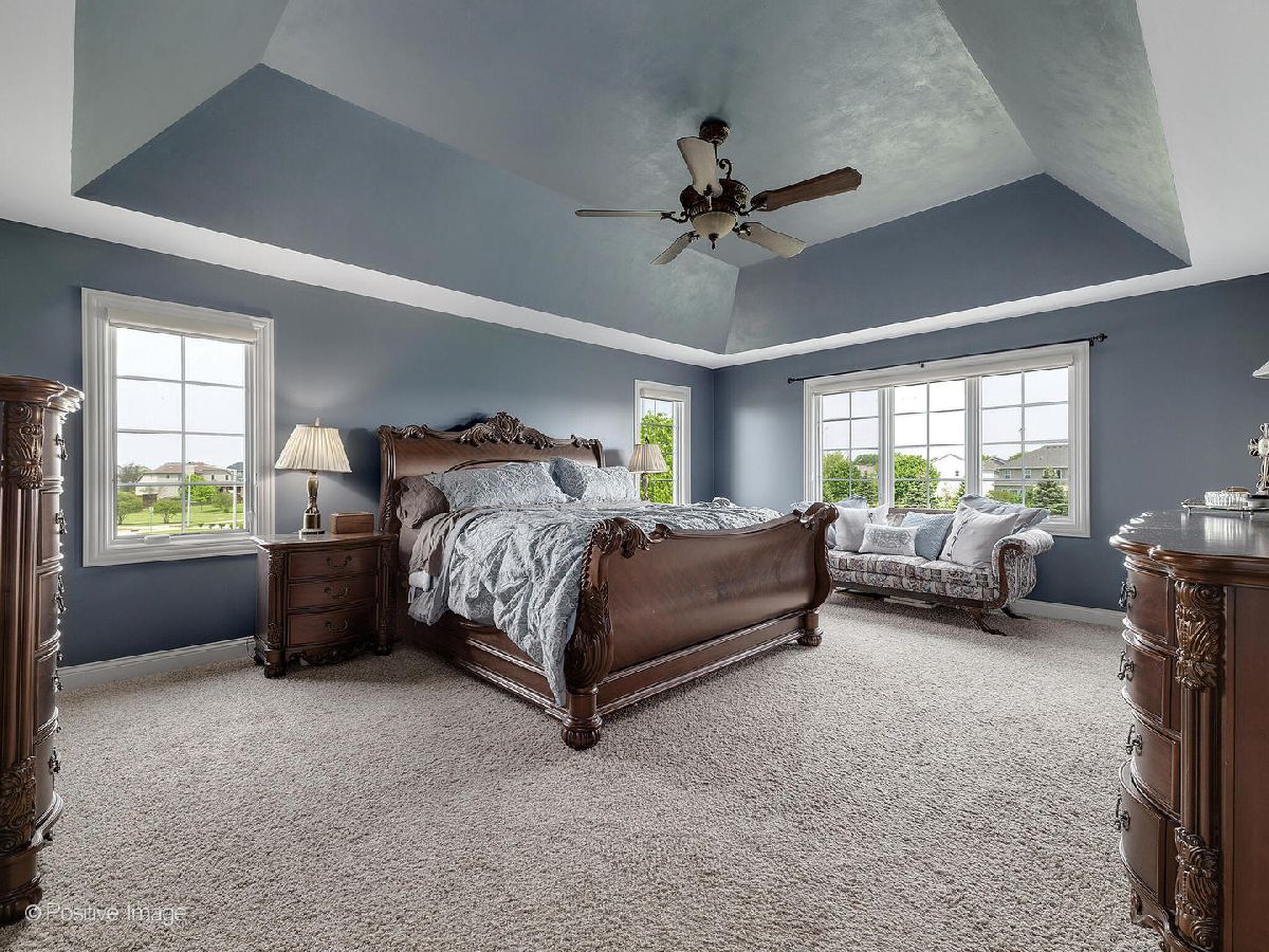 Better than new construction. This luxury custom home offers 5-6 bedrooms, 4 1/2 baths, 5,000 sqft total finished living space, 3 car garage on premium private lot in desirable Creekside Crossing. WATER VIEWS FROM ALL BEDROOMS. Inviting front porch with brick front. Large foyer entrance with 2 story open concept & hardwood flowing into the dining room and kitchen. Separate dining room with wainscoting, detailed ceiling with crown molding flows into Gourmet kitchen with huge island, granite, stainless steel appliances (new dishwasher), large walk-in pantry, Butler's pantry with wine refrigerator, eating area opens to step-down family room with cozy gas fireplace with brick mantle & ceiling fan. Pella sliding door leads from kitchen to trex deck. Half bath with granite vanity. Laundry room with Samsung front load washer/dryer, utility sink & mud room with custom built-ins lead to large attached 3 car garage with 8Ft garage door & can accommodate a F250 truck or boat. Sun-filled unique private office/study midway to 2nd floor with volume 20 Ft ceiling, french door & hardwood flooring. 2nd floor offers primary suite with the tray ceiling, ceiling fan, walk-in closet with organizers and luxury bath offering dual raised height granite vanity, Jacuzzi, ceramic tiled walk-in shower with multi-sprayers & bench. 2nd bed with walk-in closet & tray ceiling, 3rd bed with double closets, tray ceiling & Jack/Jill bathroom with dual vanity. Guest suite with volume ceiling, walk-in closet & full bathroom. Dry, Finished Look-out basement offers phenomenal 2-story custom wet bar, recreation room wired for home theatre, drywalled ceiling with recessed lighting, exercise area, 5th bedroom with closet & versatile 6th bedroom or playroom, bathroom with walk-in shower, granite vanity & massive storage area. This home was built for entertaining, sitting on a premium lot backing to walking paths, park and pond, oversized Trex-no maintenance deck, brick paver patio with sitting wall & large shed. Dual HVAC system, Smart sprinkler system. This exceptional home is close to shopping, restaurants, golfing, historic downtown Plainfield, Mather's Woods Forest Preserve, entertainment & easy access to I55 & I80 in desirable school Dist 202 Plainfield North HS, Park District & access to Springback Aquatic Park. Stocked pond, surrounded by natural preserved green spaces, paved path leads to downtown Plainfield shopping & dining Neutral decor, well maintained and well loved home. Fences allowed.