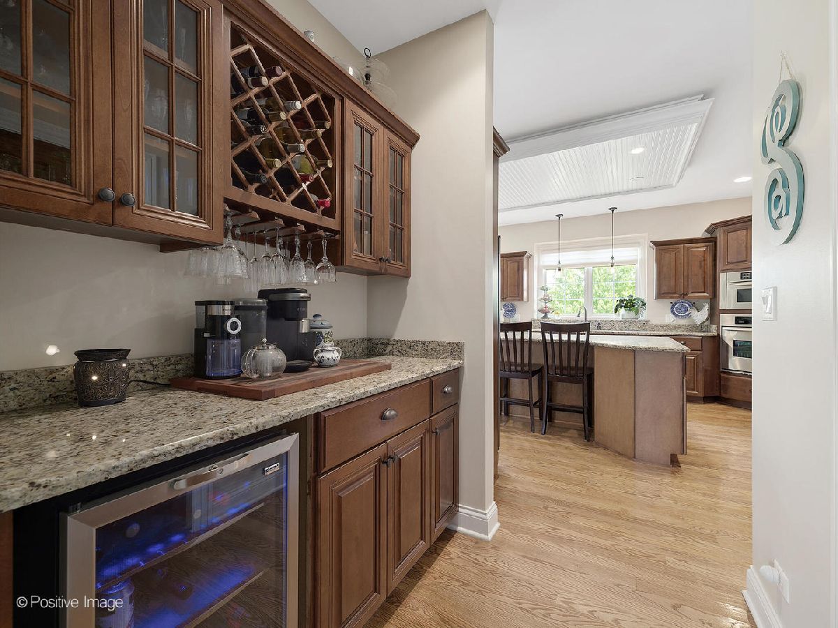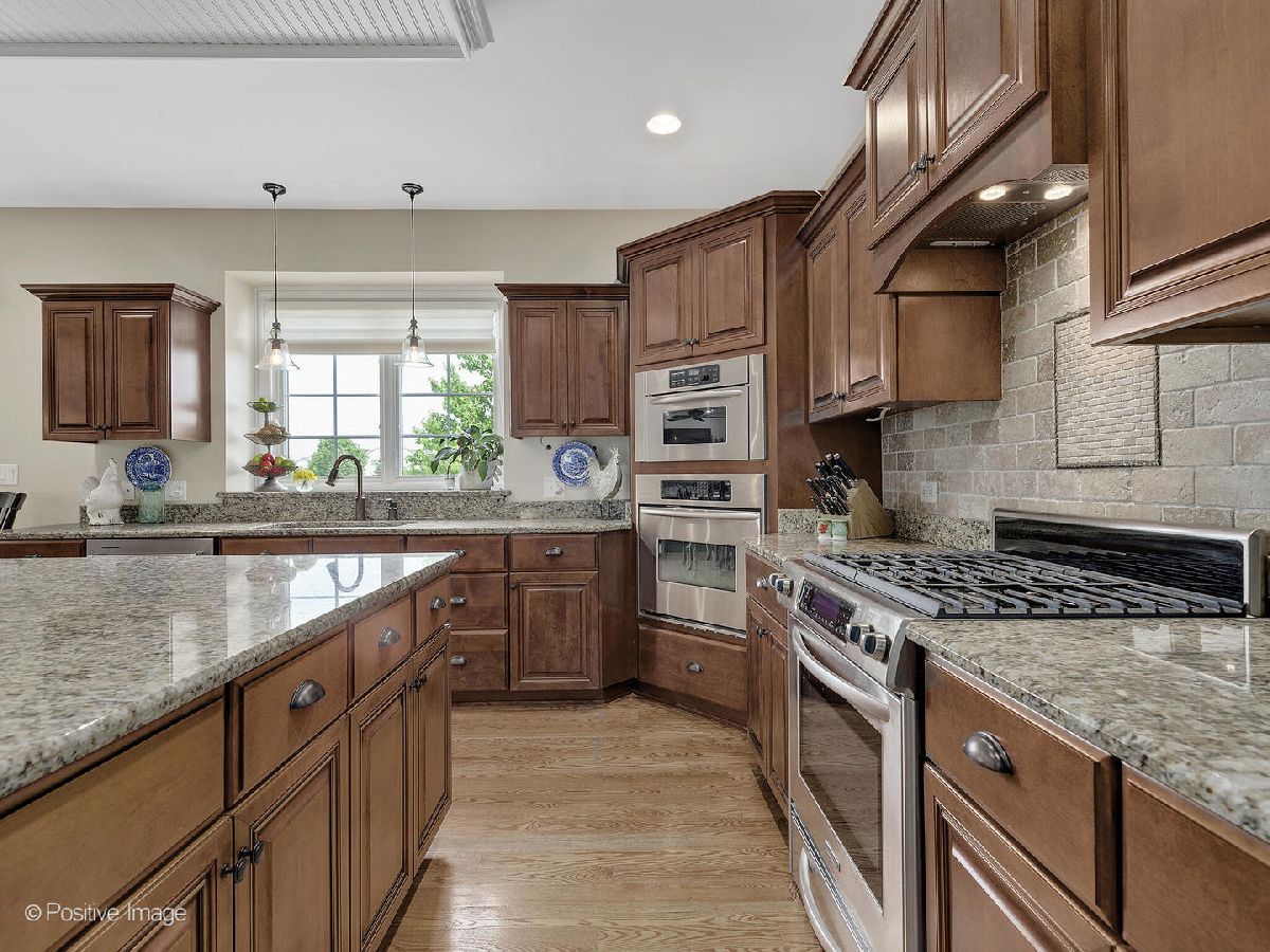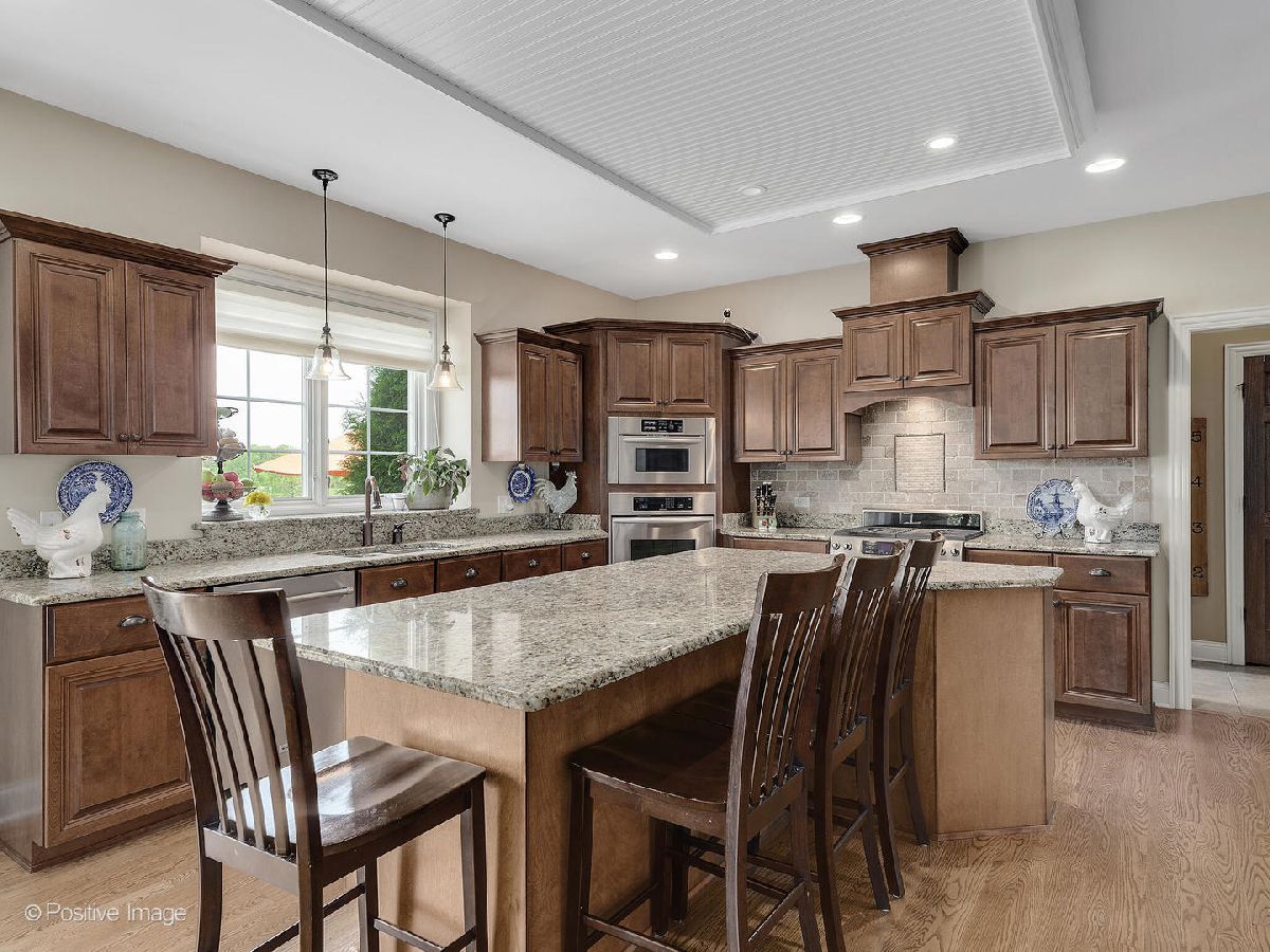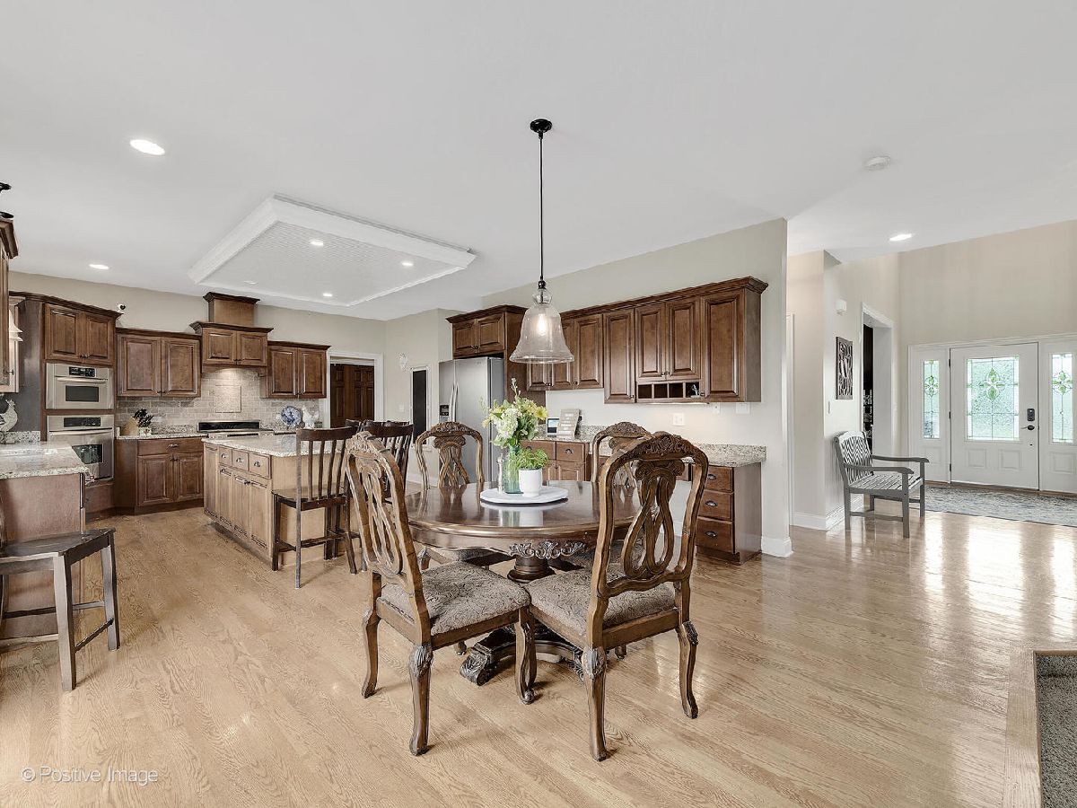 Better than new construction. This luxury custom home offers 5-6 bedrooms, 4 1/2 baths, 5,000 sqft total finished living space, 3 car garage on premium private lot in desirable Creekside Crossing. WATER VIEWS FROM ALL BEDROOMS. Inviting front porch with brick front. Large foyer entrance with 2 story open concept & hardwood flowing into the dining room and kitchen. Separate dining room with wainscoting, detailed ceiling with crown molding flows into Gourmet kitchen with huge island, granite, stainless steel appliances (new dishwasher), large walk-in pantry, Butler's pantry with wine refrigerator, eating area opens to step-down family room with cozy gas fireplace with brick mantle & ceiling fan. Pella sliding door leads from kitchen to trex deck. Half bath with granite vanity. Laundry room with Samsung front load washer/dryer, utility sink & mud room with custom built-ins lead to large attached 3 car garage with 8Ft garage door & can accommodate a F250 truck or boat. Sun-filled unique private office/study midway to 2nd floor with volume 20 Ft ceiling, french door & hardwood flooring. 2nd floor offers primary suite with the tray ceiling, ceiling fan, walk-in closet with organizers and luxury bath offering dual raised height granite vanity, Jacuzzi, ceramic tiled walk-in shower with multi-sprayers & bench. 2nd bed with walk-in closet & tray ceiling, 3rd bed with double closets, tray ceiling & Jack/Jill bathroom with dual vanity. Guest suite with volume ceiling, walk-in closet & full bathroom. Dry, Finished Look-out basement offers phenomenal 2-story custom wet bar, recreation room wired for home theatre, drywalled ceiling with recessed lighting, exercise area, 5th bedroom with closet & versatile 6th bedroom or playroom, bathroom with walk-in shower, granite vanity & massive storage area. This home was built for entertaining, sitting on a premium lot backing to walking paths, park and pond, oversized Trex-no maintenance deck, brick paver patio with sitting wall & large shed. Dual HVAC system, Smart sprinkler system. This exceptional home is close to shopping, restaurants, golfing, historic downtown Plainfield, Mather's Woods Forest Preserve, entertainment & easy access to I55 & I80 in desirable school Dist 202 Plainfield North HS, Park District & access to Springback Aquatic Park. Stocked pond, surrounded by natural preserved green spaces, paved path leads to downtown Plainfield shopping & dining Neutral decor, well maintained and well loved home. Fences allowed.