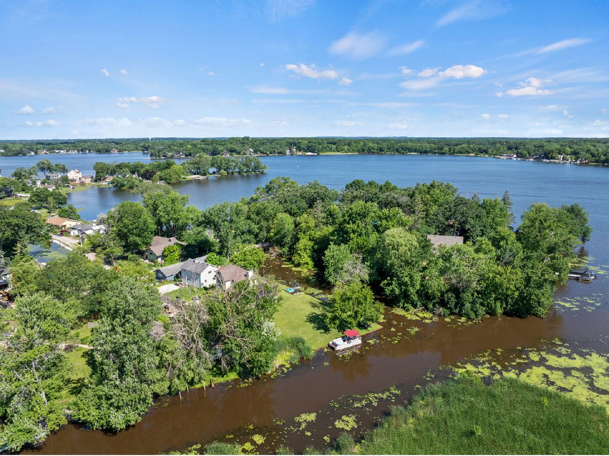 Welcome to Long Lake! Enjoy this spacious, private and peaceful retreat at the end of the road, surrounded by water and great views. This four bedroom home features a first floor primary suite (with en suite bathroom and walk in closet) as well as three large bedrooms and a full bath upstairs. The main living area is open with floor to ceiling windows showcasing views of the water and features a stone fireplace, vaulted ceilings, timber beams and hardwood floors, and is perfect for entertaining. You'll love the updated and modern kitchen with two toned cabinets, quartz countertops and large island with breakfast bar that flows in to a large dining area. The massive screened in porch wraps around the home and provides a large amount of flexible living space, all while enjoying the waterfront beauty. The huge yard provides flat space for playing or entertaining outside and there is plenty of space to keep your boat or fish right off the property. Newer home built with big rooms and great storage. There is also a small community beach for neighborhood residents only, perfect for swimming and sand play. Lake living at its finest...come see this amazing Long Lake property today!