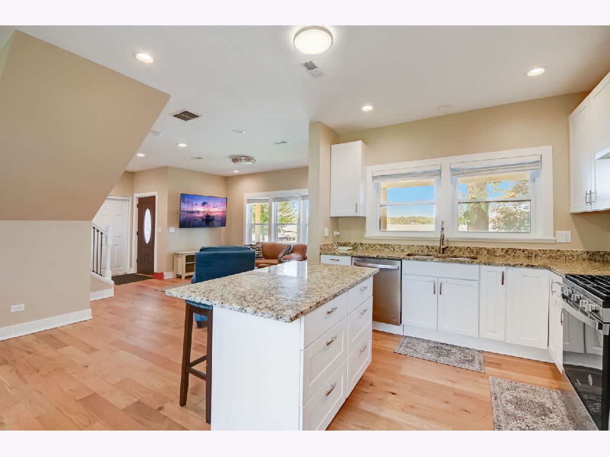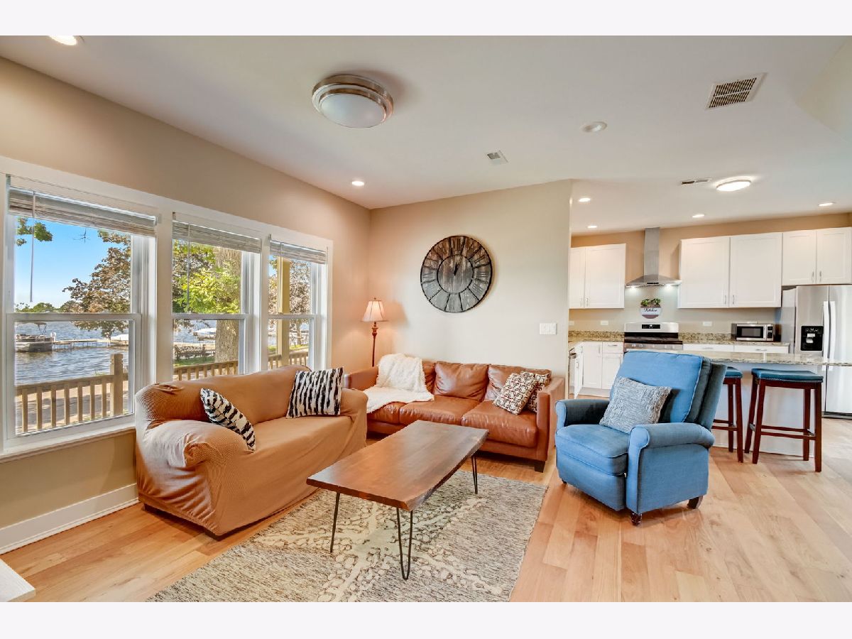WATERFRONT ON LONG LAKE! This 3 bed/2.1 bath was built in 2020 and is move in ready. Long Lake is connected to Fox Lake/Chain O Lakes so the fun water opportunities are endless! Open concept kitchen which features granite countertops, 42" white cabinetry, SS appliances and island. Kitchen opens to dining and living areas. Hardwood flooring throughout. Primary bedroom and 2nd bedroom have views of Long Lake. New fenced yard, 2 car garage and a lovely front porch. Boat lift, pier and playset included. All furnishings for sale. Quick closing possible.