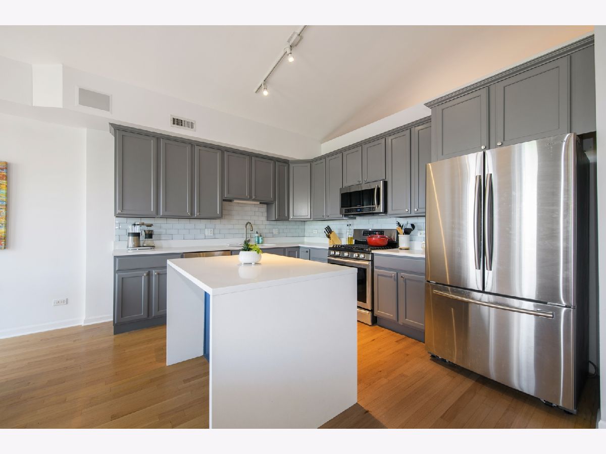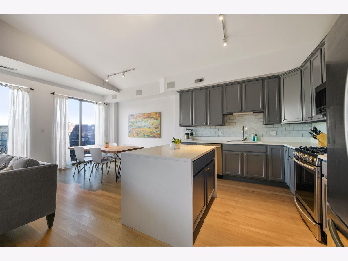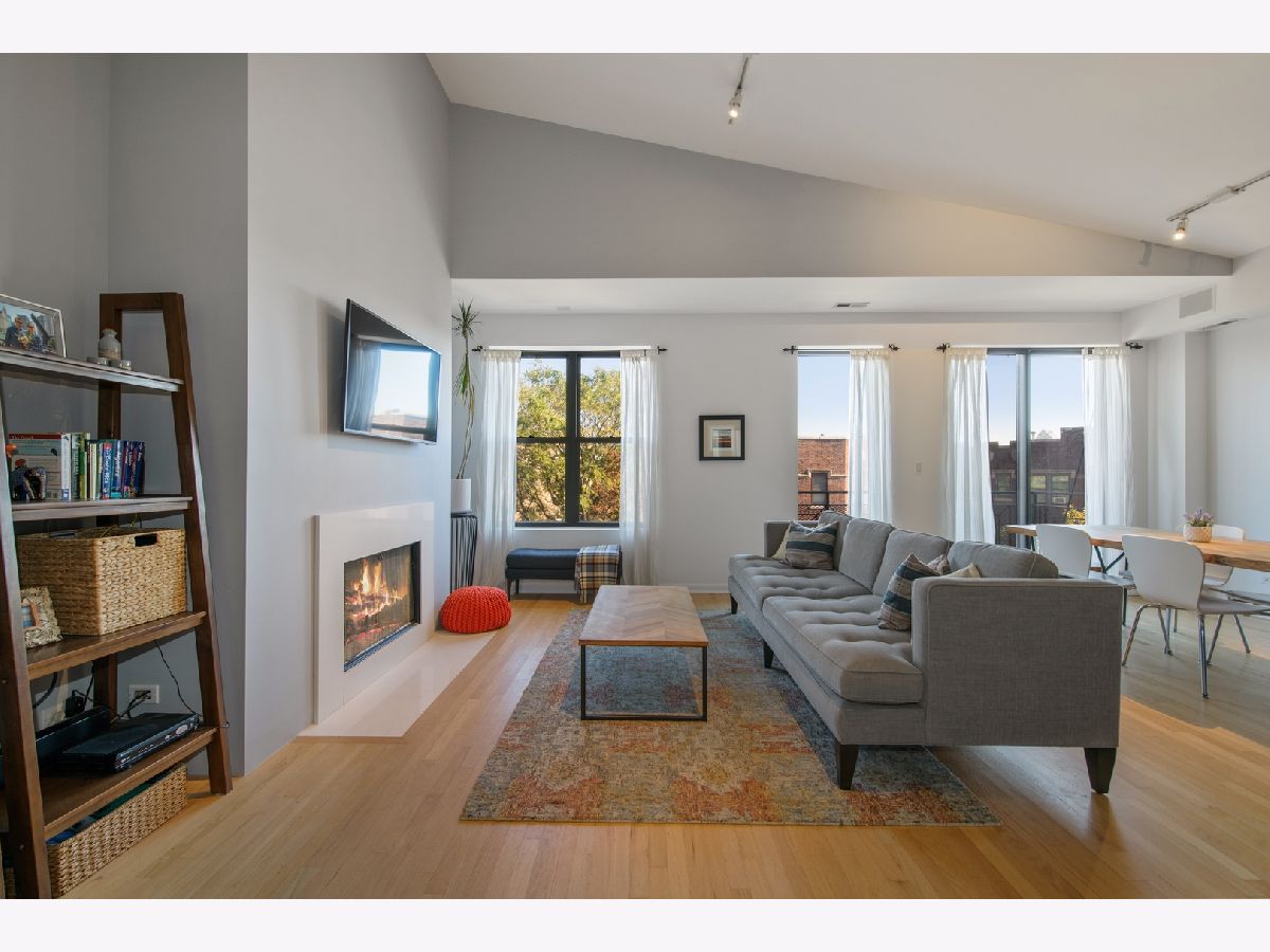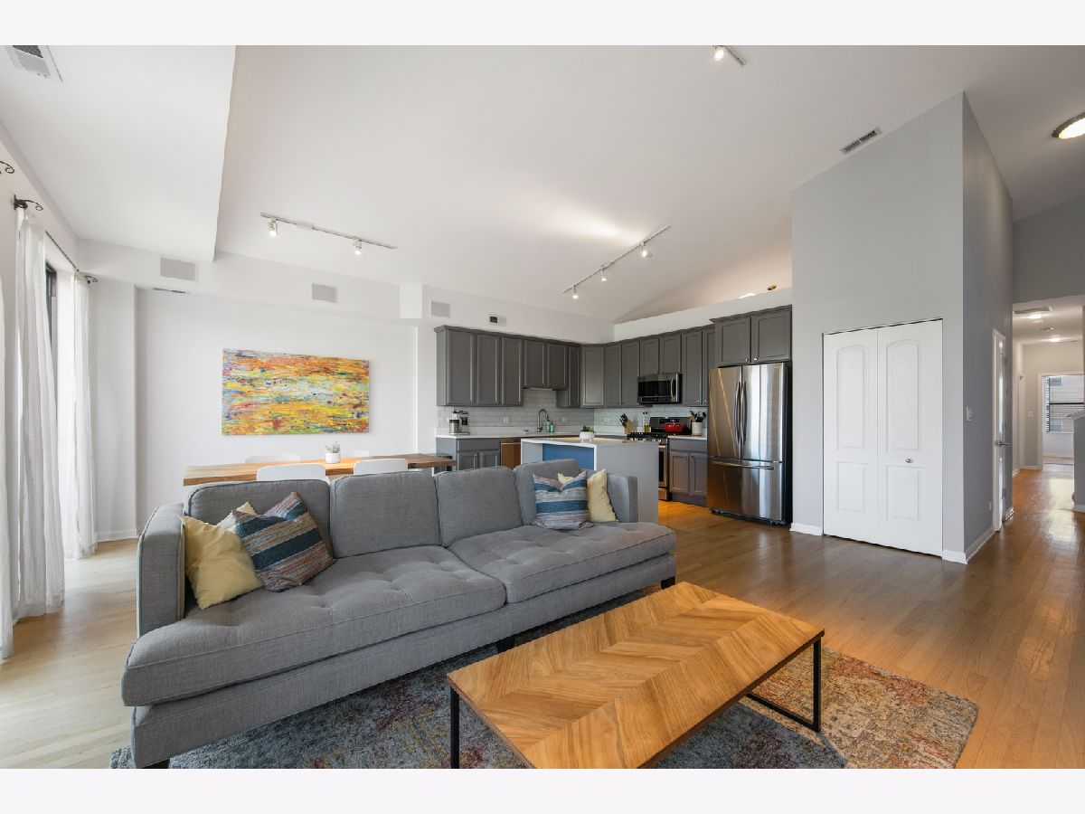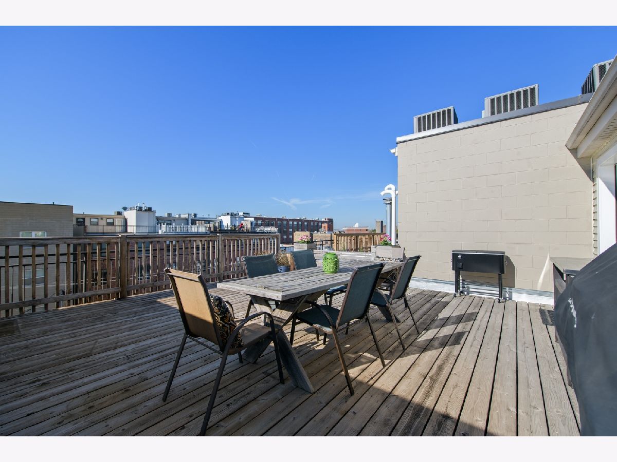 One-of-a-kind DUPLEX-UP PENTHOUSE in fantastic LOGAN SQUARE location on quiet and quaint Willetts Court. 3 BEDROOMS, 2.1 BATHS on primary living level that is highlighted by spacious, open and updated Kitchen/Living/Dining with vaulted ceiling, fireplace and adjacent deck. PRIMARY SUITE features an oversized bedroom, walk-in closet and spacious bath with double vanity and separate tub + shower. Second floor includes an OFFICE/DEN or optional 4th bedroom plus a 400+ square foot ROOF DECK. One car attached garage parking. Walk Score = 95/100.