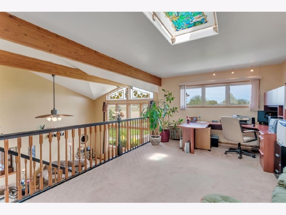 Fall in LOVE with this simply STUNNING custom home on premium 5-acre lot with private 1-acre pond, (40x30) 3-car garage with workshop and (33x18) pool. This home combines simplicity with intricate personality with features that marry the indoors and outdoors through multiple sky lights, soaring ceilings, large windows and a gorgeous sunroom! The home's notable mentions include a welcoming front porch, 3 generously sized bedrooms, tray ceilings, large walk-in pantry, kitchen center island, Jenn-Air convection/conventional oven, R.O. drinking water, wood burning stove in great room, second floor master suite with walk-in closet and a large loft that can be used as an office or second family room. The sunroom features a colorful tropical indoor garden, sky light, hot tub and dry bar with keg fridge and tapper. The pool has a new liner and a (30x20) composite decking as well as a privacy wall. There are many fruit trees: 6 apple, 1 peach, 1 cherry, and 1 pear. You'll also find wild asparagus and raspberries growing on the property! Other attributes include 2 furnaces, 2 central air units (both zoned for efficiency), central vac system, home security system and fire alarm, 400-amp elec service, rough-in-plumbing for additional bath in basement, 9' ceilings in basement, and a whole house water softener. The ready to finish 1,800 sq. foot basement has endless possibilities! Total square footage of this home is 5,580 sq. ft. Property is zoned E-1, which makes it ideal to raise a garden, horses or domestic farm animals. Lincolnway West HS District. Truly one of the prettiest pieces of property in this area!