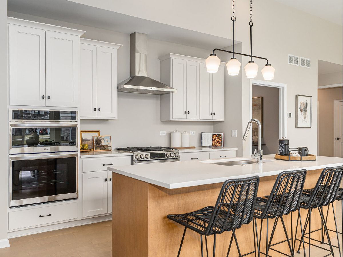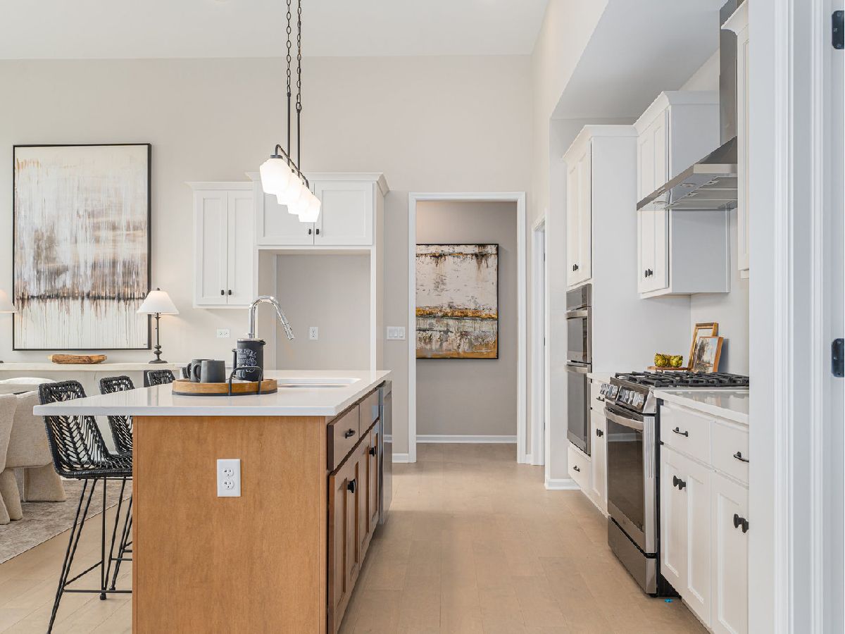 NEW CONSTRUCTION RANCH ready for move-in! Custom Built by King's Court Builders! This home boasts quality throughout. Last home to be built on quiet street. Inviting front elevation with 13' x 5' covered porch. Spacious Foyer leads to hallway, to Powder Room, spare bedroom, Hall Bath, and Office/potential 3rd bedroom. All on one side end of the house. Large 29' x 19'6" open concept Family Room/Dining Area/Kitchen with 12' volume ceiling and extra tall windows on rear wall to take advantage of sunny southern exposure. Kitchen features Brakur Custom Cabinetry painted white perimeter cabinets and contrasting light-stained island with Carrara Classic countertops. Great appliance package. LG stainless steel appliances including professional look range with WiFi enabled convection bake and AirFry, plus a double oven with convection bake, AirFry, and steam Sous Vide (three ovens in total!) and dishwasher. Chimney style hood vented to exterior. A Kitchen made for cooking and entertaining. Don't miss the 8'4" x 5'0" walk-in pantry! Private hallway leads to Primary Suite on the other end of the home. Primary Bedroom features large double window and volume step ceiling. Primary Bath has oversized shower with seat, 8' double bowl vanity, and enclosed toilet area. The generous closet is 13'6" x 7'. 3' Wide doors to all the major rooms. Not just a great floorplan, but functional too with large Foyer Closet, 6'8" x 15' Laundry Room, and 6'8" x 4'6" walk in closet off laundry room. Professionally selected inclusions and appointments! Full 9' deep basement walls, great for finishing the basement. Professional landscaping including fully sodded yard! Builder's in-house two-year warranty. Come on home! BROKER OWNED.