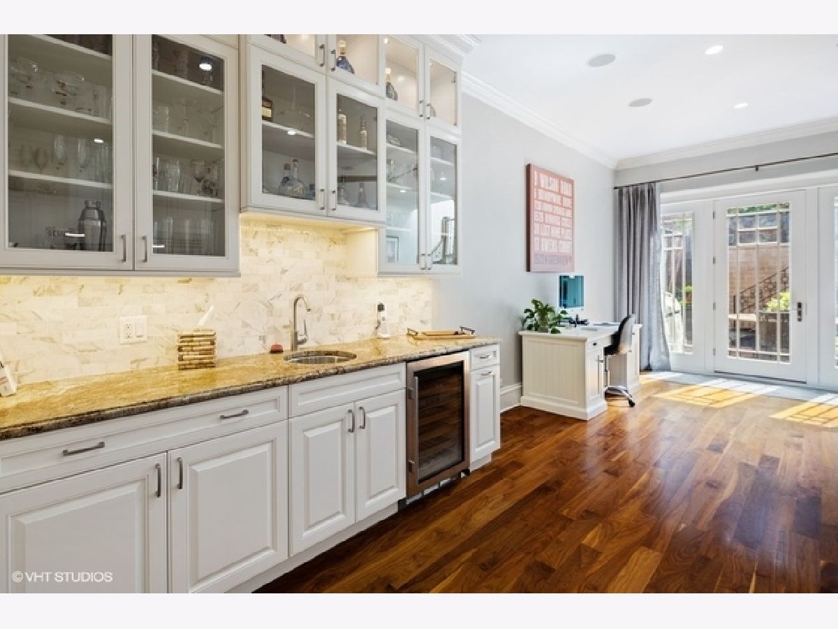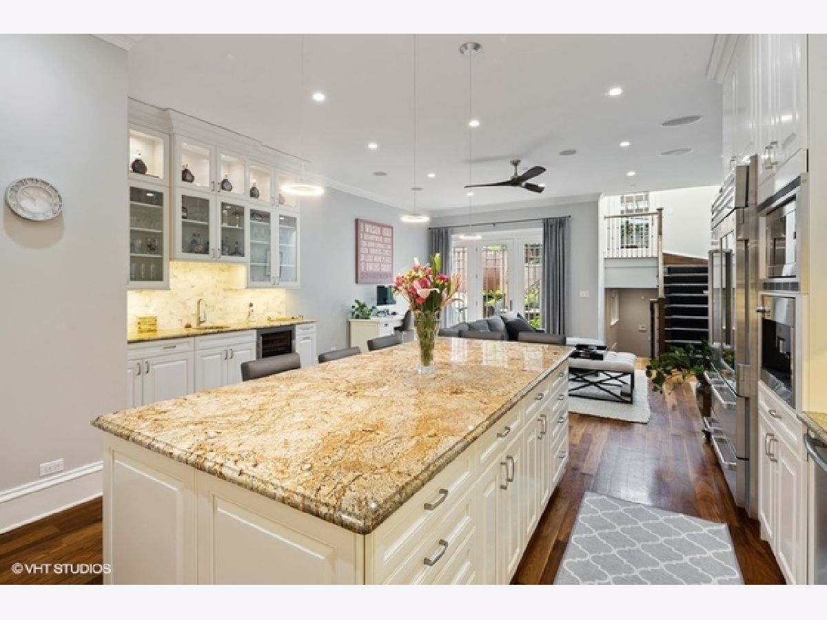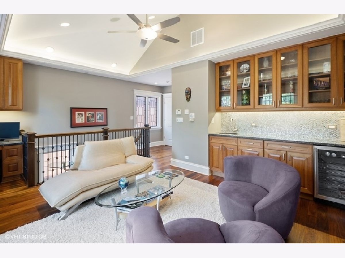 Stunning custom-built Lincoln Park home overlooking picturesque Wrightwood Park. All masonry home boasts stately limestone facade, extra wide interior, 11-foot ceilings, elegant custom millwork, 4-floor passenger elevator, attached heated 2.5-car garage with mudroom, whole house Sonos sound system, climate-controlled wine cellar, heated floors in all baths, lower level & mudroom, and four amazing terraces with hardscaping, mature landscaping and irrigation system. Light-filled Living Room with fireplace opens to formal Dining Room featuring elaborate coffered ceilings. Fabulous updated Chef's Kitchen with crisp white cabinetry, massive island, granite counters, marble back-splash, professional appliances & built-in Miele espresso machine. Completing the Kitchen are organized walk-in pantry and butler's pantry with sink and beverage center. Adjacent east-facing Great Room with media system, fireplace, space for eating area, and french doors leading to a lush (575 sqft) outdoor oasis, on two levels, beautifully landscaped & with outdoor sound. The 2nd floor features three spacious Bedrooms, two ensuite including lavish Master suite with sitting area, juliet balcony, walk in closets & large Spa Bath: double vanity, separate steam shower & bubble jet tub. 2nd Floor Laundry room. Sun-drenched penthouse level with family room, built-ins, wet bar, beverage center, Bedroom & full Bath, two separate terraces, one boasting grand outdoor fireplace, both with lovely views. Lower level offers two Bedrooms, full Bath, generous Family Room with built-ins, fireplace & wet bar with beverage center, 2nd Laundry Room, storage, and wine cellar. This exquisitely designed and crafted home on tree-lined Greenview in Lincoln Park is a must see!