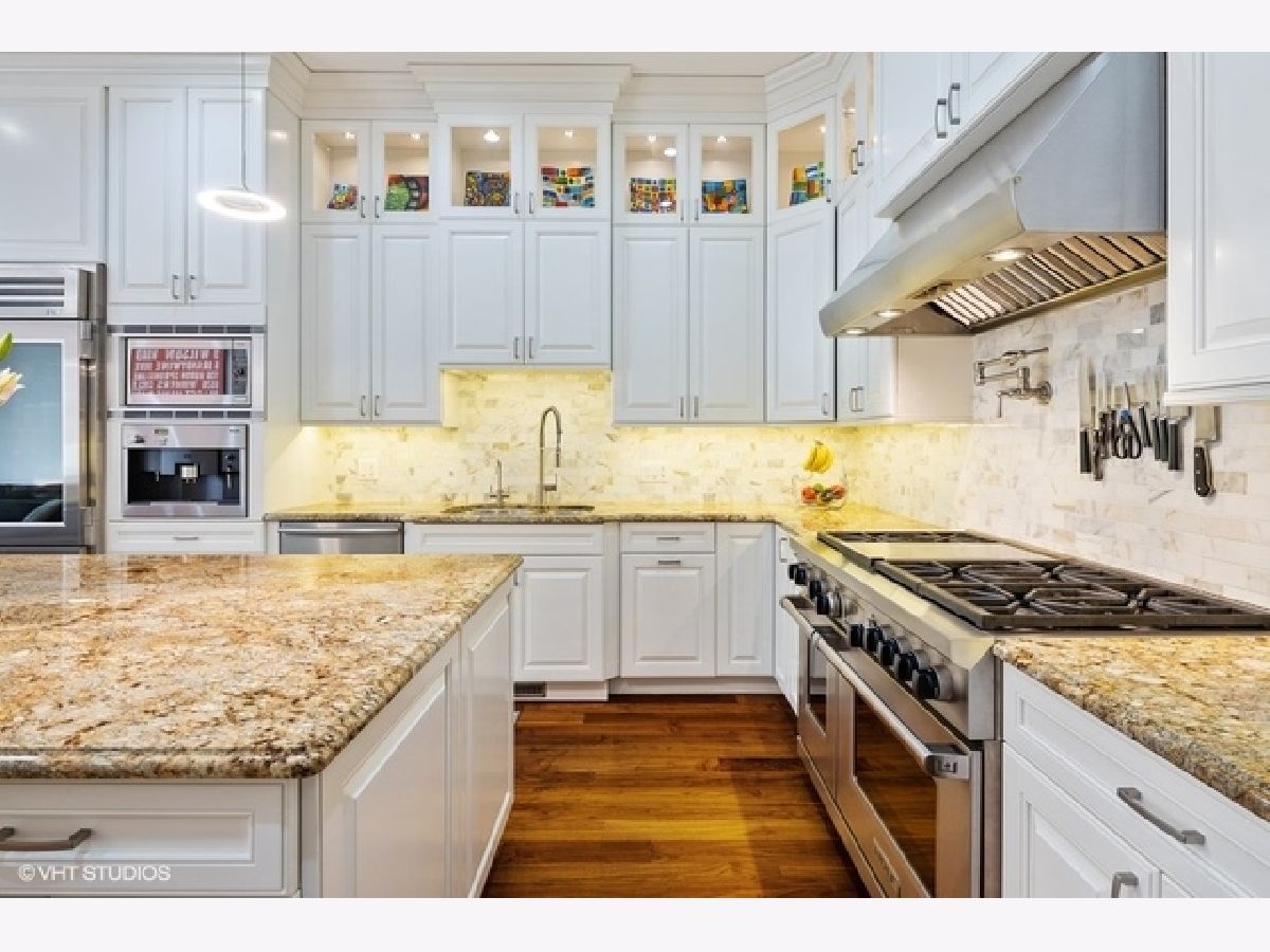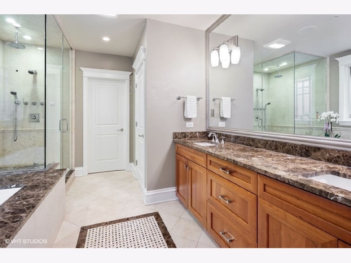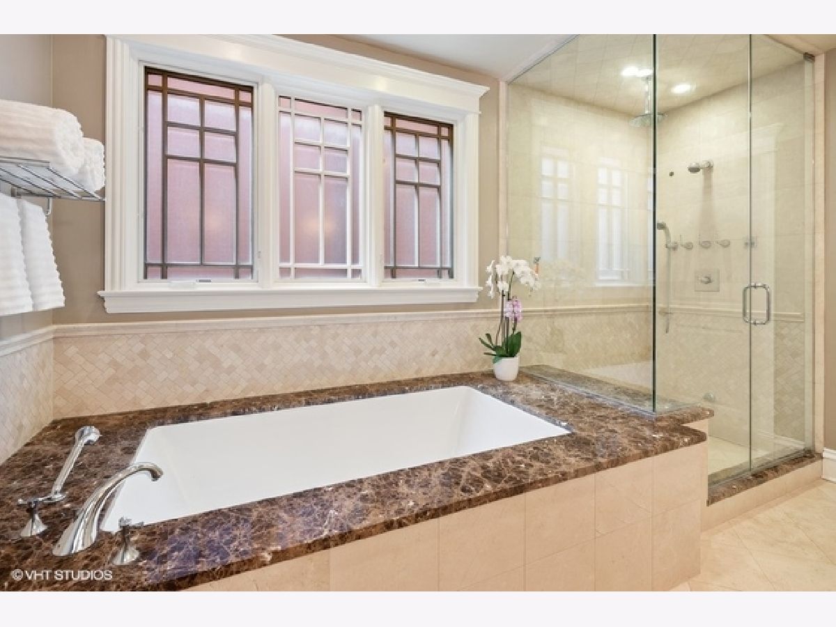 Stunning custom-built Lincoln Park home overlooking picturesque Wrightwood Park. All masonry home boasts stately limestone facade, extra wide interior, 11-foot ceilings, elegant custom millwork, 4-floor passenger elevator, attached heated 2.5-car garage with mudroom, whole house Sonos sound system, climate-controlled wine cellar, heated floors in all baths, lower level & mudroom, and four amazing terraces with hardscaping, mature landscaping and irrigation system. Light-filled Living Room with fireplace opens to formal Dining Room featuring elaborate coffered ceilings. Fabulous updated Chef's Kitchen with crisp white cabinetry, massive island, granite counters, marble back-splash, professional appliances & built-in Miele espresso machine. Completing the Kitchen are organized walk-in pantry and butler's pantry with sink and beverage center. Adjacent east-facing Great Room with media system, fireplace, space for eating area, and french doors leading to a lush (575 sqft) outdoor oasis, on two levels, beautifully landscaped & with outdoor sound. The 2nd floor features three spacious Bedrooms, two ensuite including lavish Master suite with sitting area, juliet balcony, walk in closets & large Spa Bath: double vanity, separate steam shower & bubble jet tub. 2nd Floor Laundry room. Sun-drenched penthouse level with family room, built-ins, wet bar, beverage center, Bedroom & full Bath, two separate terraces, one boasting grand outdoor fireplace, both with lovely views. Lower level offers two Bedrooms, full Bath, generous Family Room with built-ins, fireplace & wet bar with beverage center, 2nd Laundry Room, storage, and wine cellar. This exquisitely designed and crafted home on tree-lined Greenview in Lincoln Park is a must see!