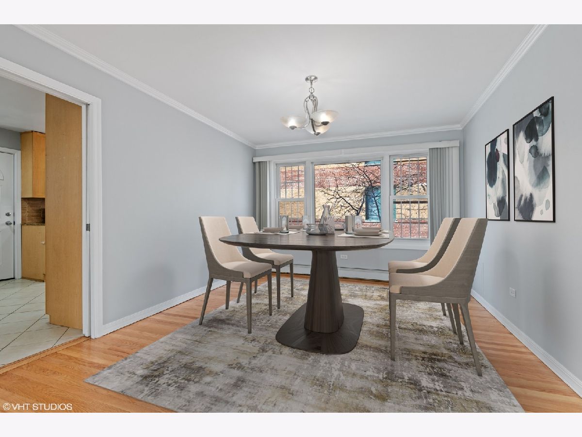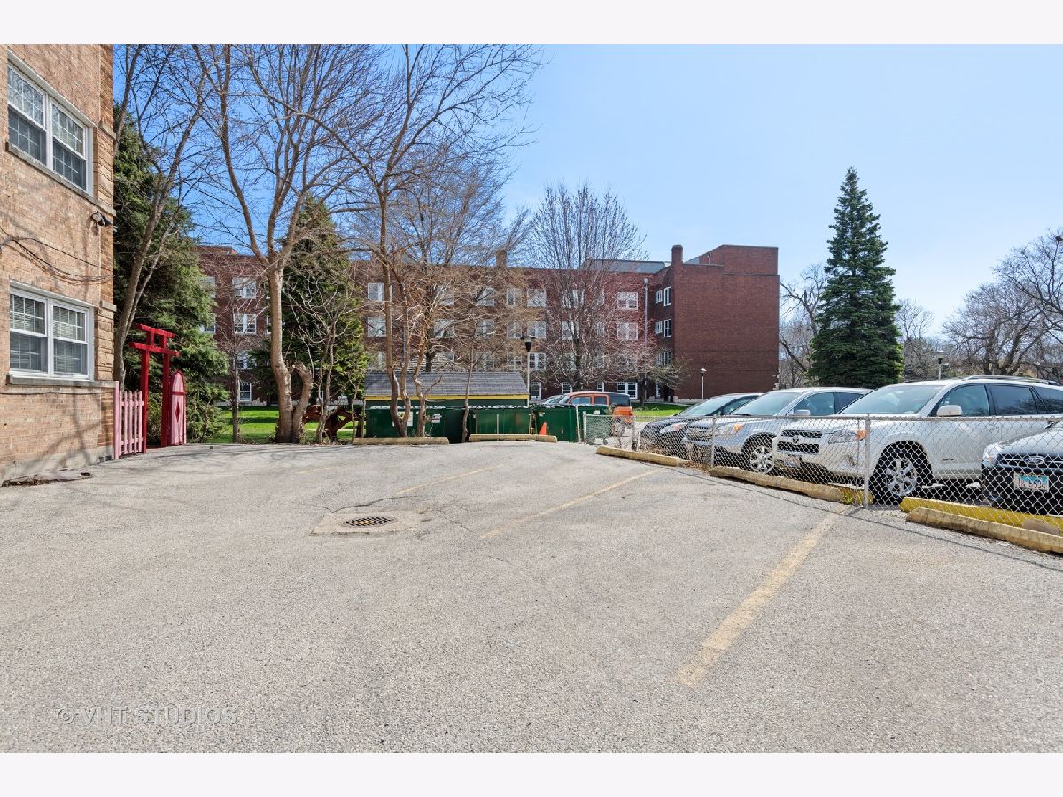 Fabulous West Ridge condo adjacent to Indian Boundary Park! Spacious 2 Bedroom/ 1.1 Bath overlooking a lovely garden on quiet residential street. Convenient PARKING space INCLUDED in price. Well appointed finishes features Kitchen w 42" maple cabinets, granite counters & stainless steel appliances, Gleaming hardwood floors REFINISHED in the last month. Both bedrooms are very spacious and have great sized closets. Large open living space with separate full-sized Dining area and a powder room for guests. Entire unit is Freshly PAINTED, including trim. IN-UNIT WASHER/DRYER (extra washer/dryer in basement). Extra storage locker. Close proximity to public transportation & shopping. Move-in-Ready!